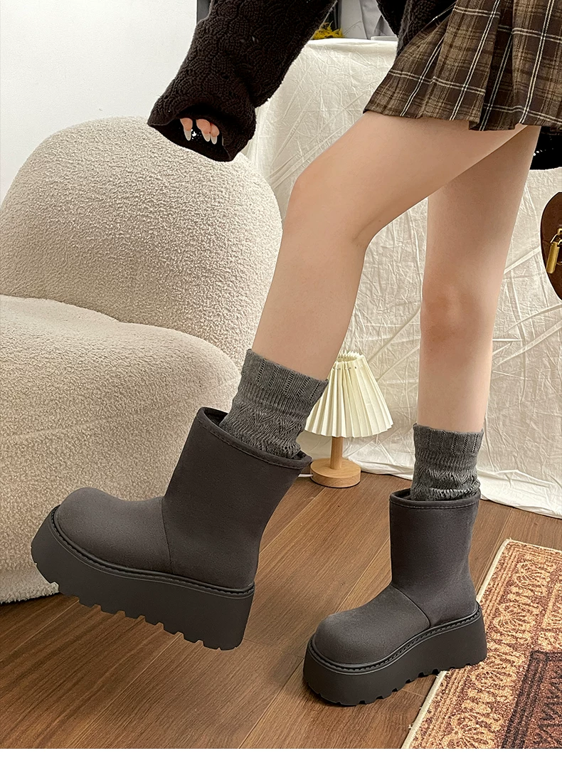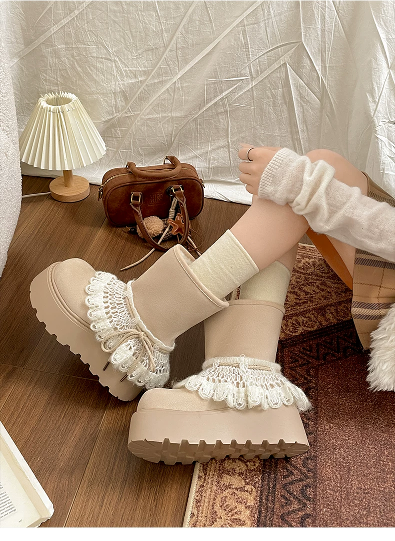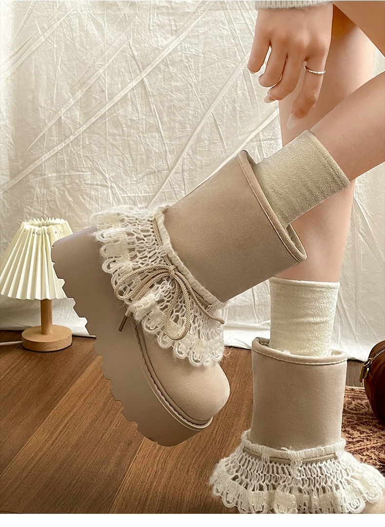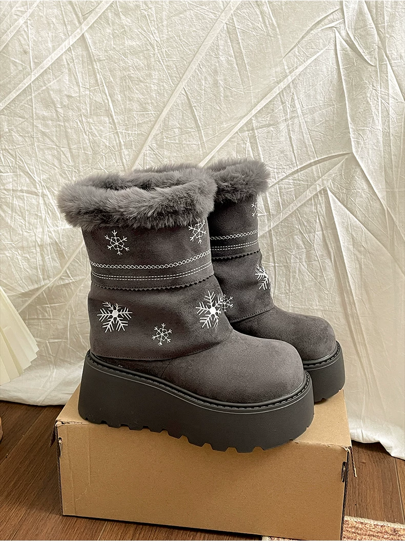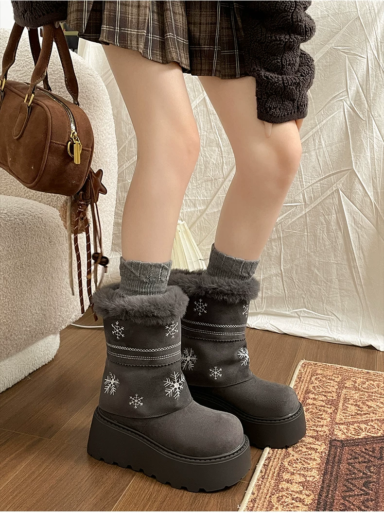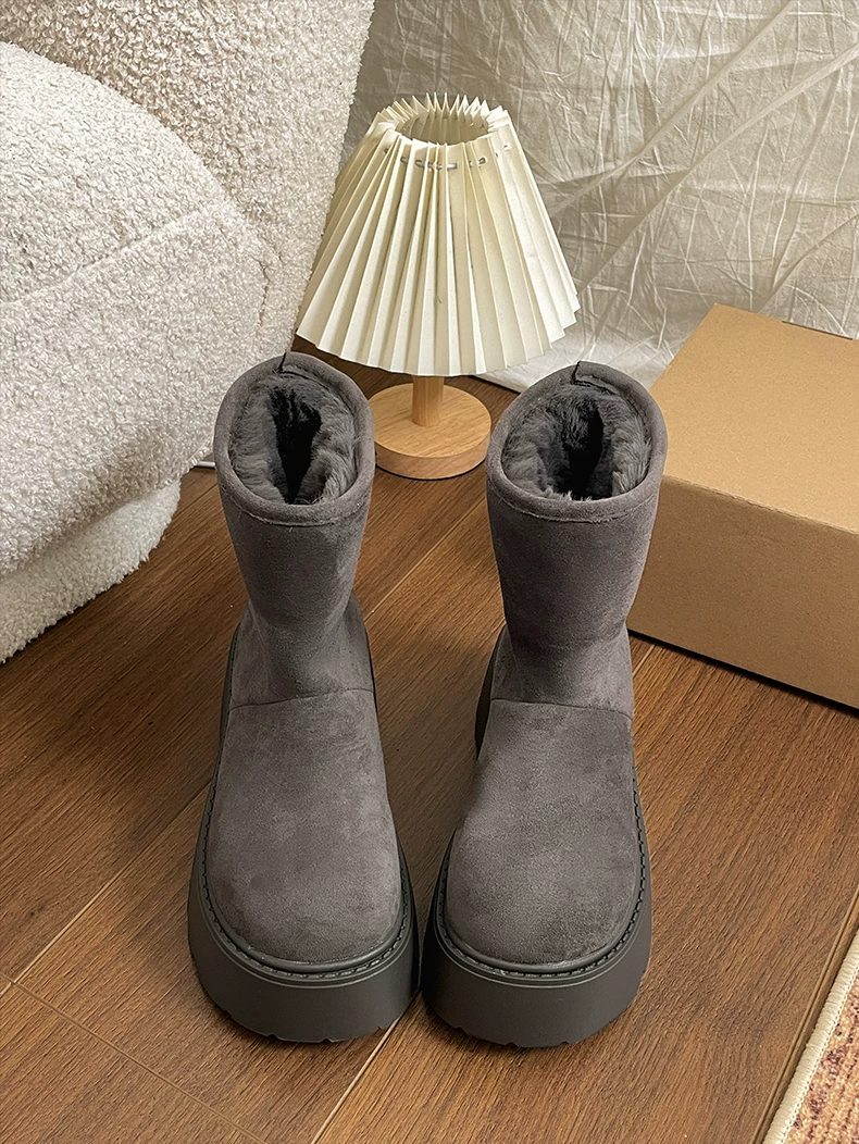 - Giày bốt đi tuyết lông dày đế dày Nan Zai Nan Fei Island dành cho nữ, giày cotton dày giữ ấm mùa đông mới năm 2025.