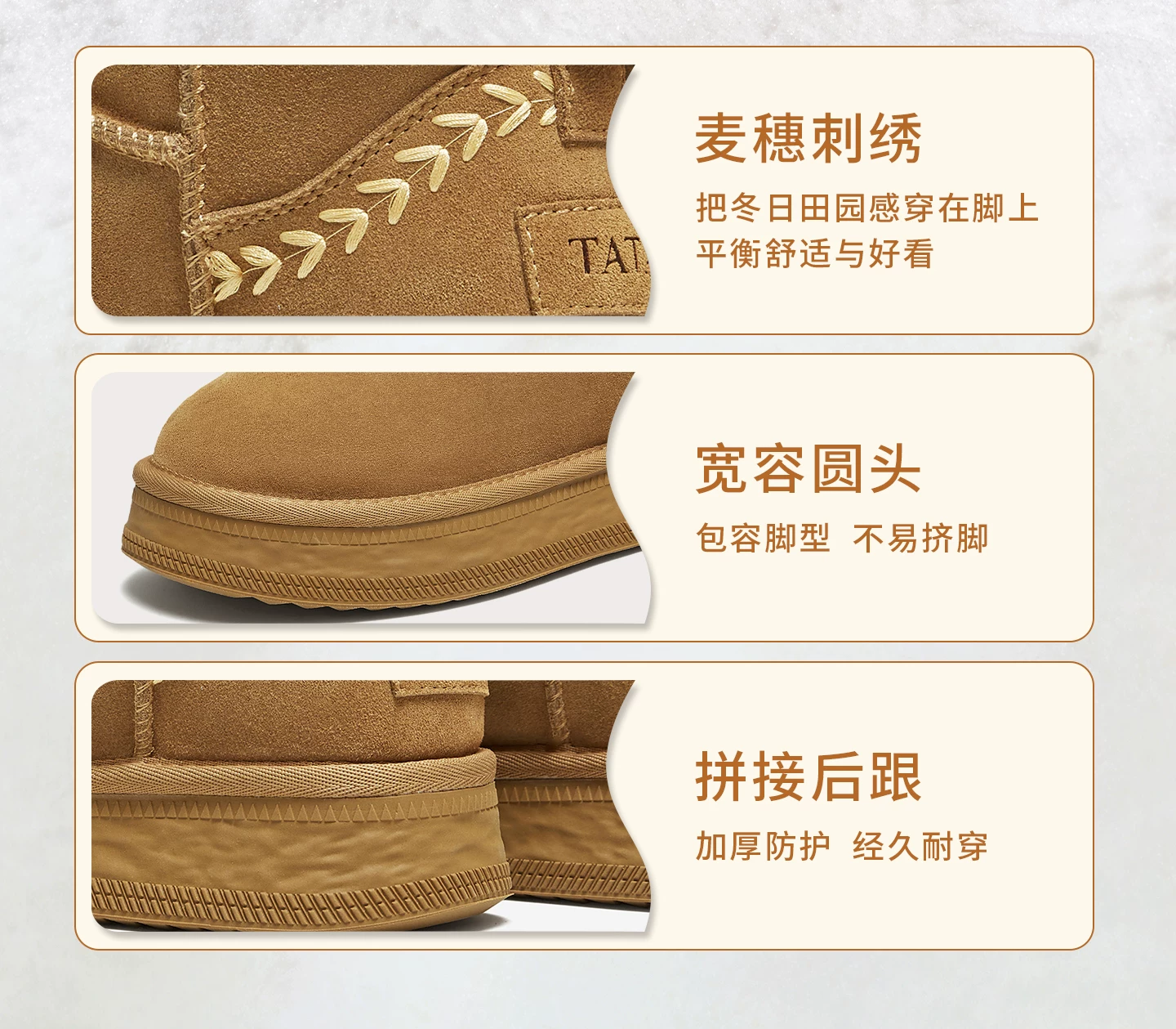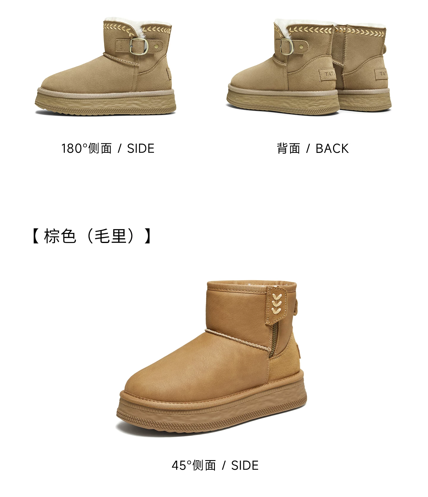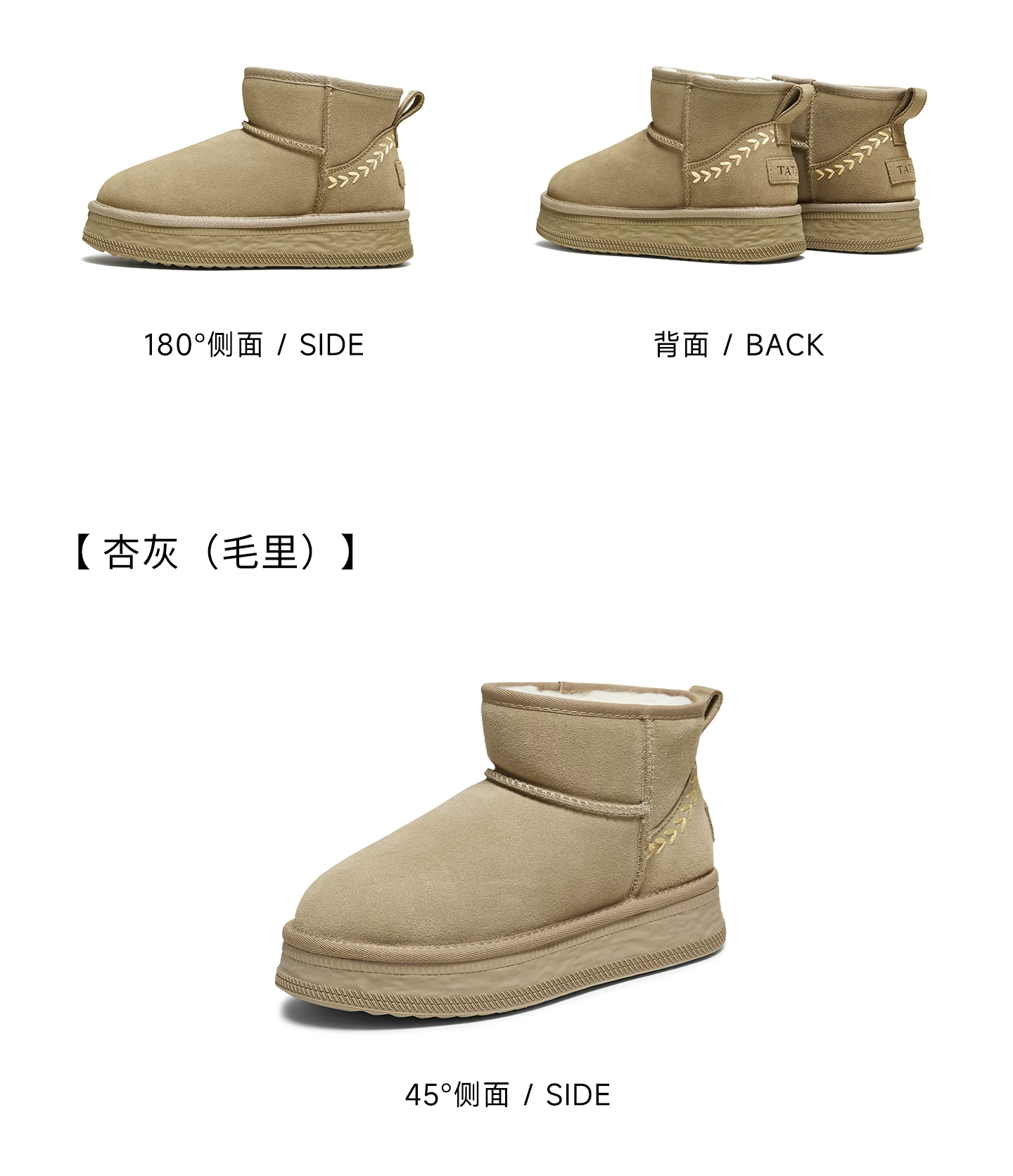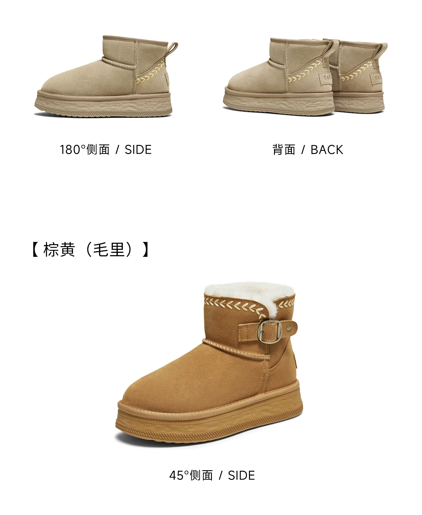 - Giày bốt đi tuyết TATA mùa đông sang trọng giày bốt đế dày chống thấm nước chống trượt lót lông cừu đi tuyết bốt cotton CWX01DD5