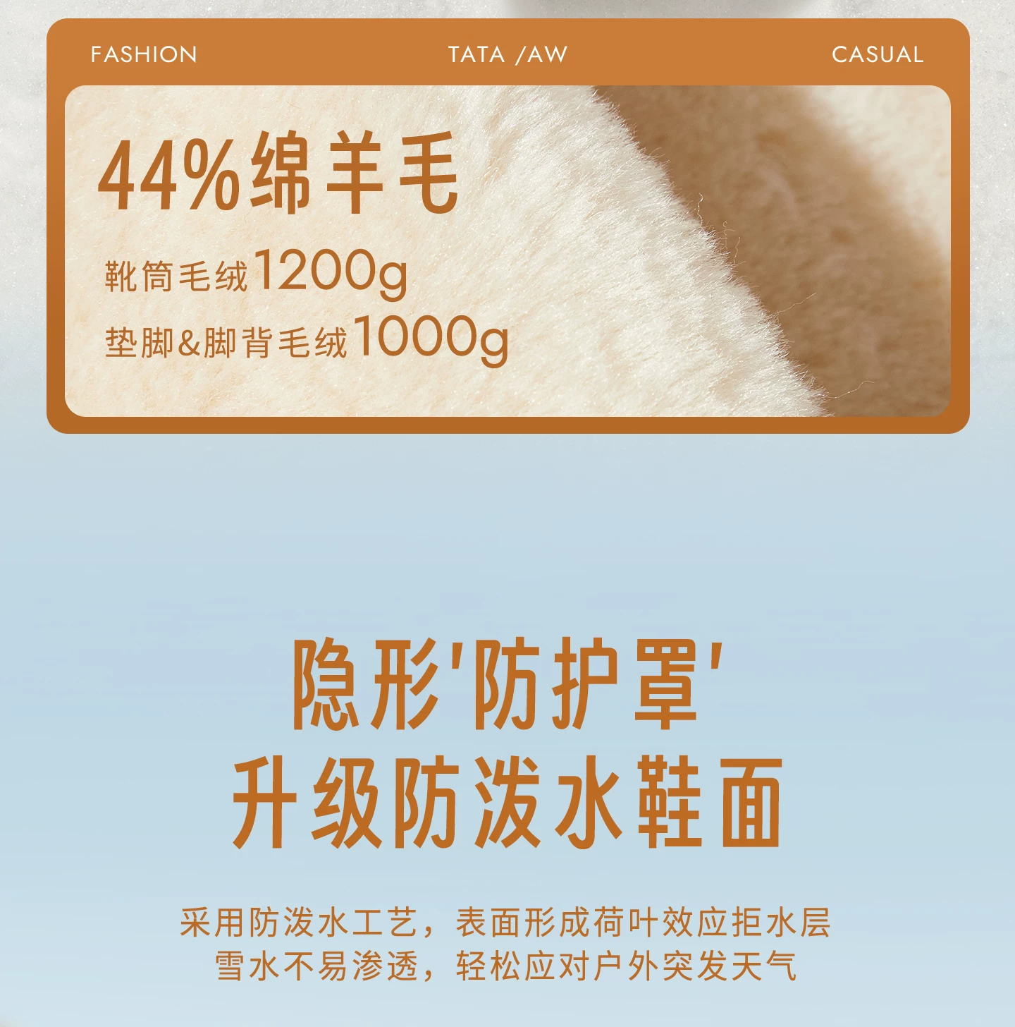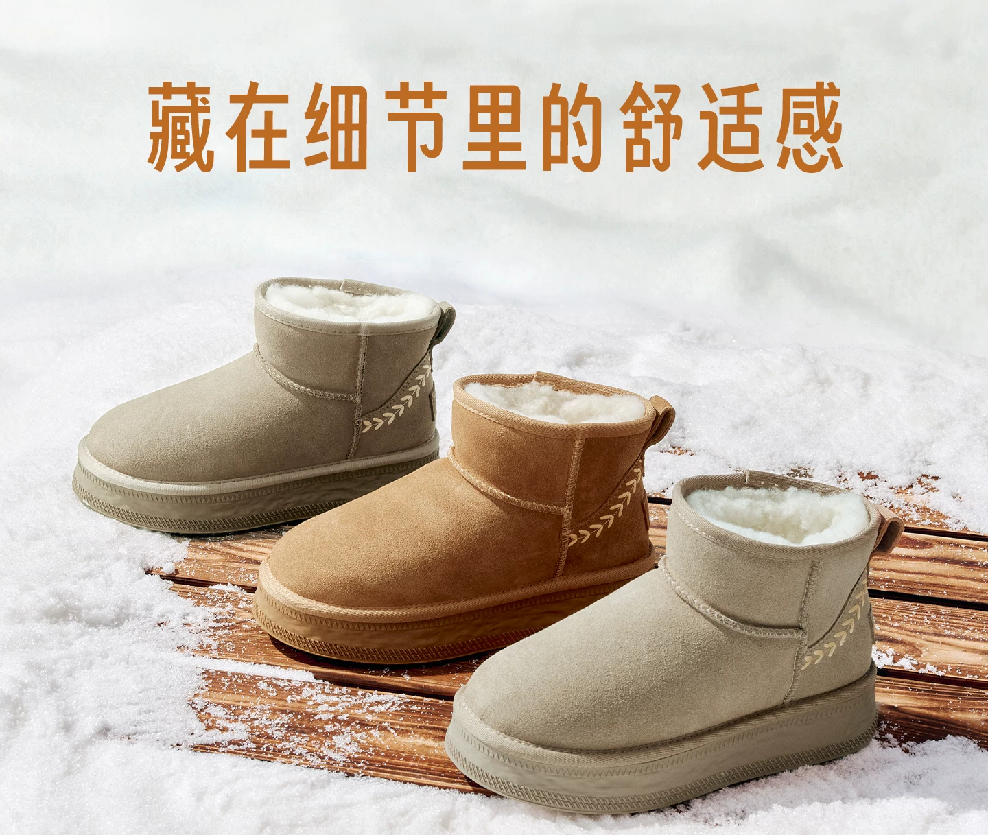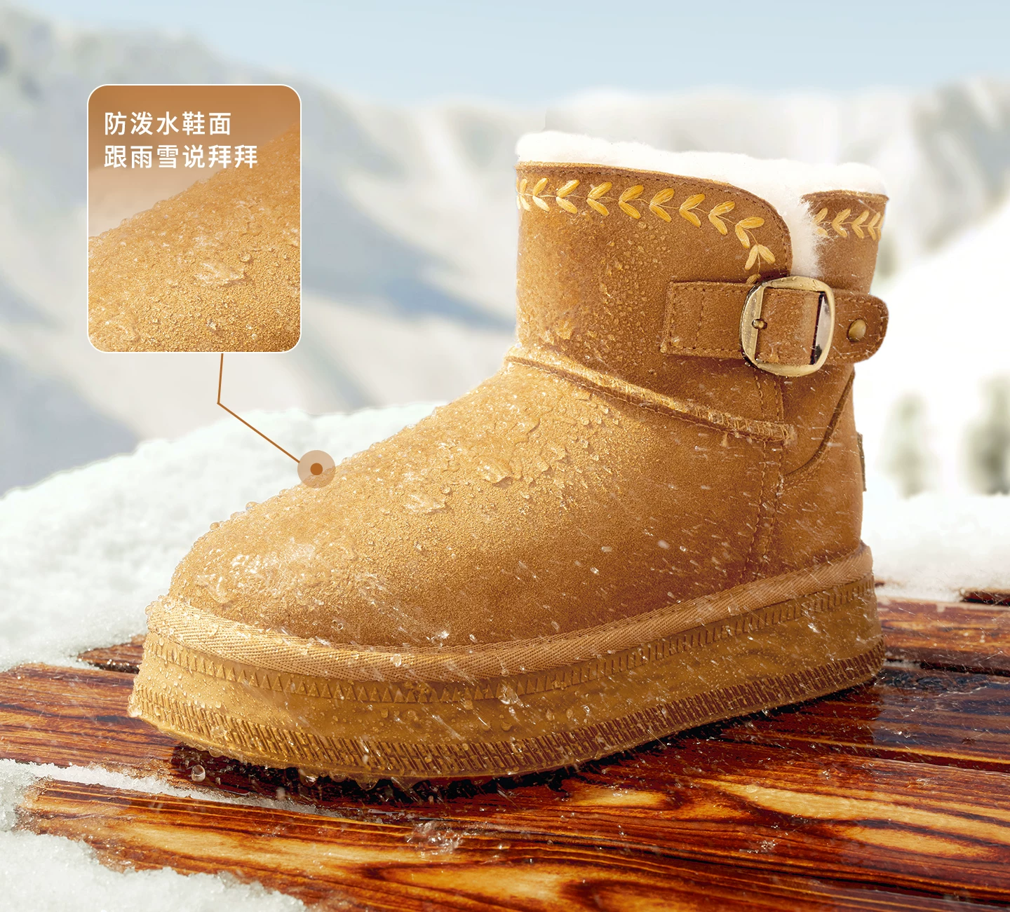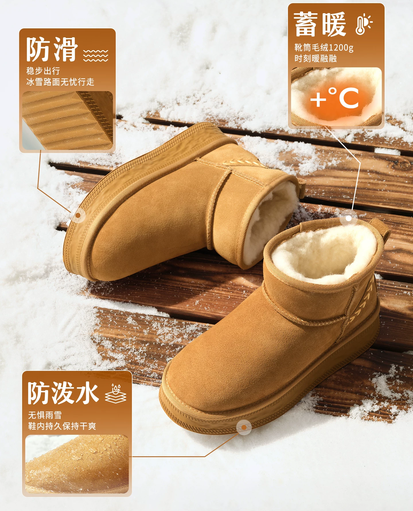 - Giày bốt đi tuyết TATA mùa đông sang trọng giày bốt đế dày chống thấm nước chống trượt lót lông cừu đi tuyết bốt cotton CWX01DD5