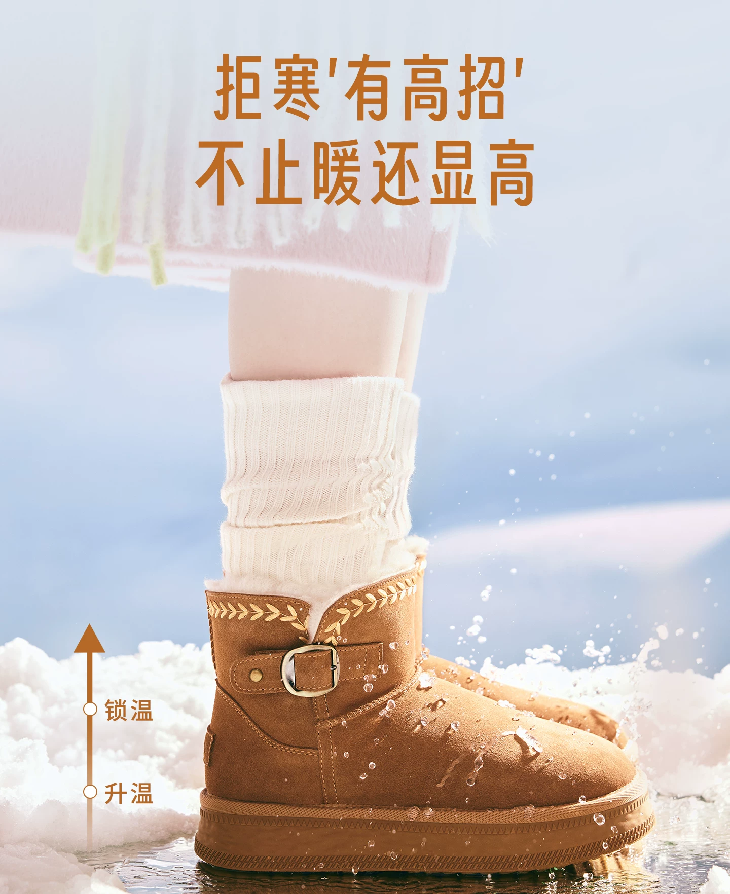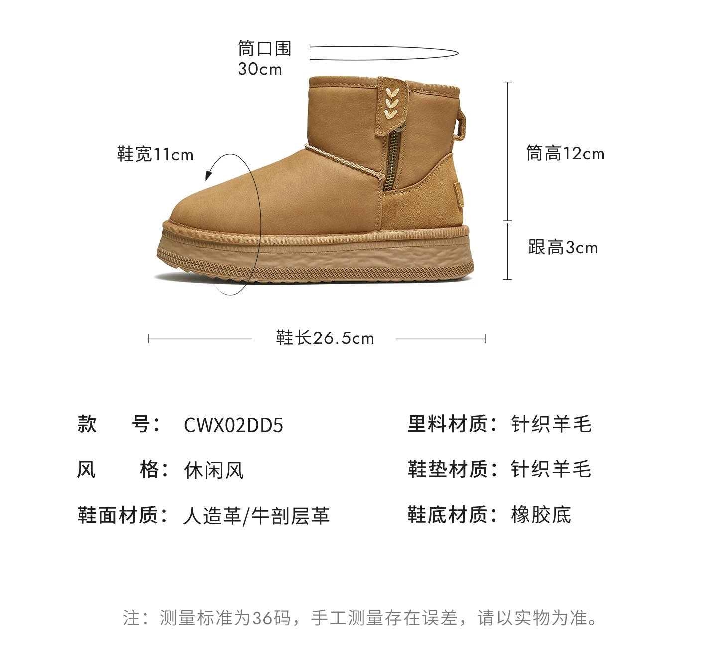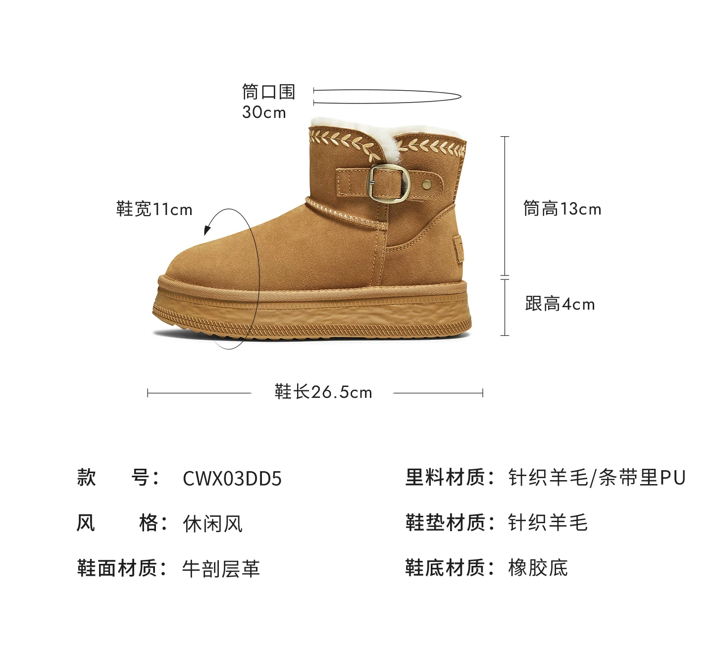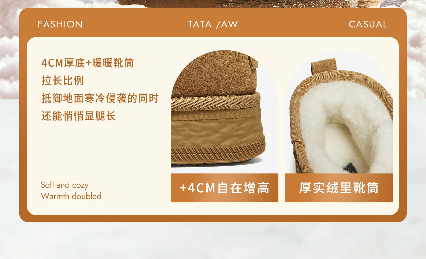 - Giày bốt đi tuyết TATA mùa đông sang trọng giày bốt đế dày chống thấm nước chống trượt lót lông cừu đi tuyết bốt cotton CWX01DD5