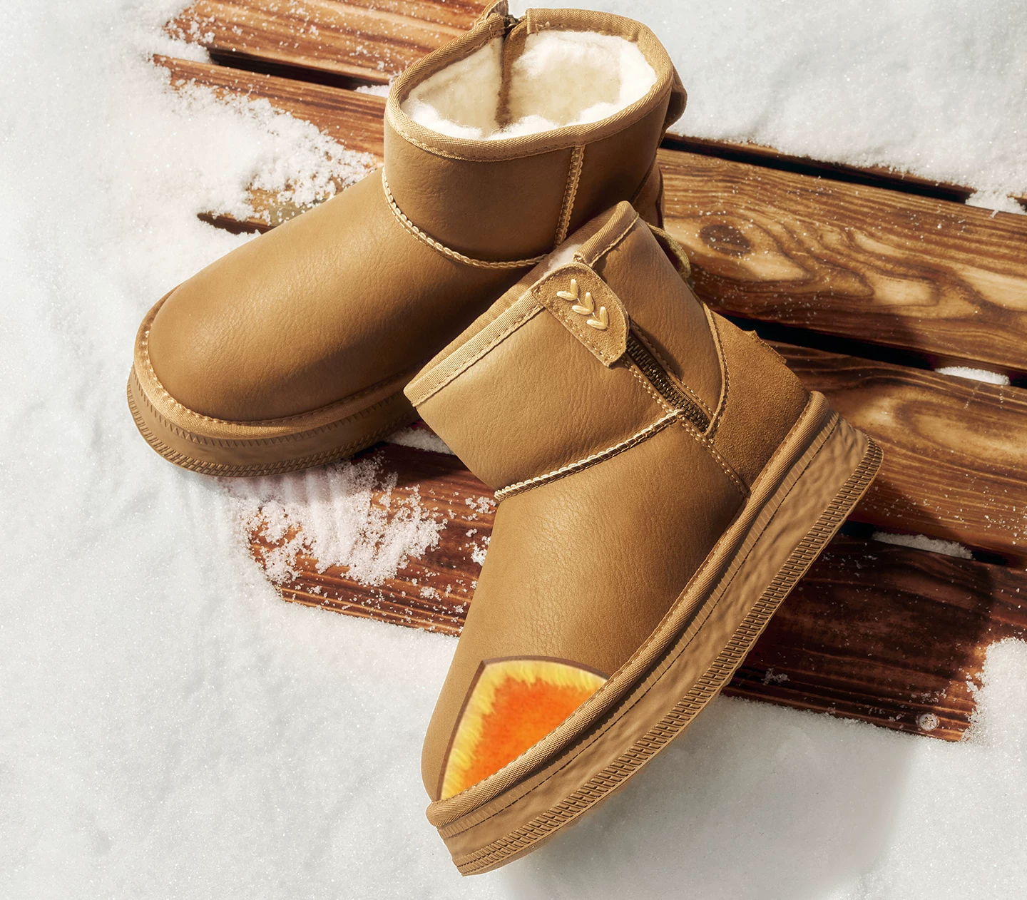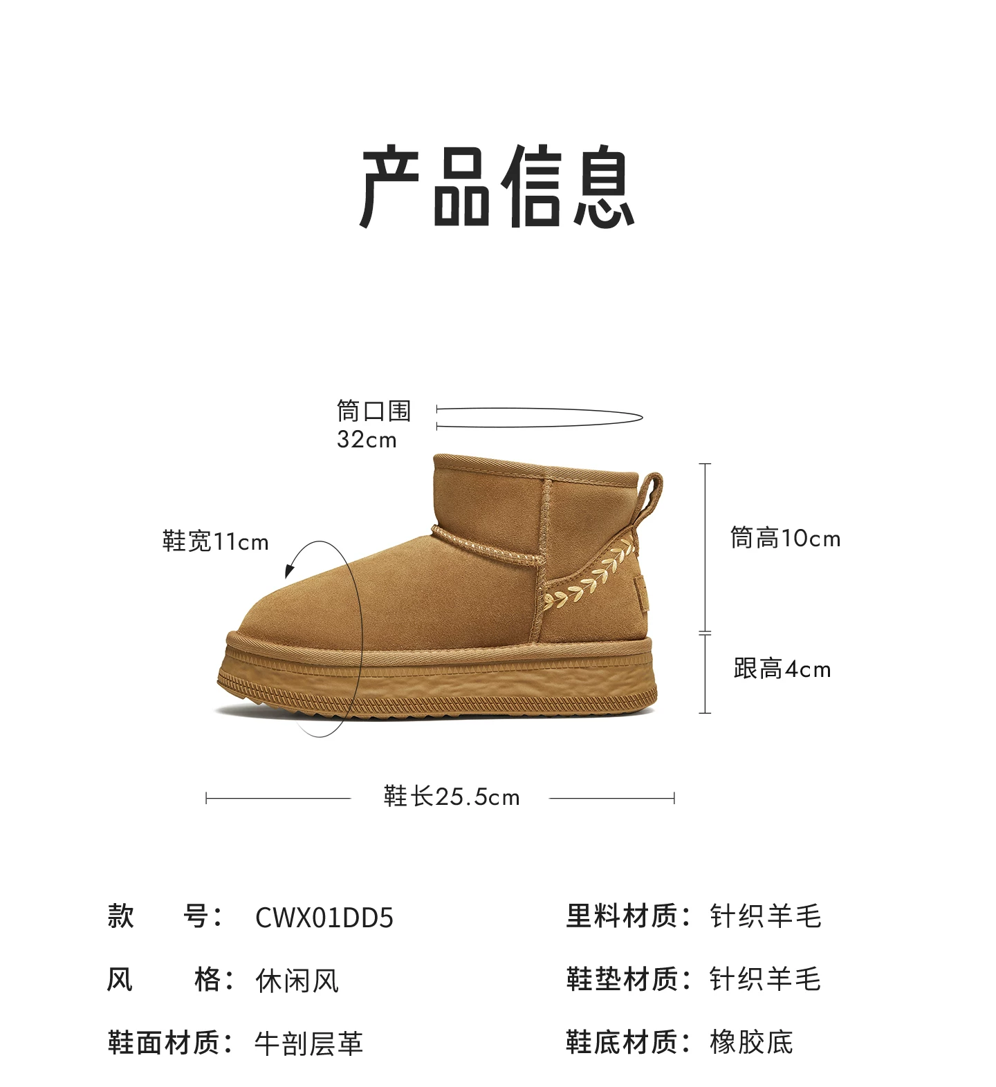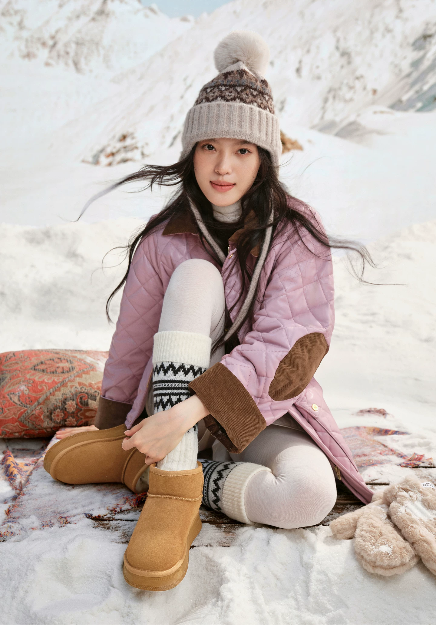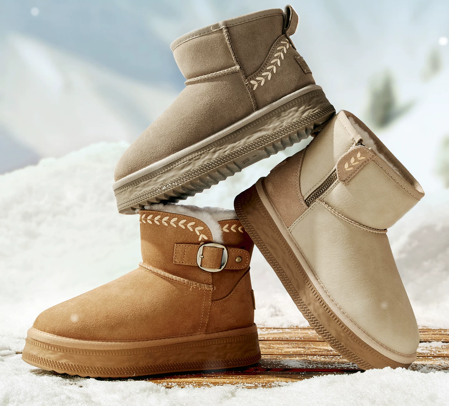 - Giày bốt đi tuyết TATA mùa đông sang trọng giày bốt đế dày chống thấm nước chống trượt lót lông cừu đi tuyết bốt cotton CWX01DD5