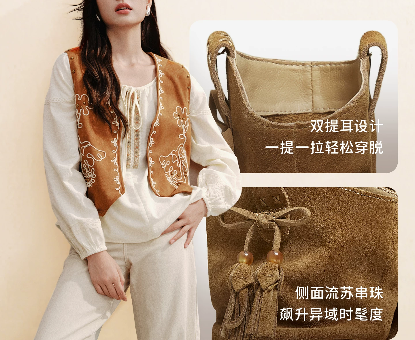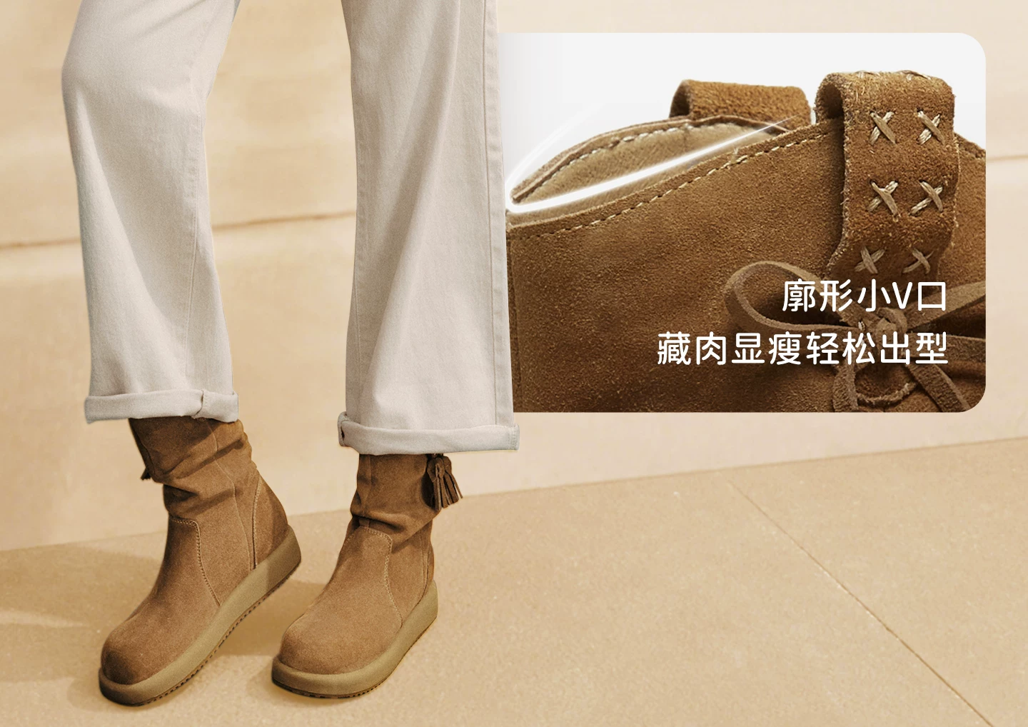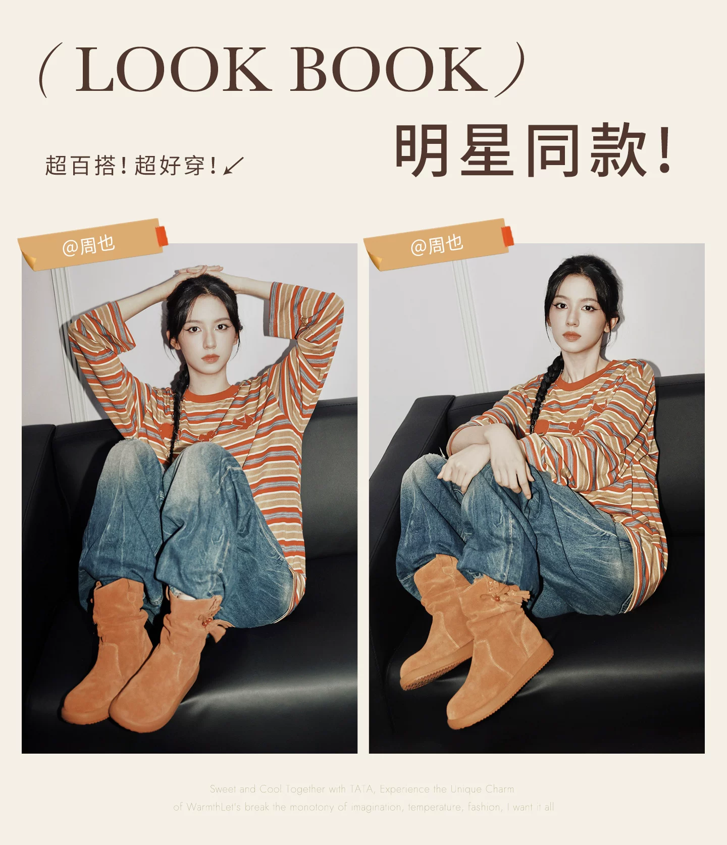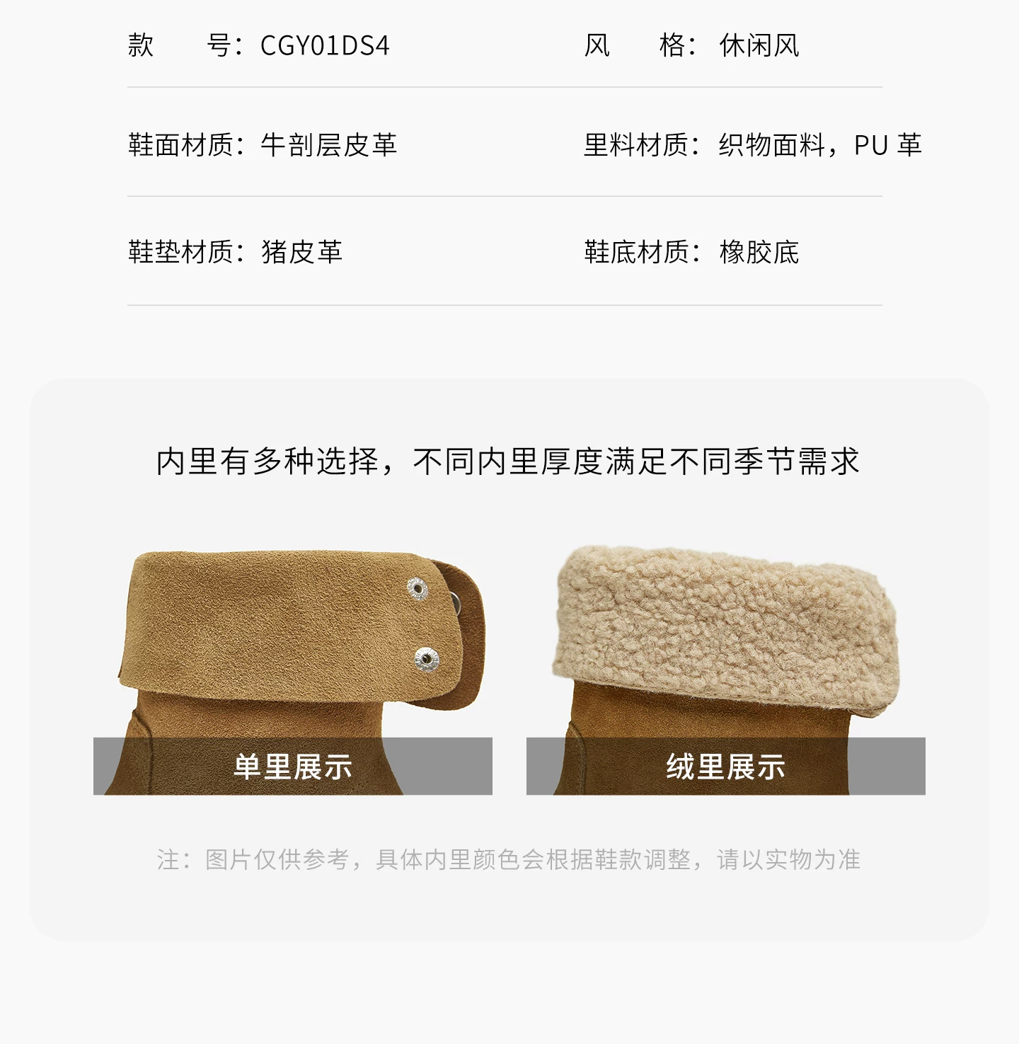 - Giày bốt gấu TATA cùng kiểu dáng của Chu Yeyong, bốt dáng rộng kiểu phương Tây, bốt ngắn lót lông cừu, bốt Melard CHD01DZ5