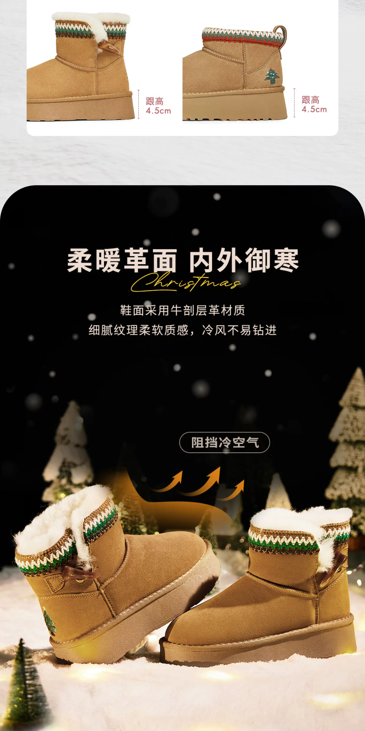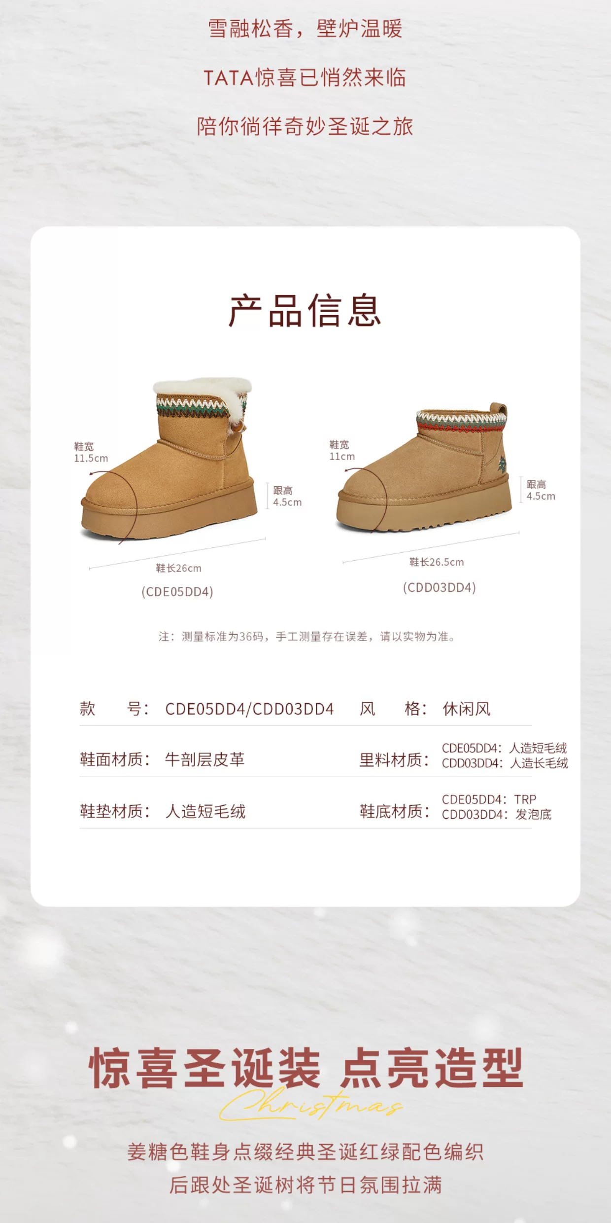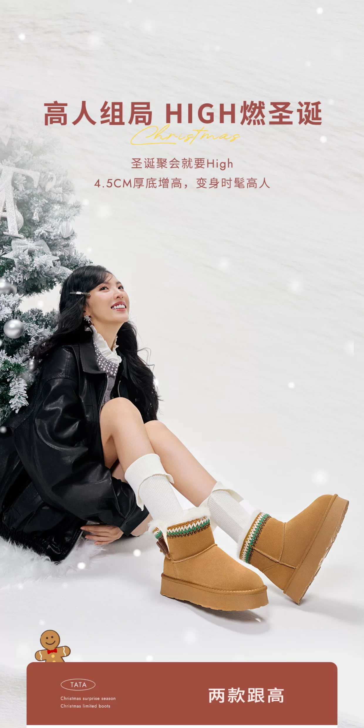 - Giày bốt Giáng sinh TATA có lớp lót lông mềm, giày bốt đi tuyết ấm áp dành cho nữ, giày cotton lông đế dày, bốt ngắn mùa đông CDD03DD4