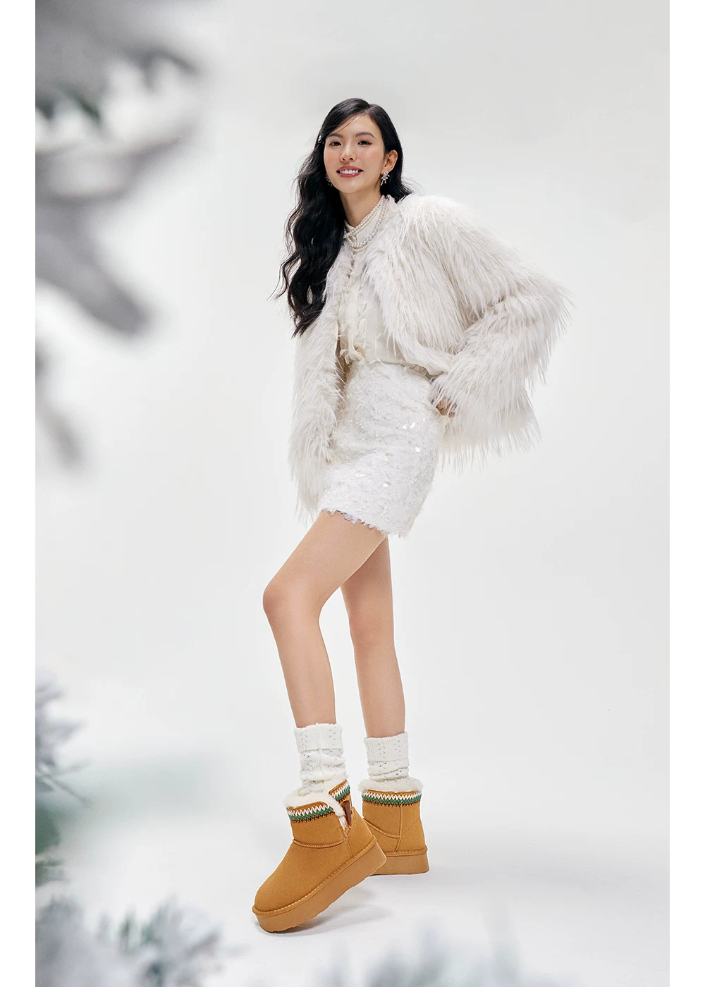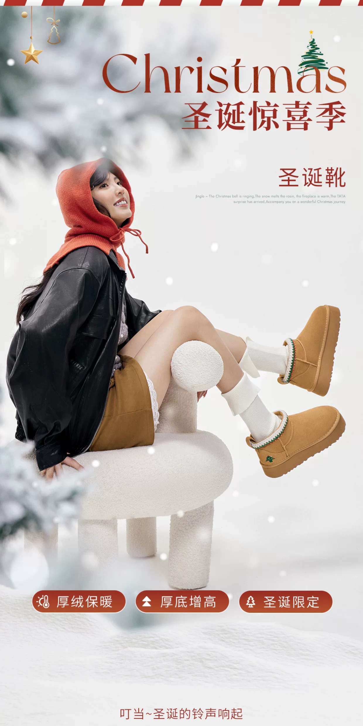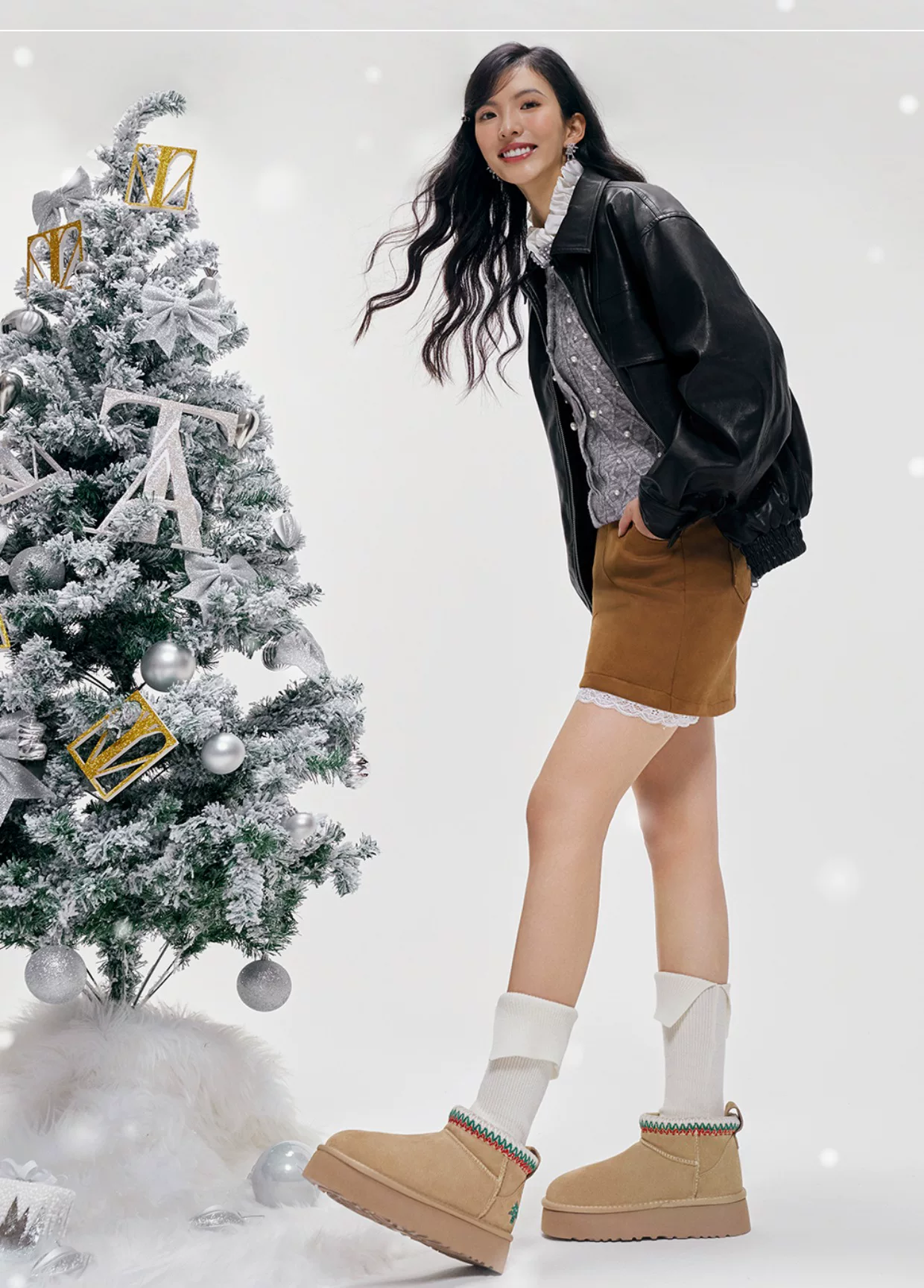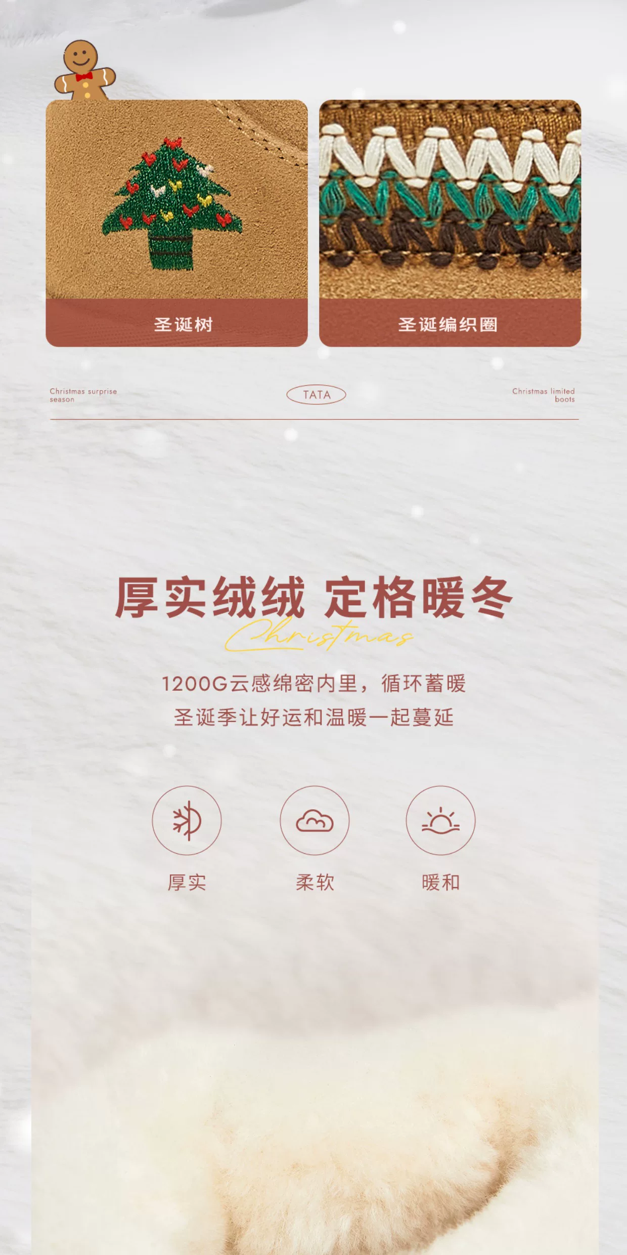 - Giày bốt Giáng sinh TATA có lớp lót lông mềm, giày bốt đi tuyết ấm áp dành cho nữ, giày cotton lông đế dày, bốt ngắn mùa đông CDD03DD4