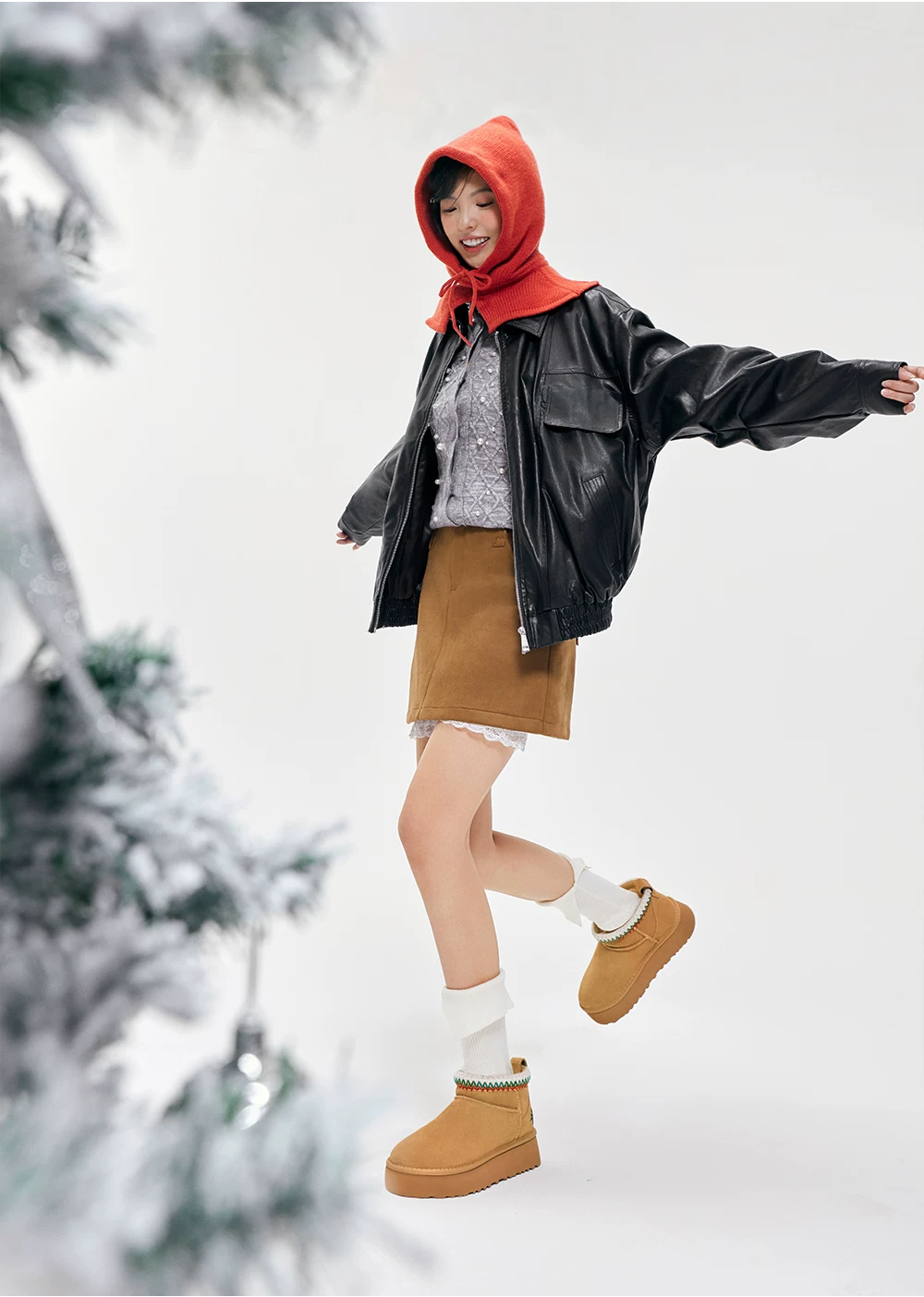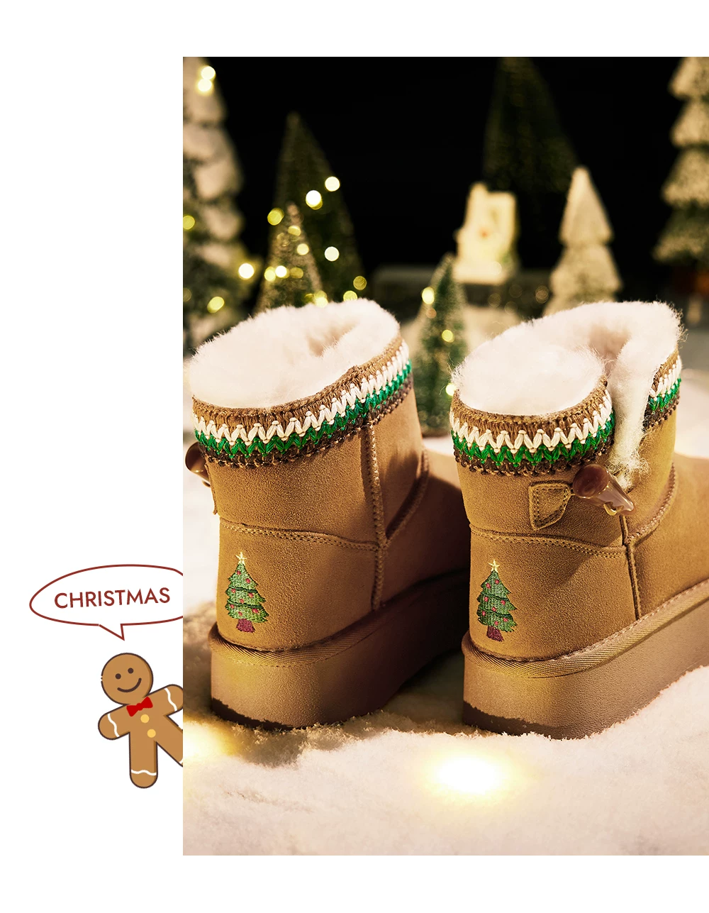 Giày bốt Giáng sinh TATA có lớp lót lông mềm, giày bốt đi tuyết ấm áp dành cho nữ, giày cotton lông đế dày, bốt ngắn mùa đông CDD03DD4