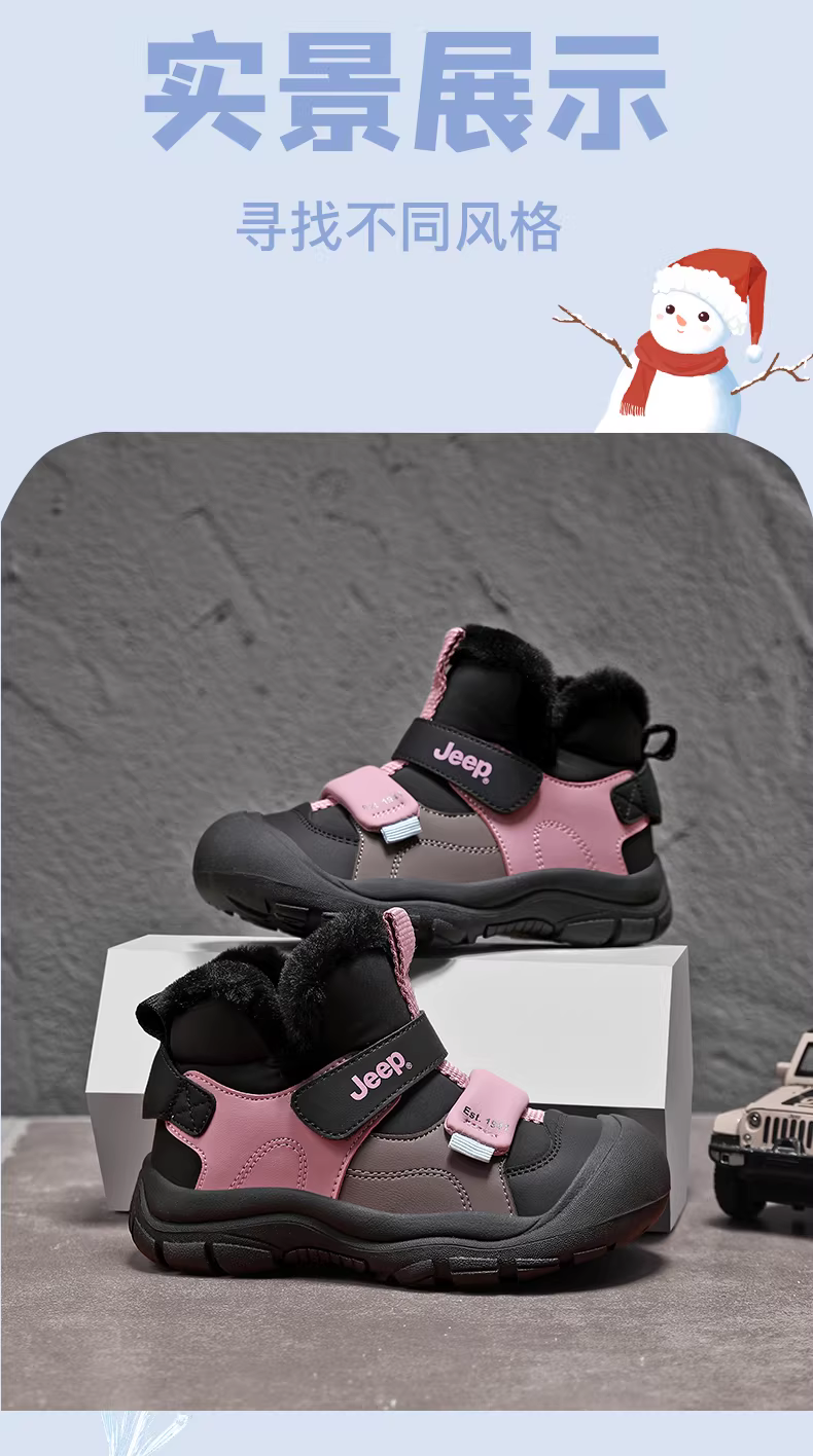 - Giày bốt giữ ấm mùa đông cho bé gái Jeep năm 2025, giày trẻ em mới, chất liệu da, lót bông liền thân, giày bông lót lông cừu, giày bông cỡ lớn