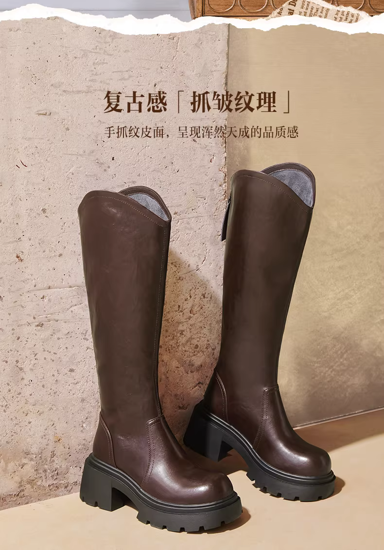 - Giày bốt hiệp sĩ cổ điển có đế dày tăng chiều cao Tianmeiyi có lông cừu, bốt dài dành cho nữ, bốt thời trang ống cao, bốt da, mẫu mùa đông mới.
