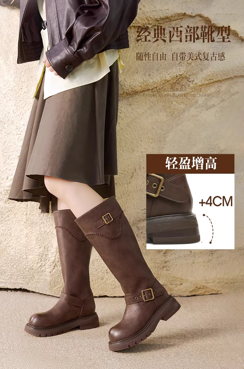 - Giày bốt hiệp sĩ đế dày cổ điển Tianmeiyi, bốt kiểu Tây, bốt cao cổ, bốt thời trang nữ cao cổ, mẫu mới mùa đông 2025 BM351DG5