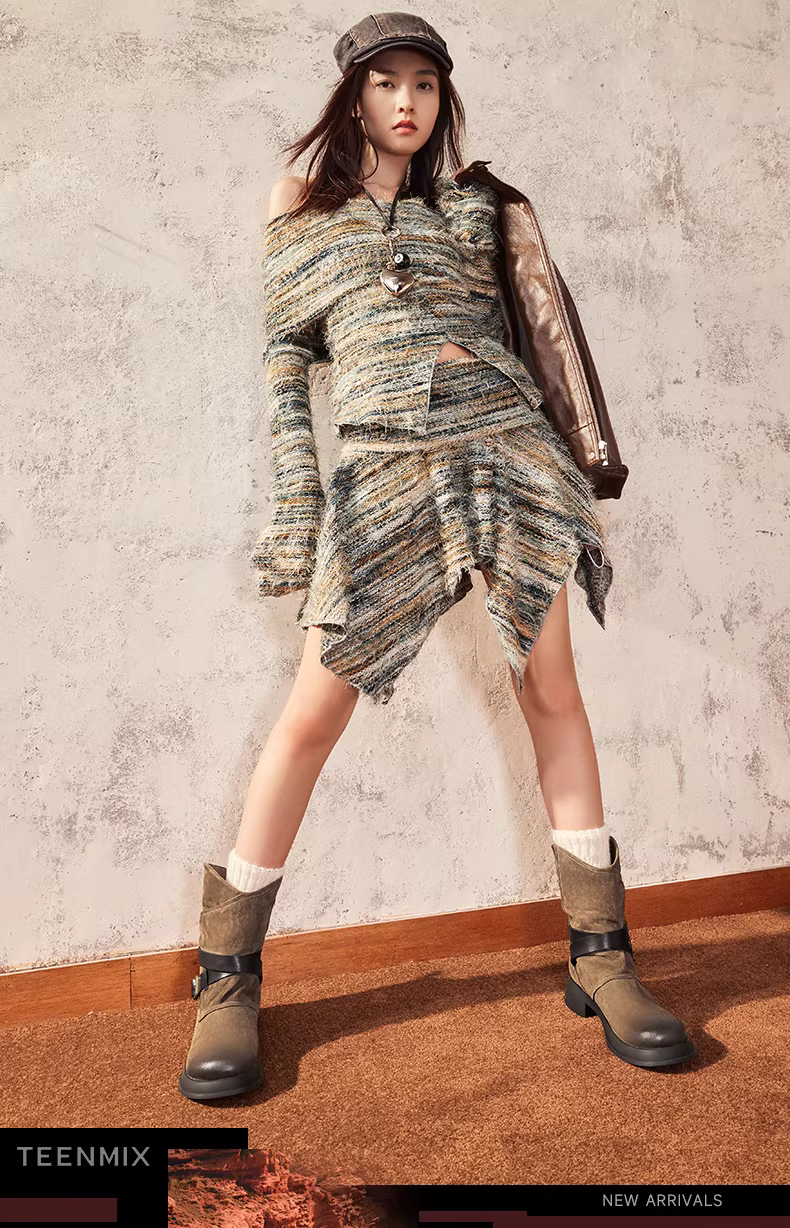 Giày bốt kiểu phương Tây cổ điển kiểu Tianmeiyi Barn của Liu Ying, giày bốt hiệp sĩ, giày nữ, bốt ngắn lót lông cừu, mẫu mùa đông mới.