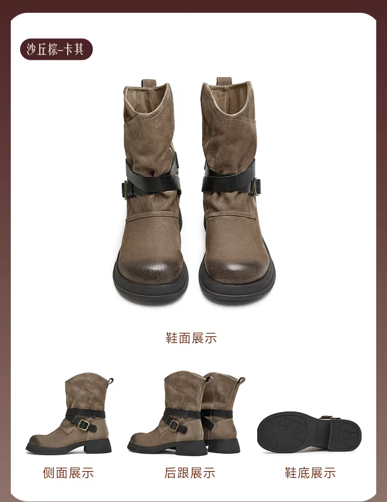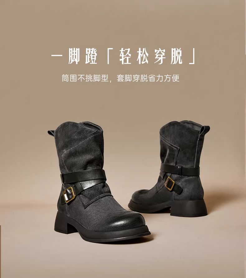 - Giày bốt kiểu phương Tây cổ điển kiểu Tianmeiyi Barn của Liu Ying, giày bốt hiệp sĩ, giày nữ, bốt ngắn lót lông cừu, mẫu mùa đông mới.