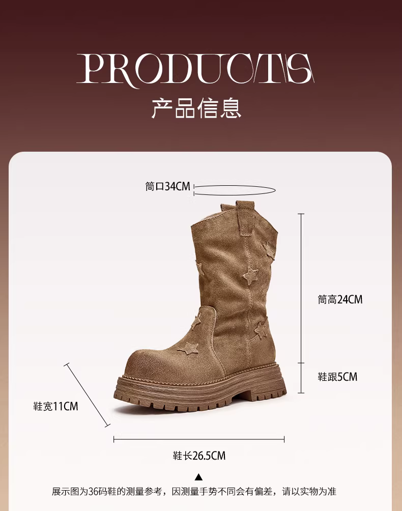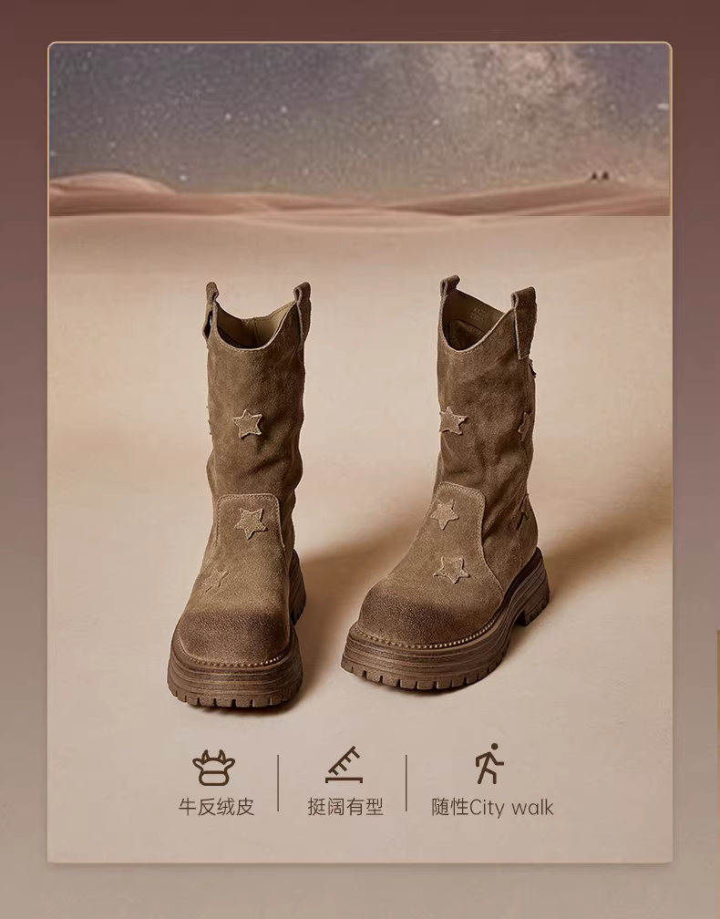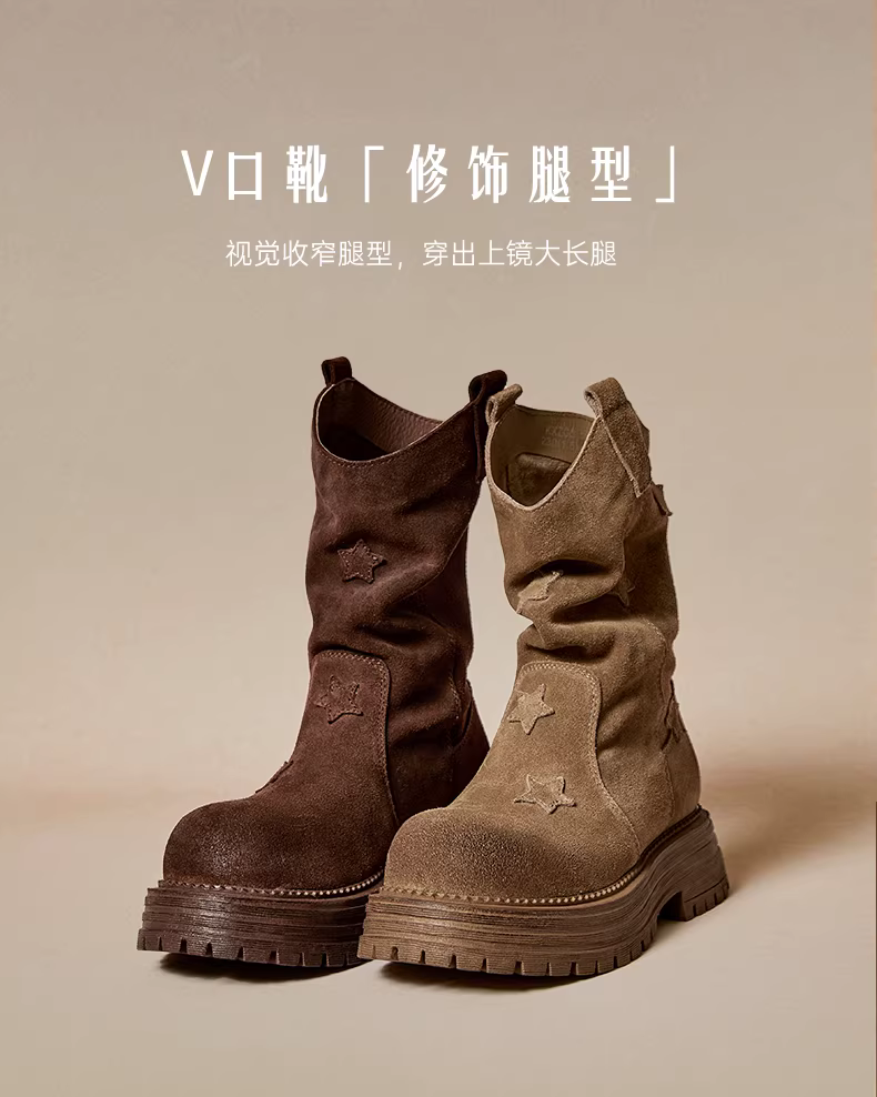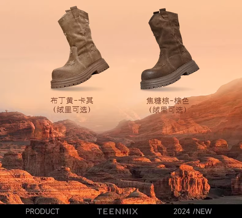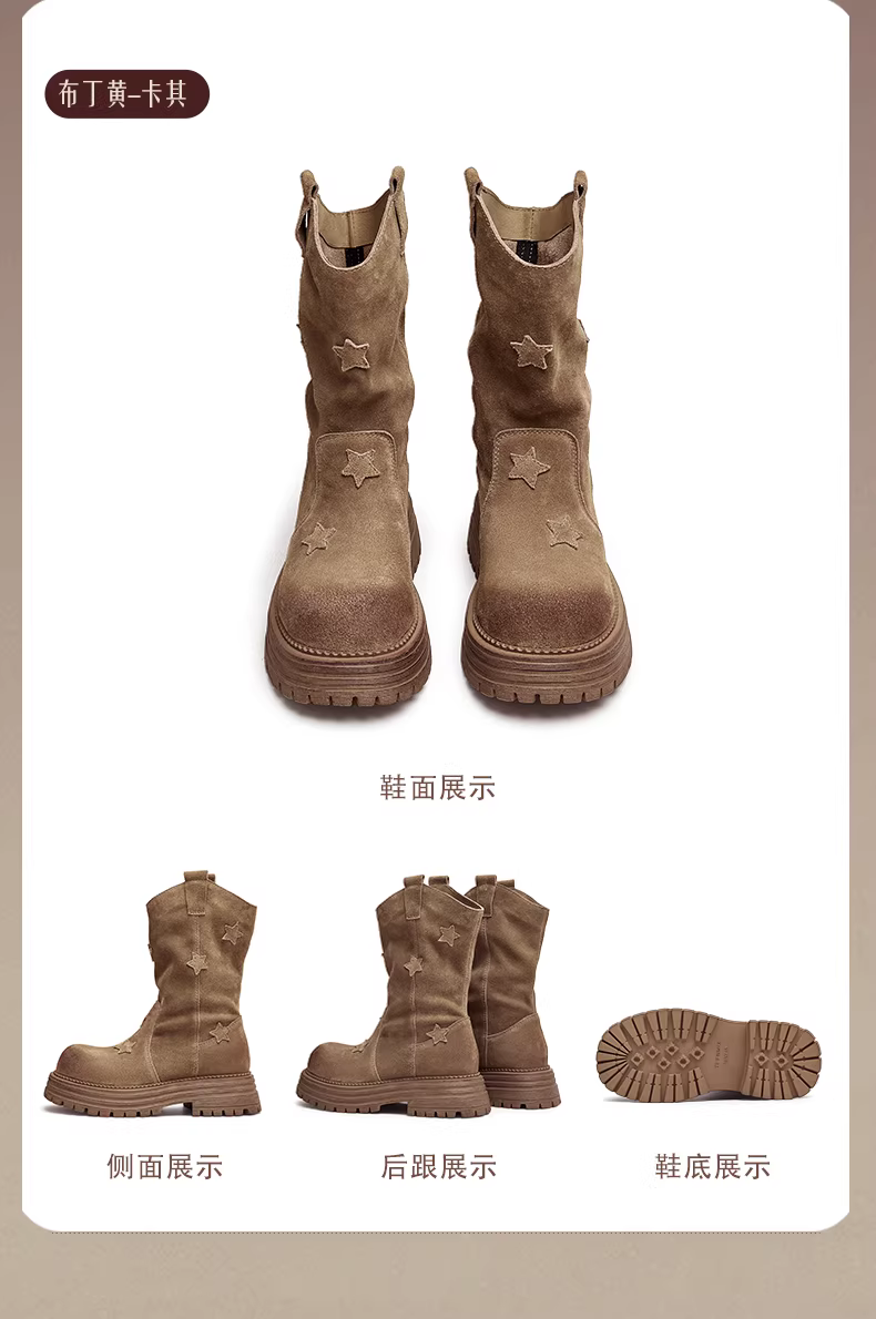 - Giày bốt kiểu phương Tây đế dày cổ chữ V kiểu cổ điển Tianmeiyi có lớp lót lông cừu, bốt lười họa tiết ngôi sao, giày nữ, bốt cưỡi ngựa kiểu mùa đông mới, bốt ngắn.