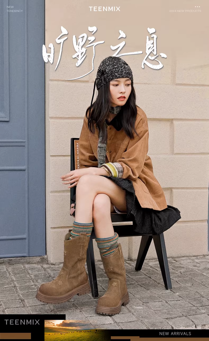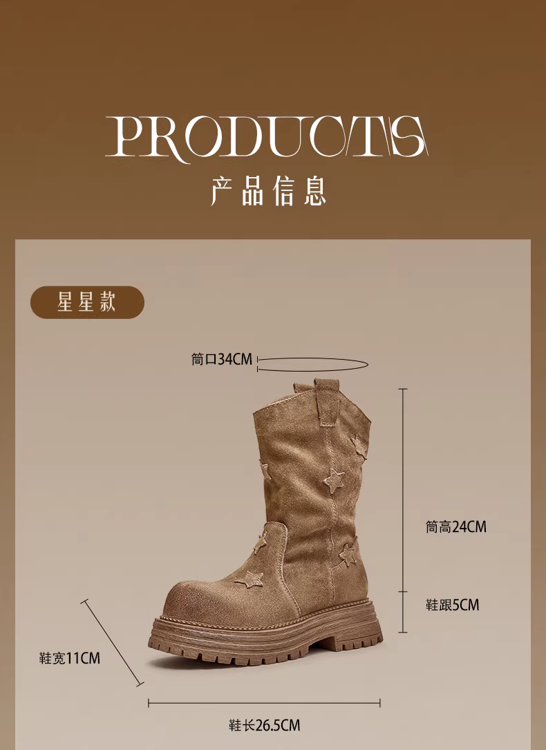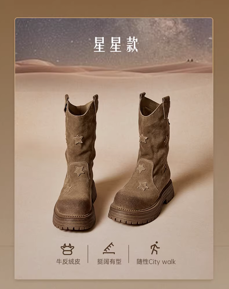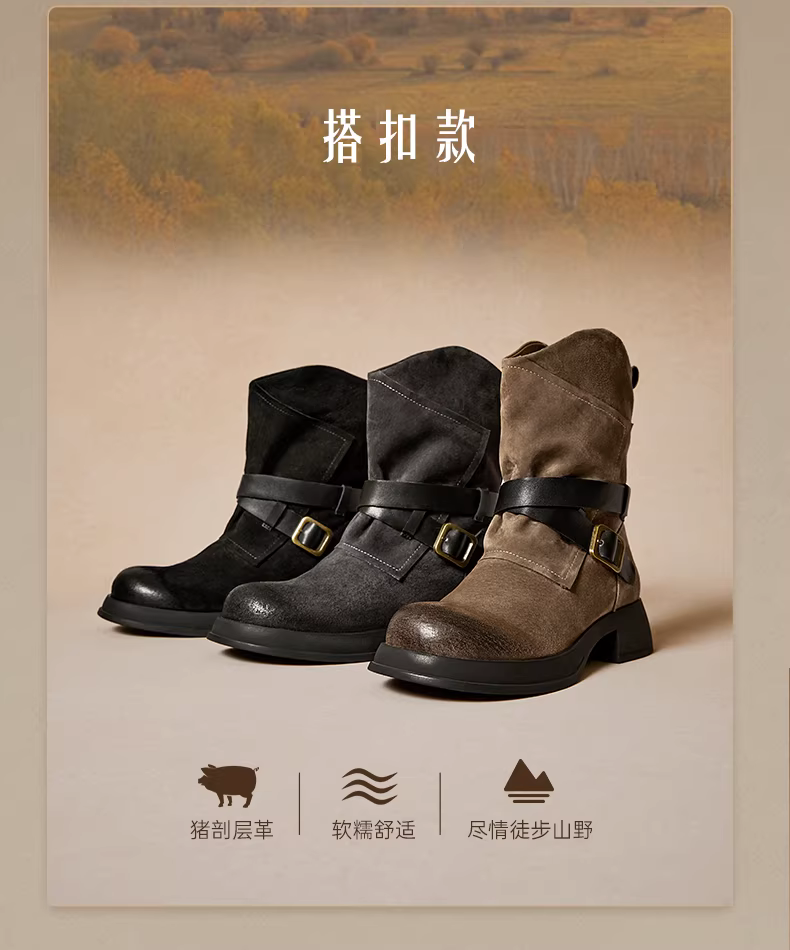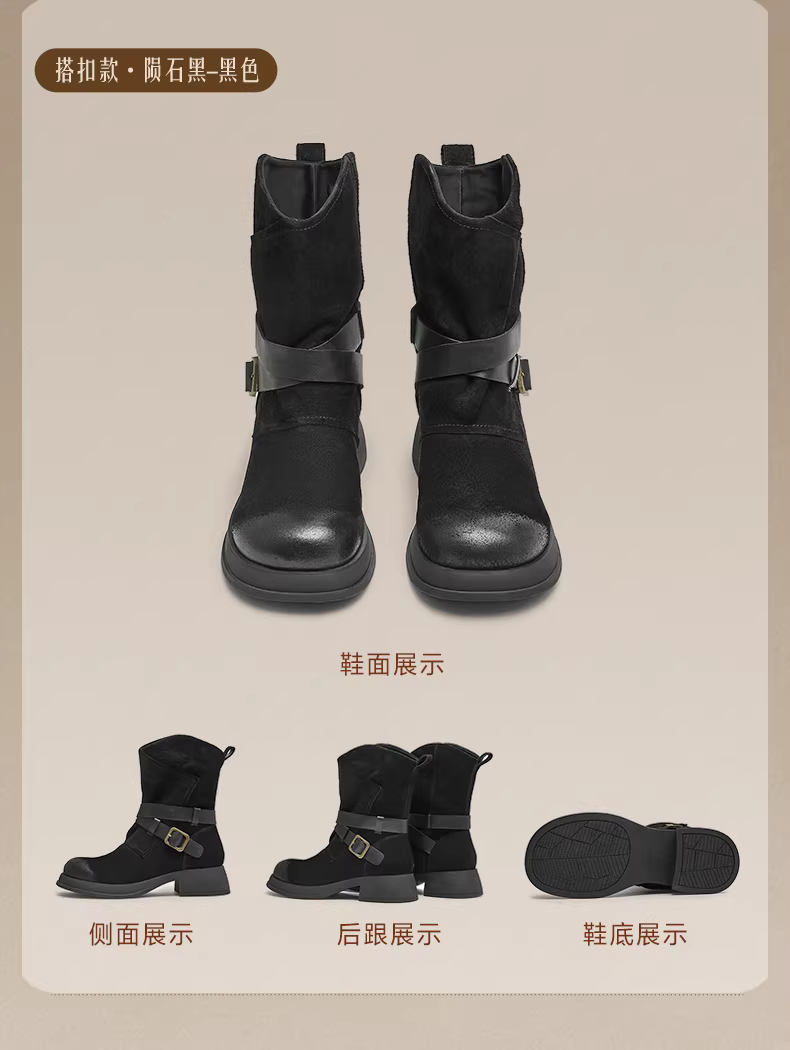 Giày bốt kiểu Tianmeiyi Barn cổ điển, kiểu miền Tây, kiểu xếp lớp, lót lông cừu, giày cưỡi ngựa, giày nữ, bốt ngắn, kiểu mới mùa đông
