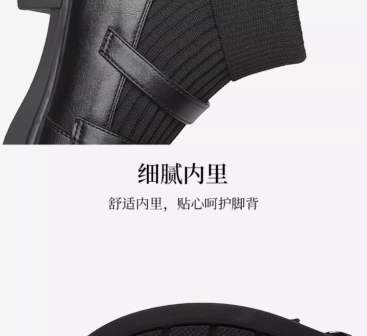 - Giày bốt kiểu vớ Dadong Loafer nữ 2025, mẫu mới thu đông, chất liệu dệt kim co giãn, kiểu dáng ôm sát, màu đen, phong cách Anh, giày bốt ngắn kiểu vớ