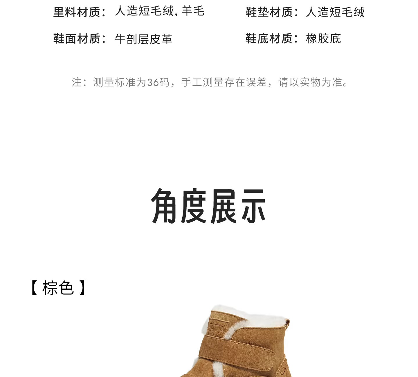 - Giày bốt lông thú nữ TATA Giày bốt đi tuyết lót lông cừu mùa đông đế dày ngoài trời Giày cotton ấm áp lông thú CYY03DD5