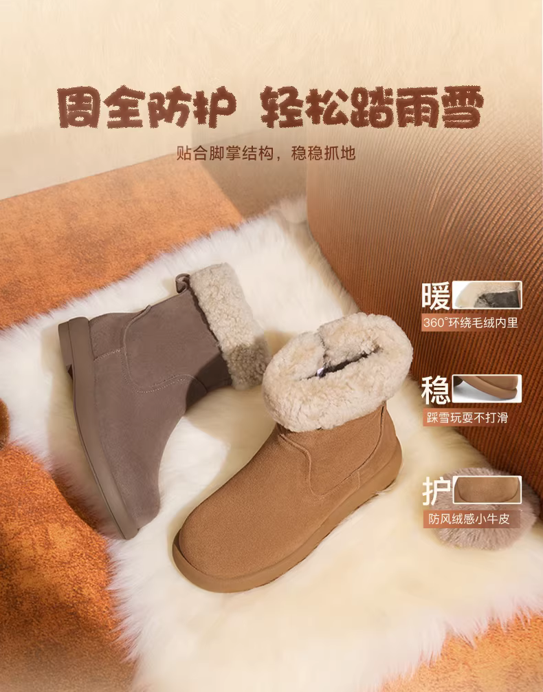 - Giày bốt lông thú Tianmeiyi Giày bốt cổ điển ấm áp có lót lông cừu Giày bốt đi tuyết Giày cotton Giày nữ Giày bốt đế dày Giày bốt ngắn mùa đông Phong cách mới