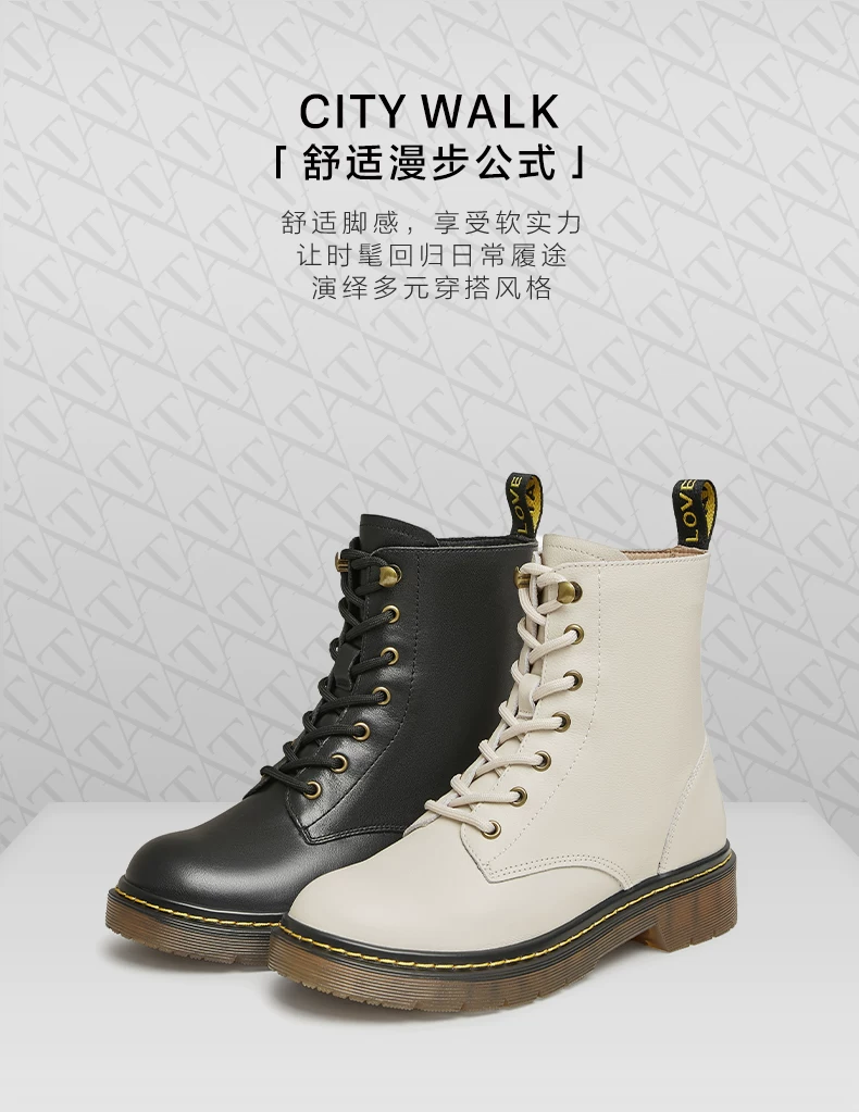 - Giày bốt Martin cổ điển của Anh TATA Giày bốt nữ cổ điển màu đen cổ điển Giày bốt ngắn mùa đông mẫu mới WUY02DZ4