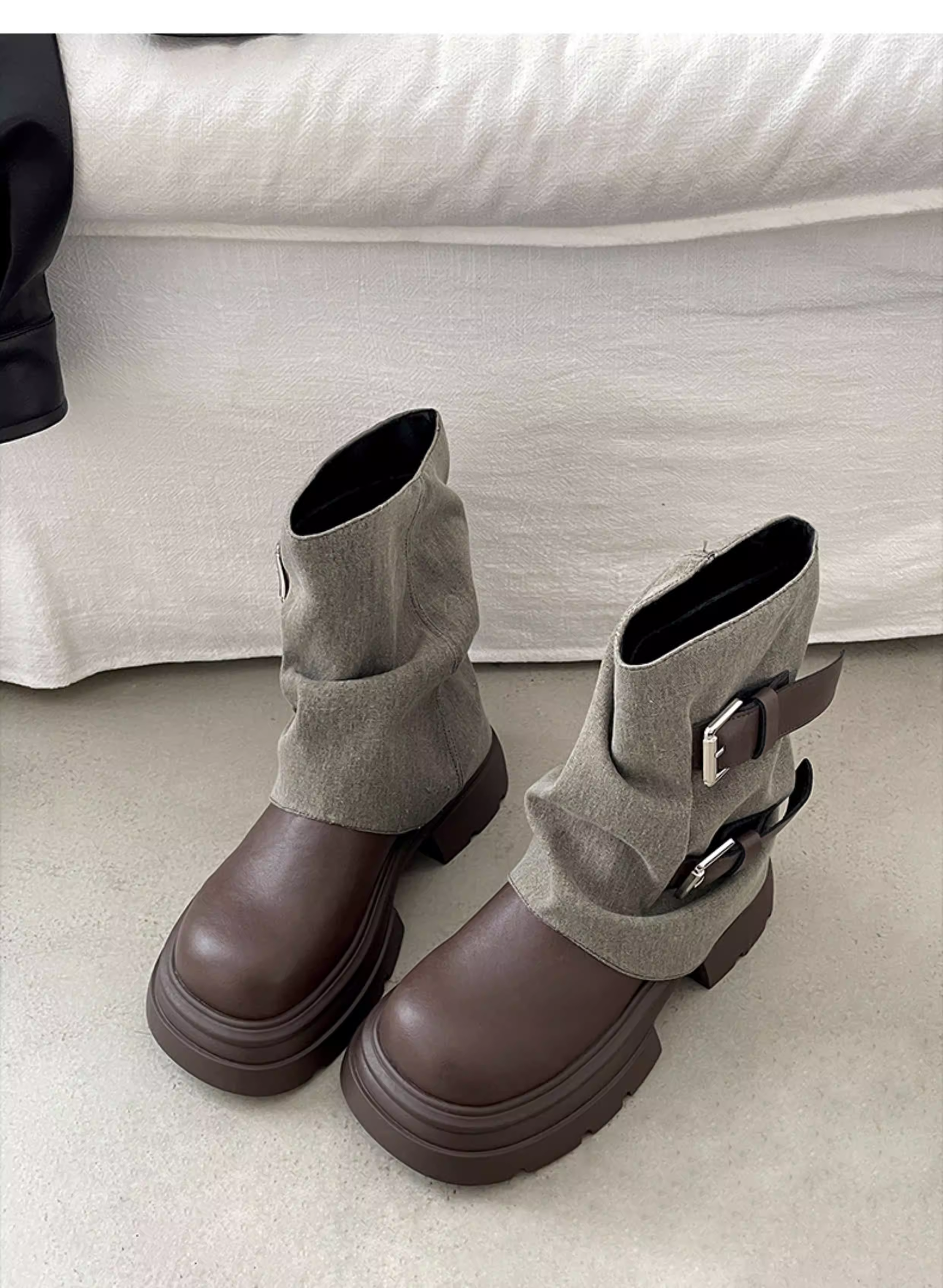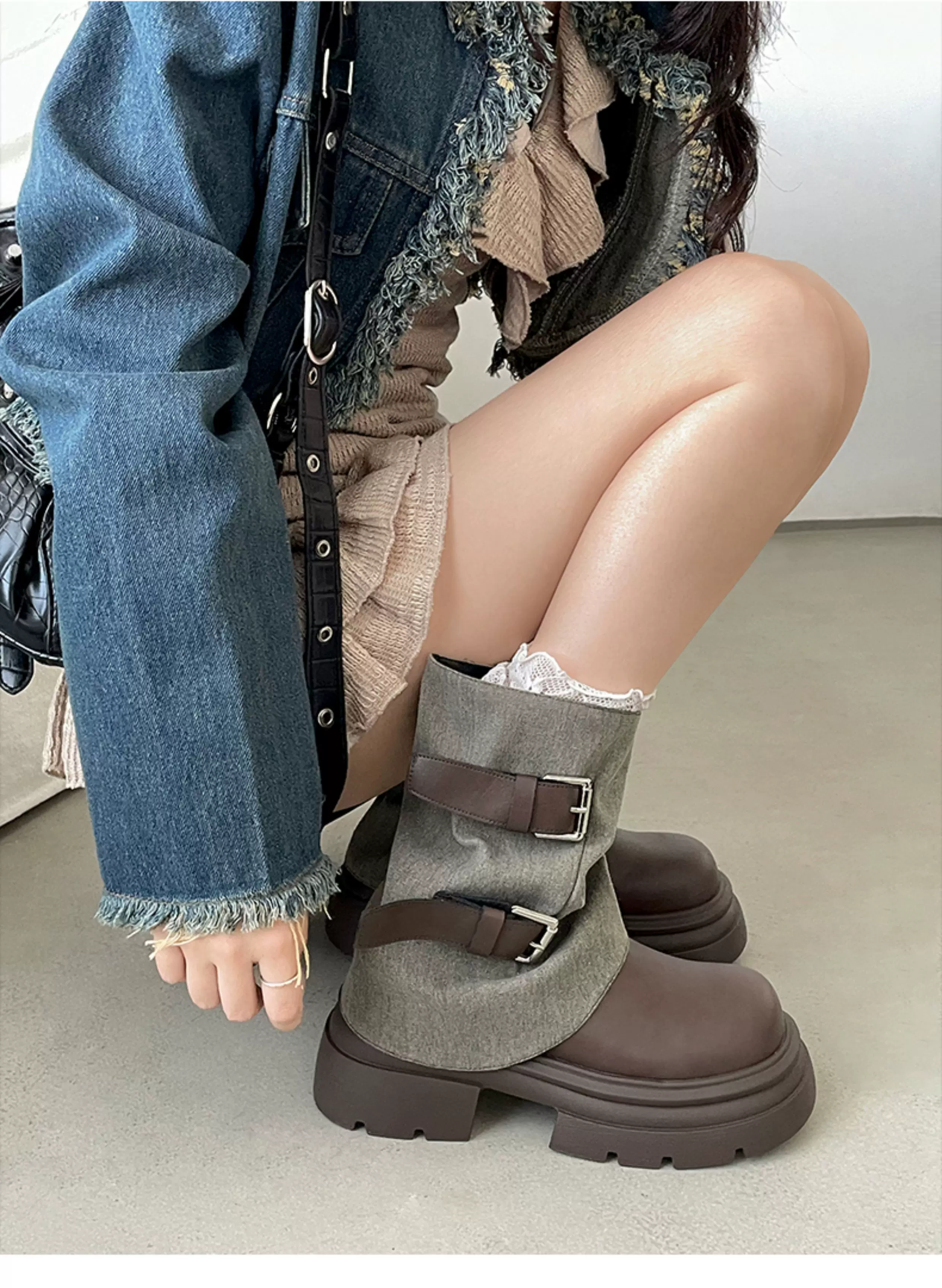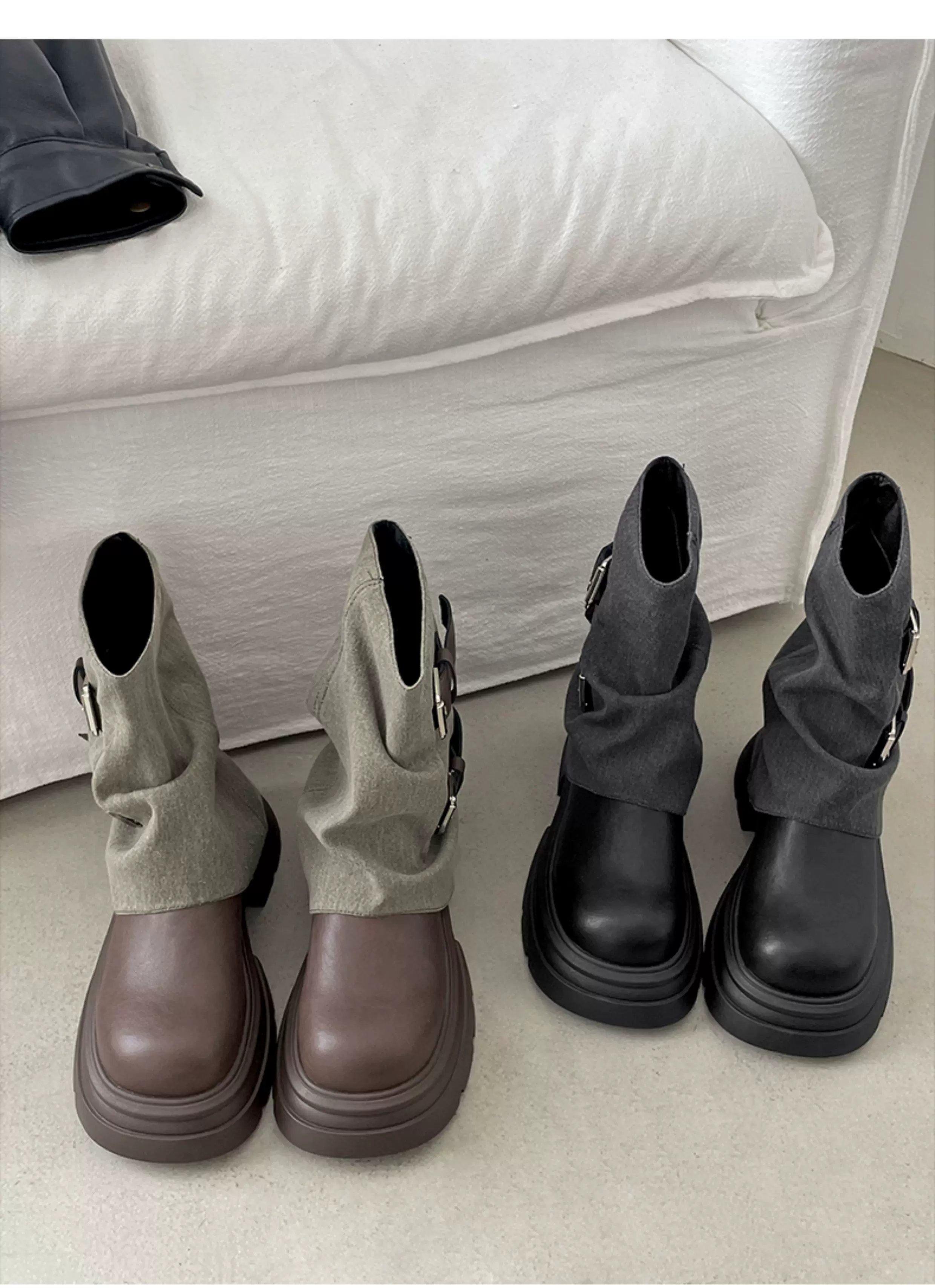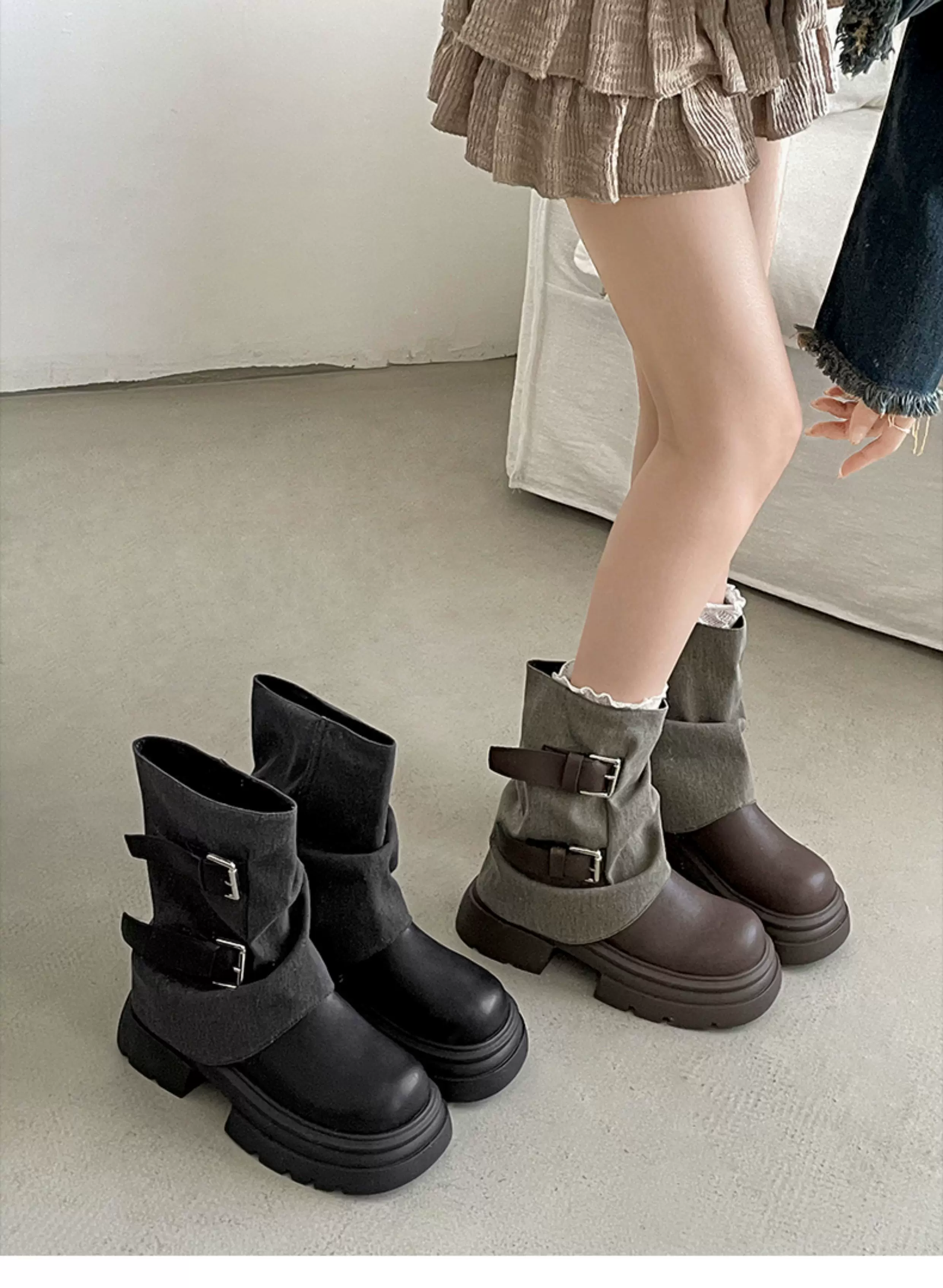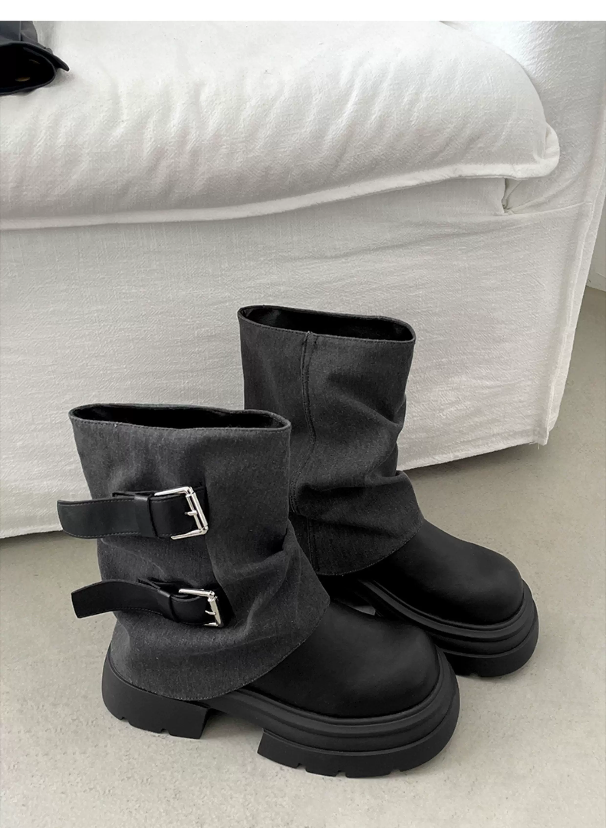 - Giày bốt Martin đế dày kiểu Anh cổ điển màu đen dành cho nữ, giày bốt ngắn tăng chiều cao lót lông cừu mùa thu đông mới năm 2025.