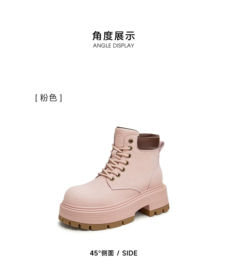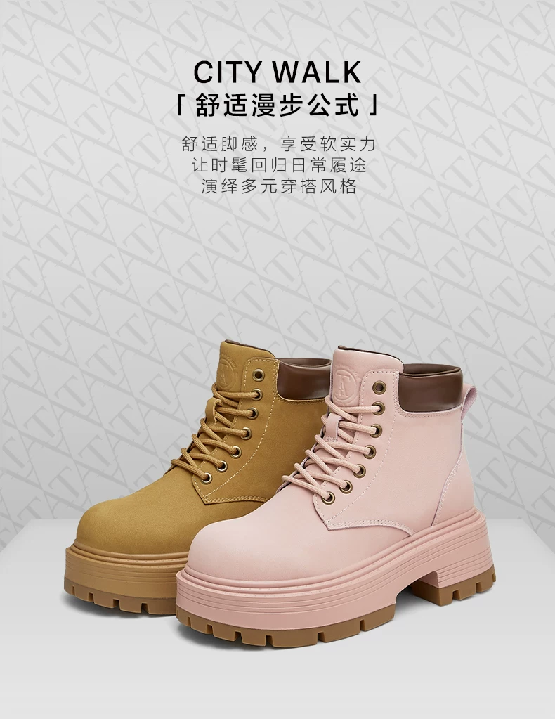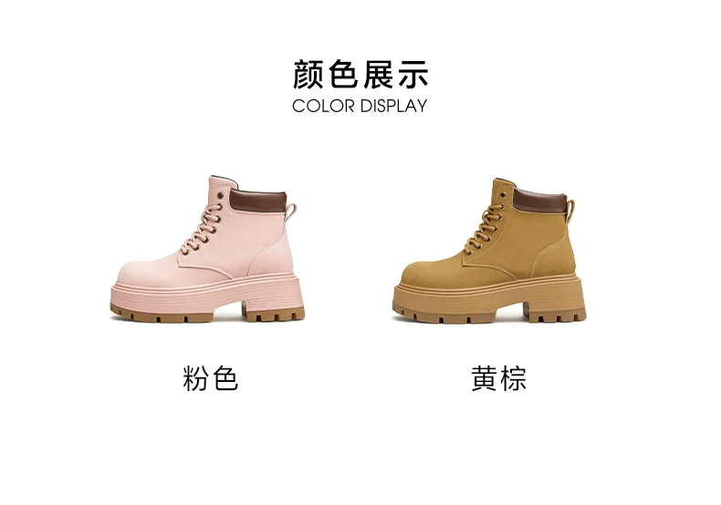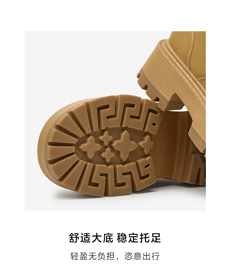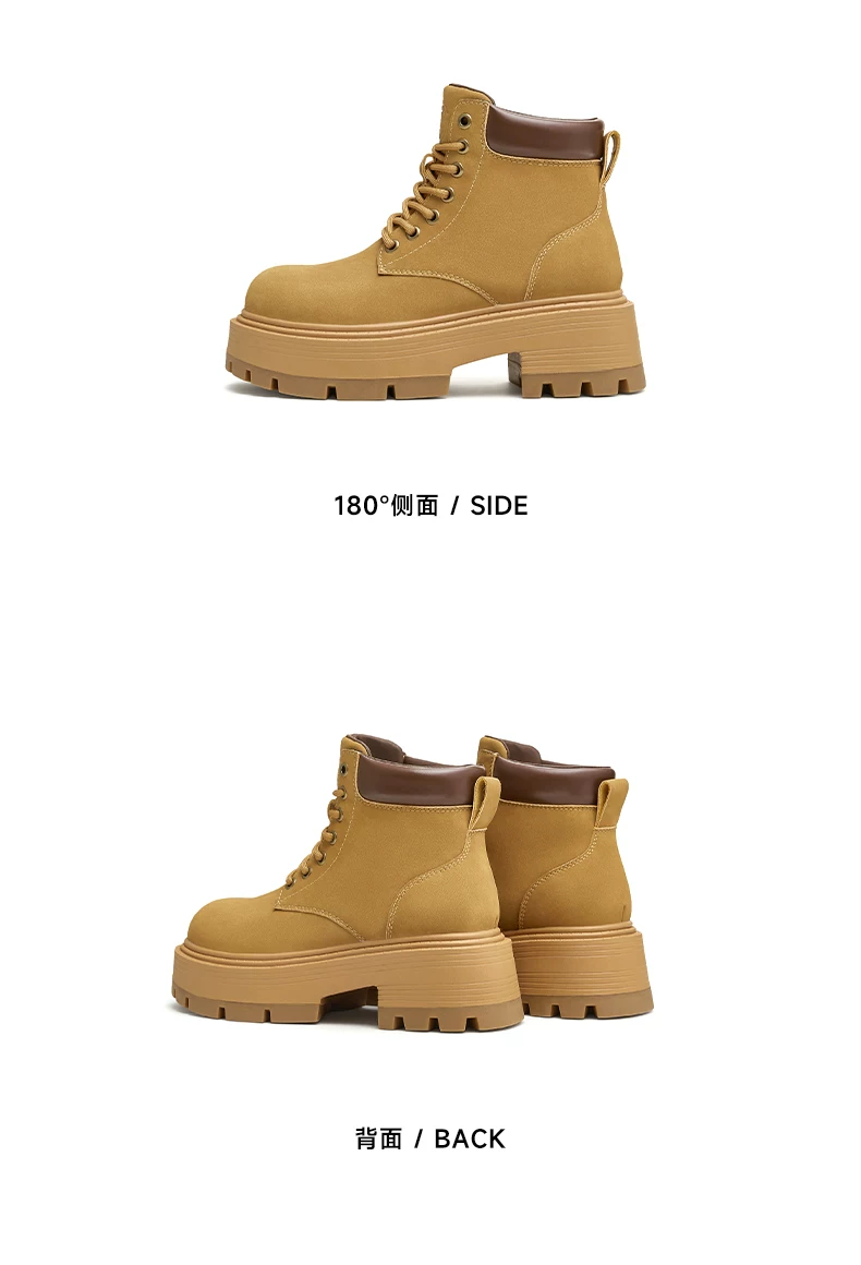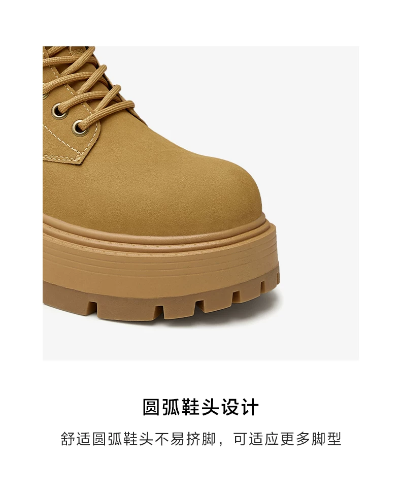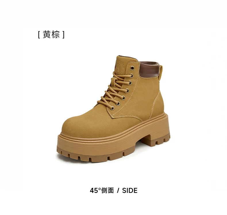 - Giày bốt Martin đế dày kiểu cổ điển TATA Giày bốt công sở nữ cỡ lớn màu vàng Giày bốt ngắn mùa đông màu nâu mẫu mới CCL01DD4