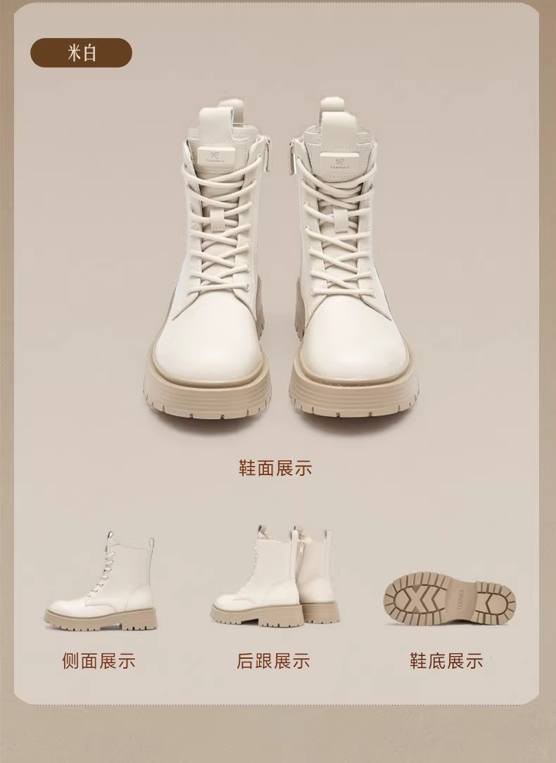 - Giày bốt Martin đế dày lót lông cừu phong cách Anh cổ điển Tianmeiyi dành cho nữ, bốt da ngắn thông thường, mẫu mùa đông mới CQ942DD4