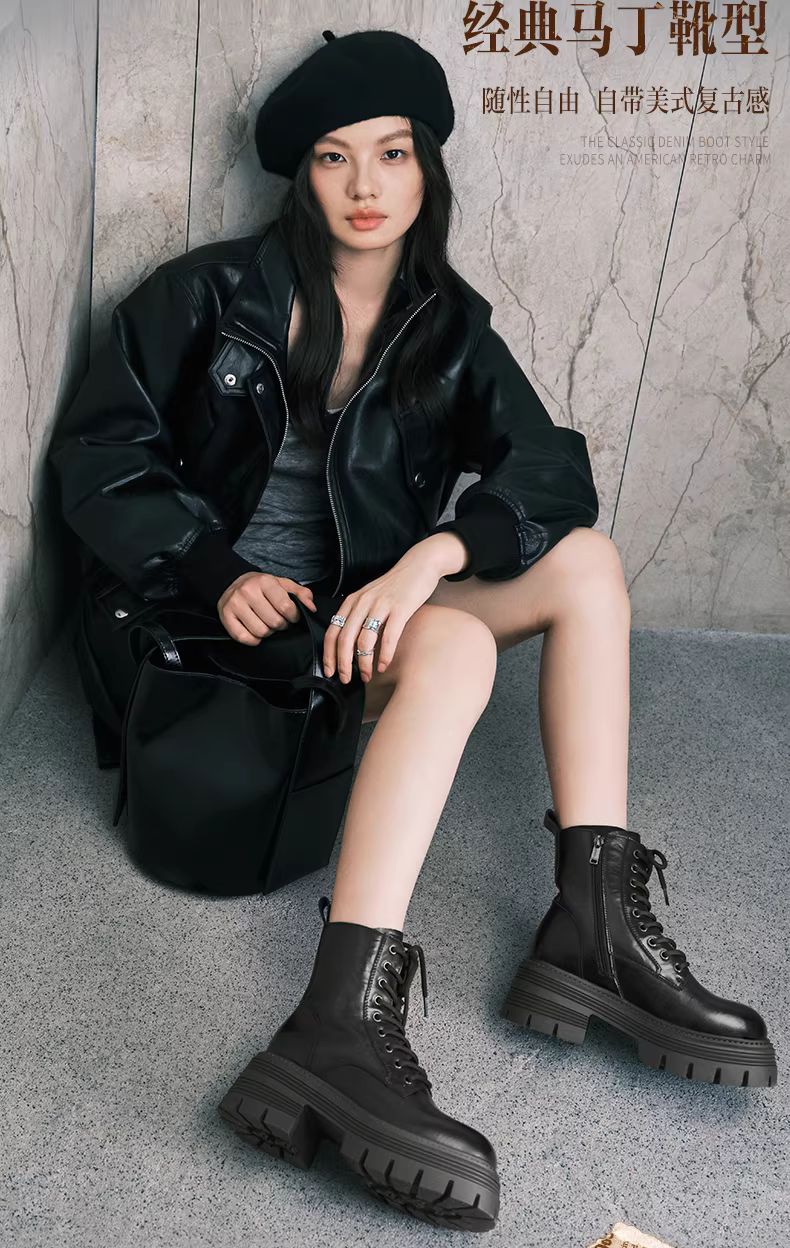 - Giày bốt Martin đế dày phong cách retro Anh Quốc Tianmeiyi, lót lông giữ ấm, tăng chiều cao, dành cho nữ, kiểu dáng thường ngày, bốt ngắn, bốt da, mẫu mới mùa đông 2025