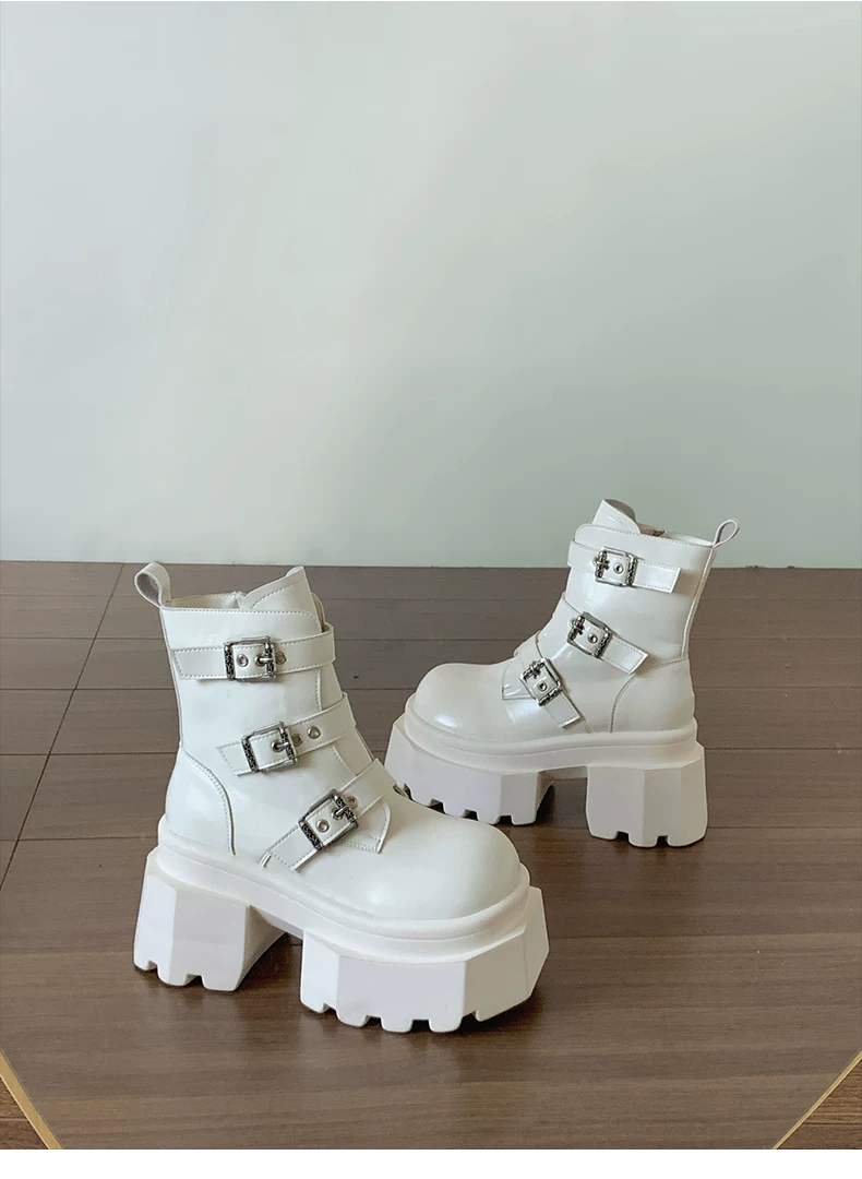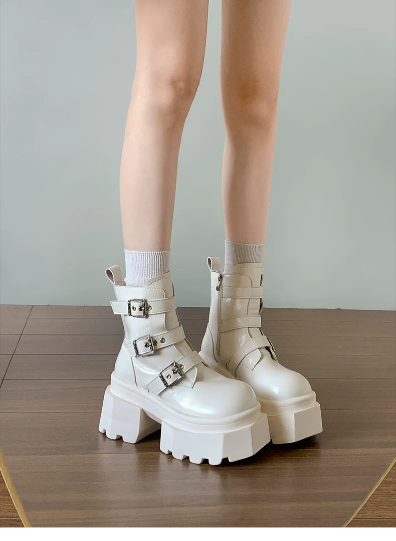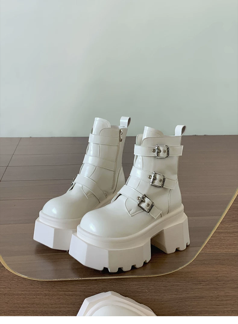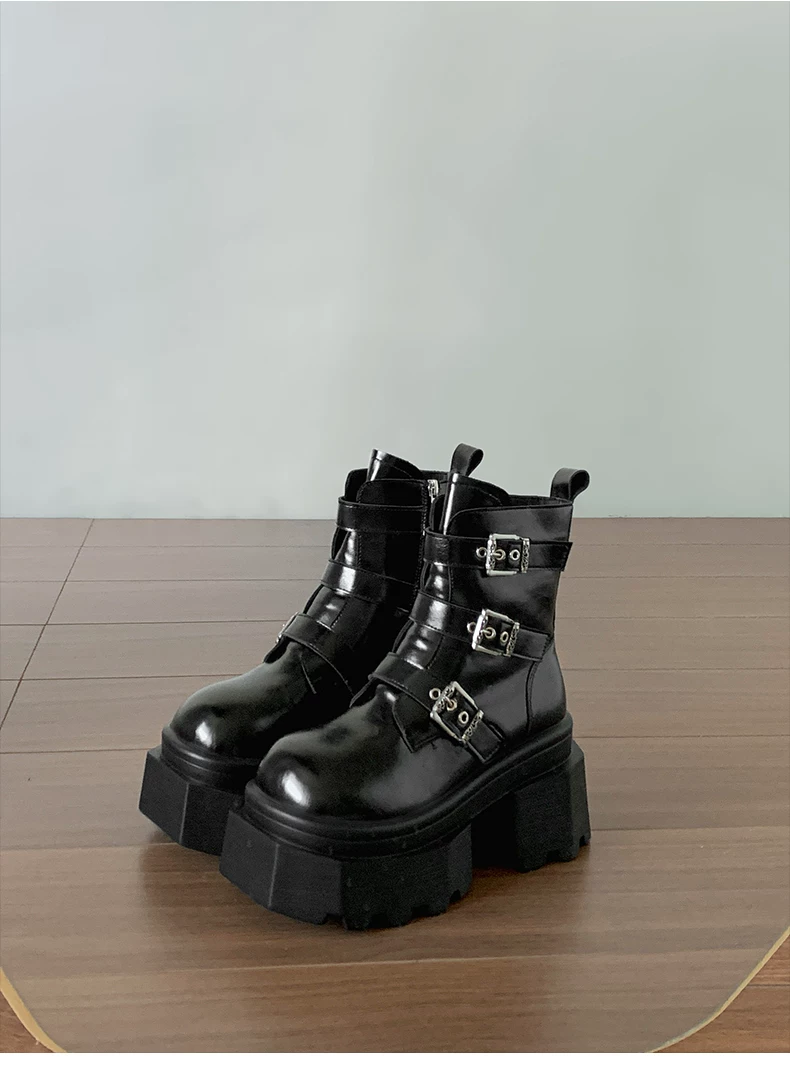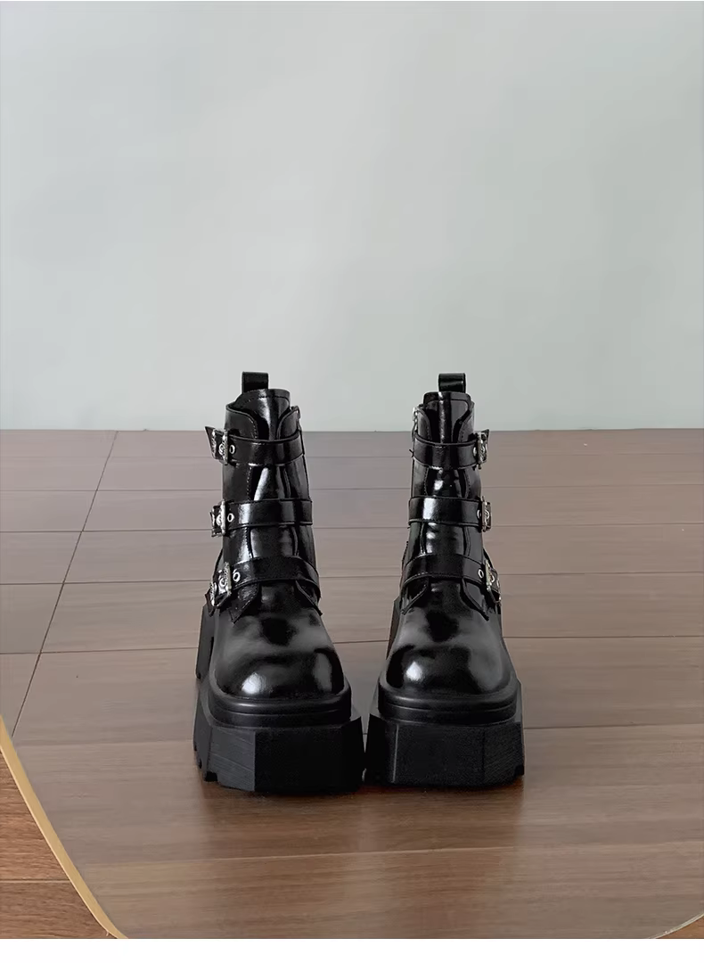 - Giày bốt Martin đế xuồng cao gót kiểu Anh đa năng màu đen dành cho nữ, mẫu mới thu đông 2025, tăng chiều cao, tôn dáng, kiểu retro, cổ ngắn
