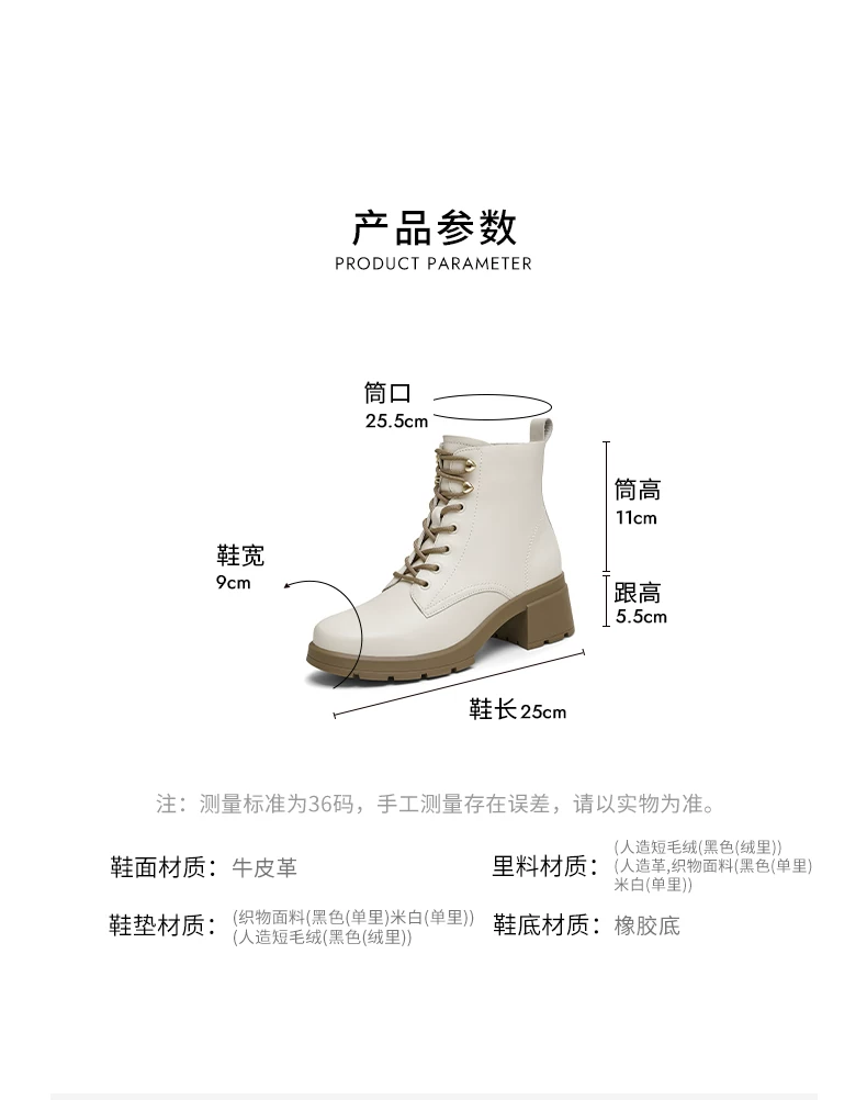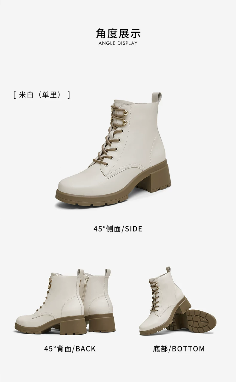 - Giày bốt Martin gót thô kiểu dáng thường ngày TATA dành cho nữ, chất liệu da, đi làm, buộc dây, cổ ngắn, mùa đông 2024 mới 7BU55DD4