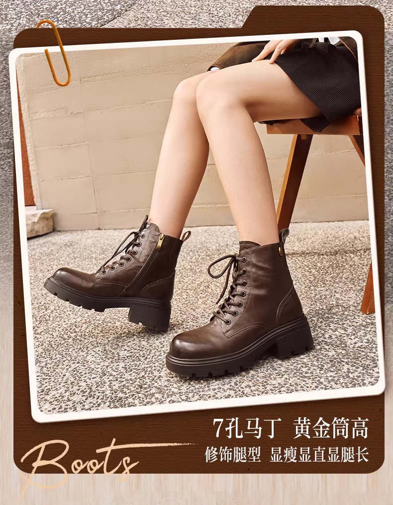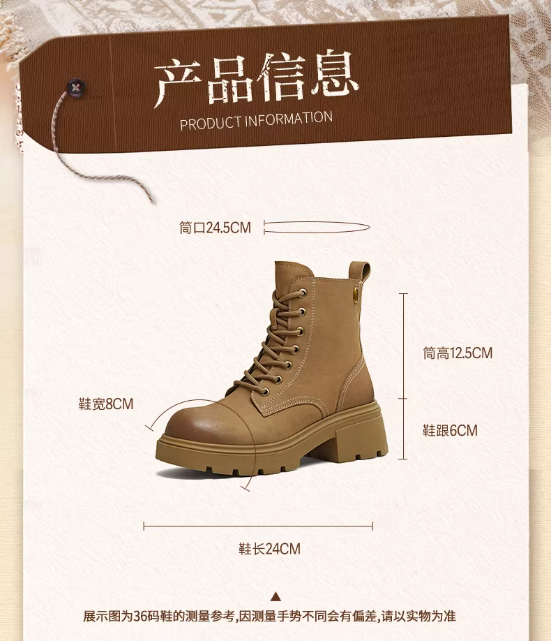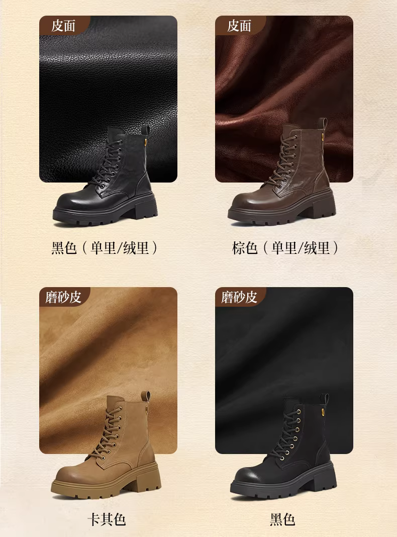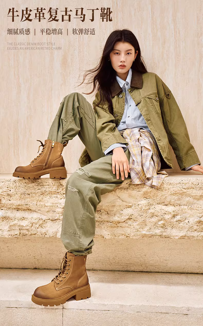 - Giày bốt Martin kiểu Anh có đế dày tăng chiều cao, lót lông cừu, giày bốt màu vàng, giày nữ, bốt ngắn thông thường, bốt da, mẫu mùa đông mới.