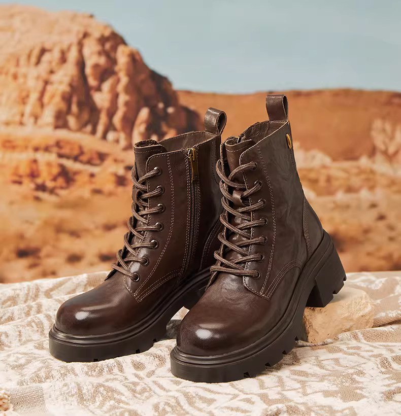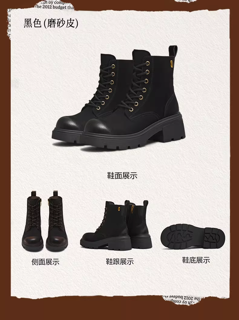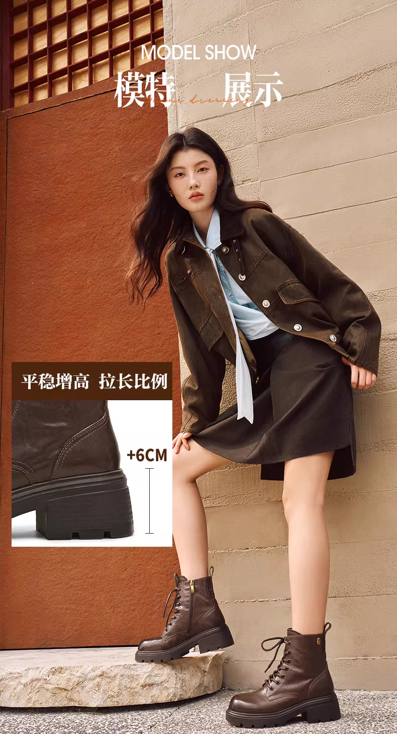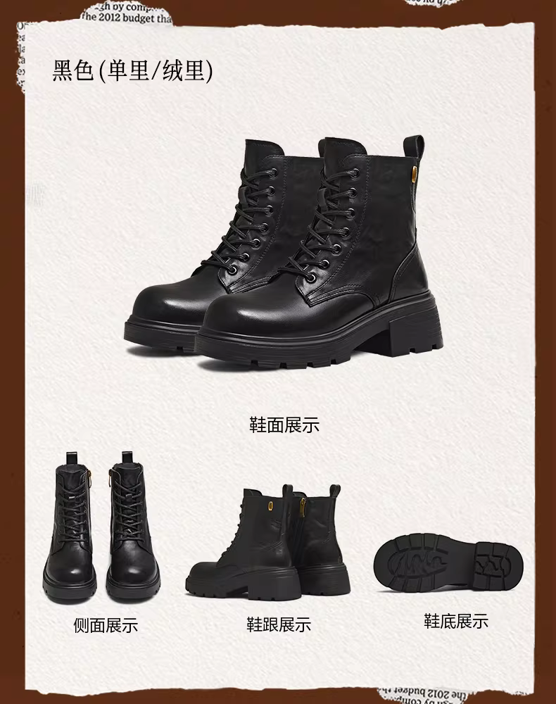 - Giày bốt Martin kiểu Anh có đế dày tăng chiều cao, lót lông cừu, giày bốt màu vàng, giày nữ, bốt ngắn thông thường, bốt da, mẫu mùa đông mới.