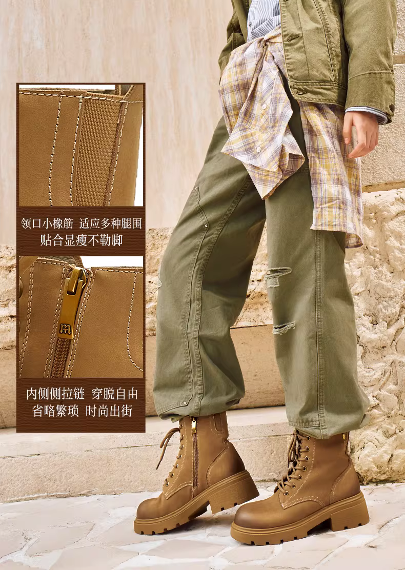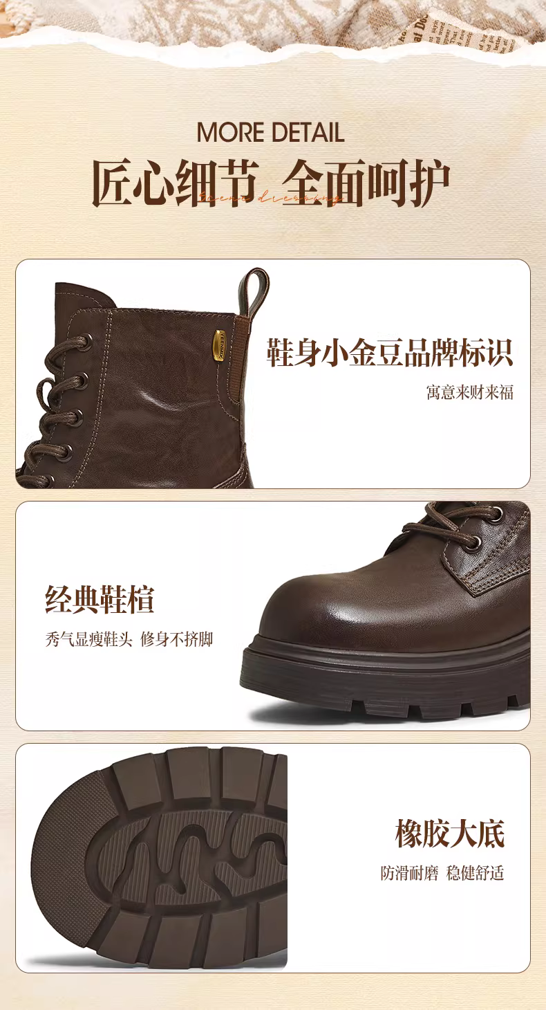 Giày bốt Martin kiểu Anh có đế dày tăng chiều cao, lót lông cừu, giày bốt màu vàng, giày nữ, bốt ngắn thông thường, bốt da, mẫu mùa đông mới.