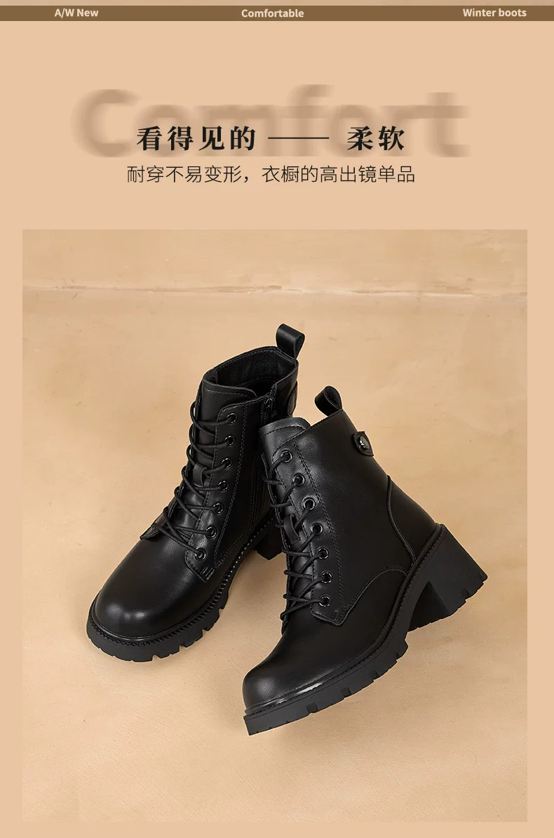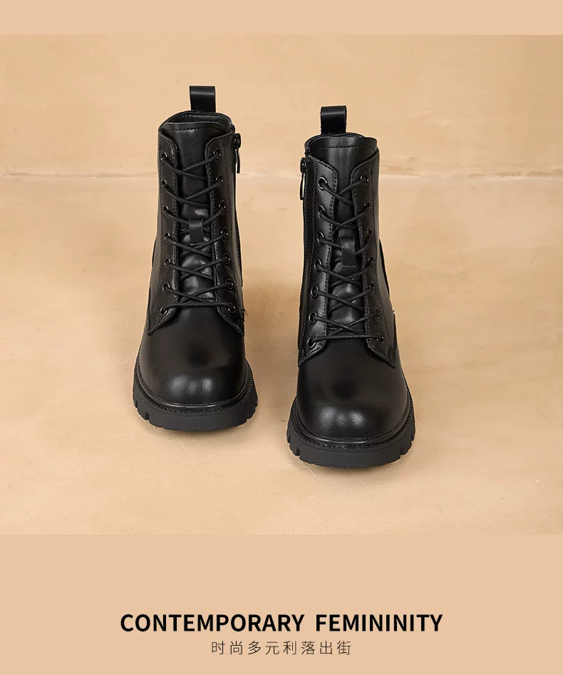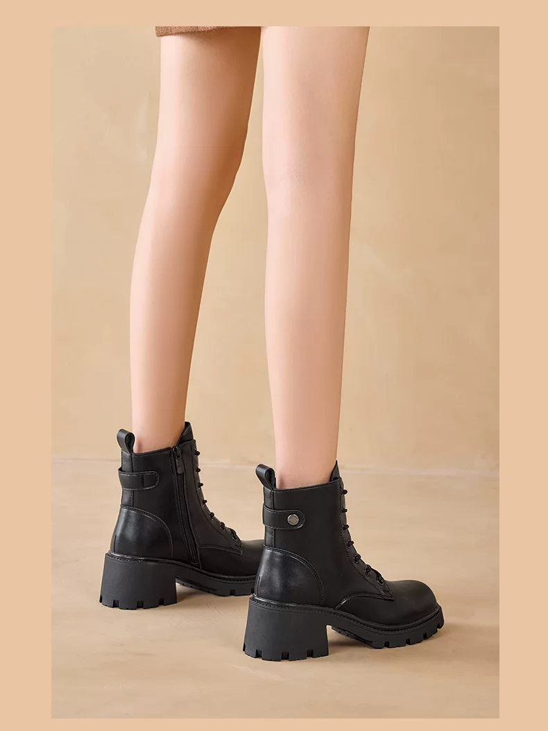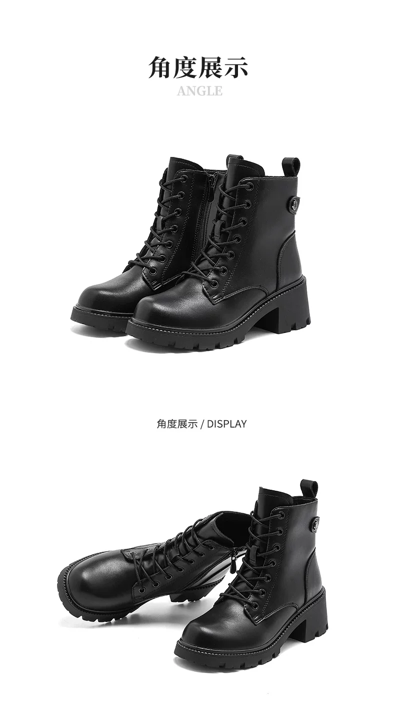 - Giày bốt Martin kiểu Anh Dadong dành cho nữ 2025, giày mùa đông mới, màu đen, đế dày, gót chunky, cổ ngắn, lót lông cừu