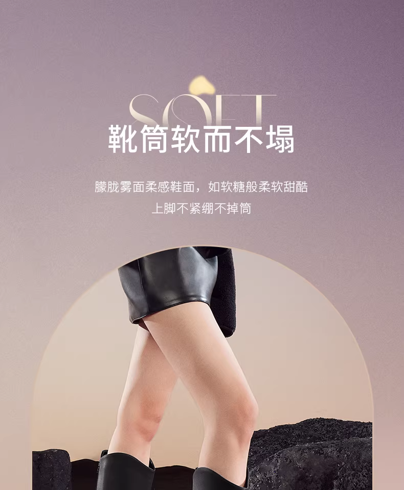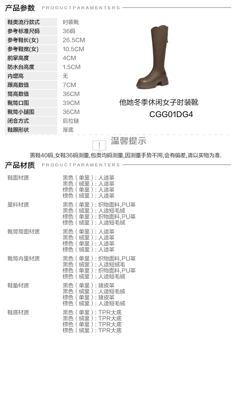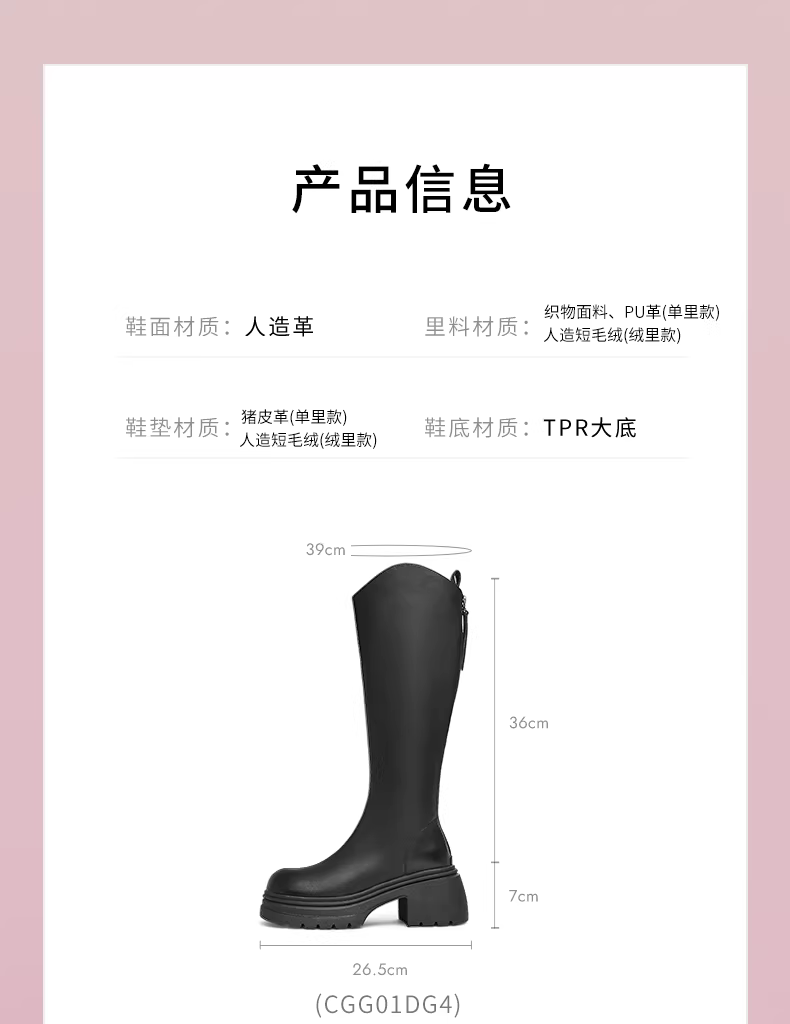 - Giày bốt mềm TATA 2025 Giày bốt đế dày mới Giày bốt nữ Giày bốt hiệp sĩ Giày bốt thời trang mùa đông CGG01DG5