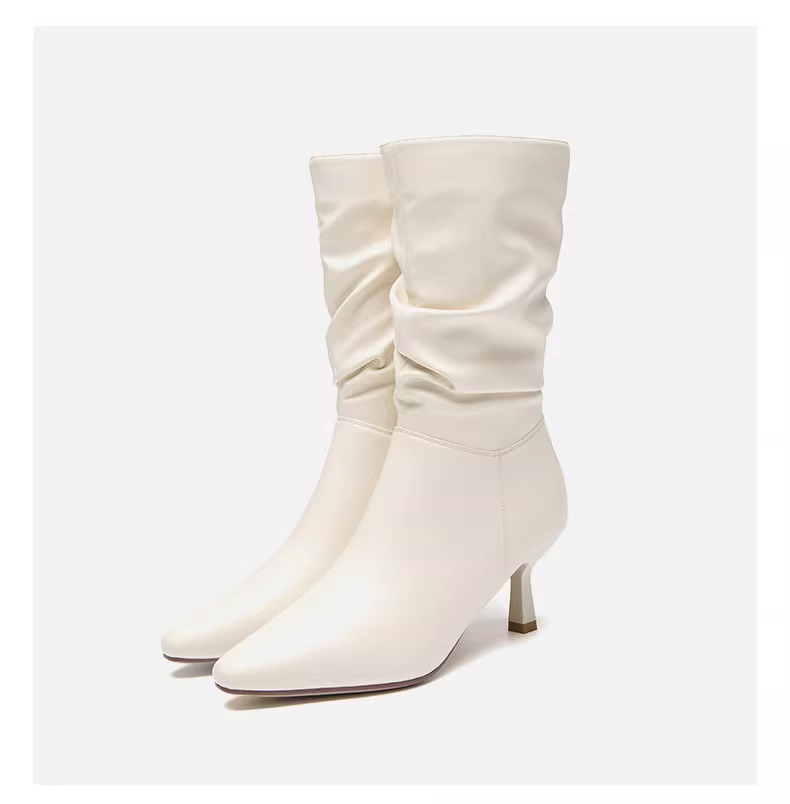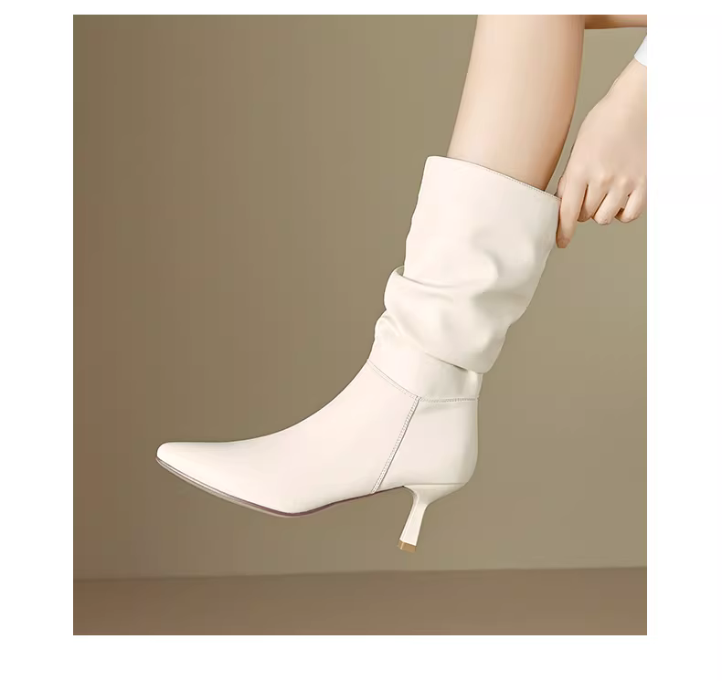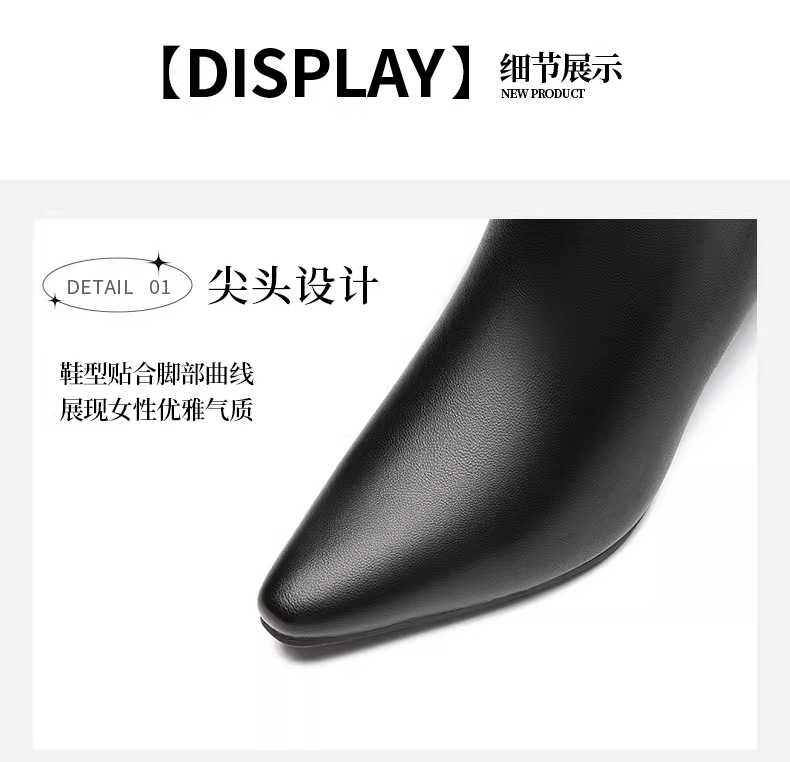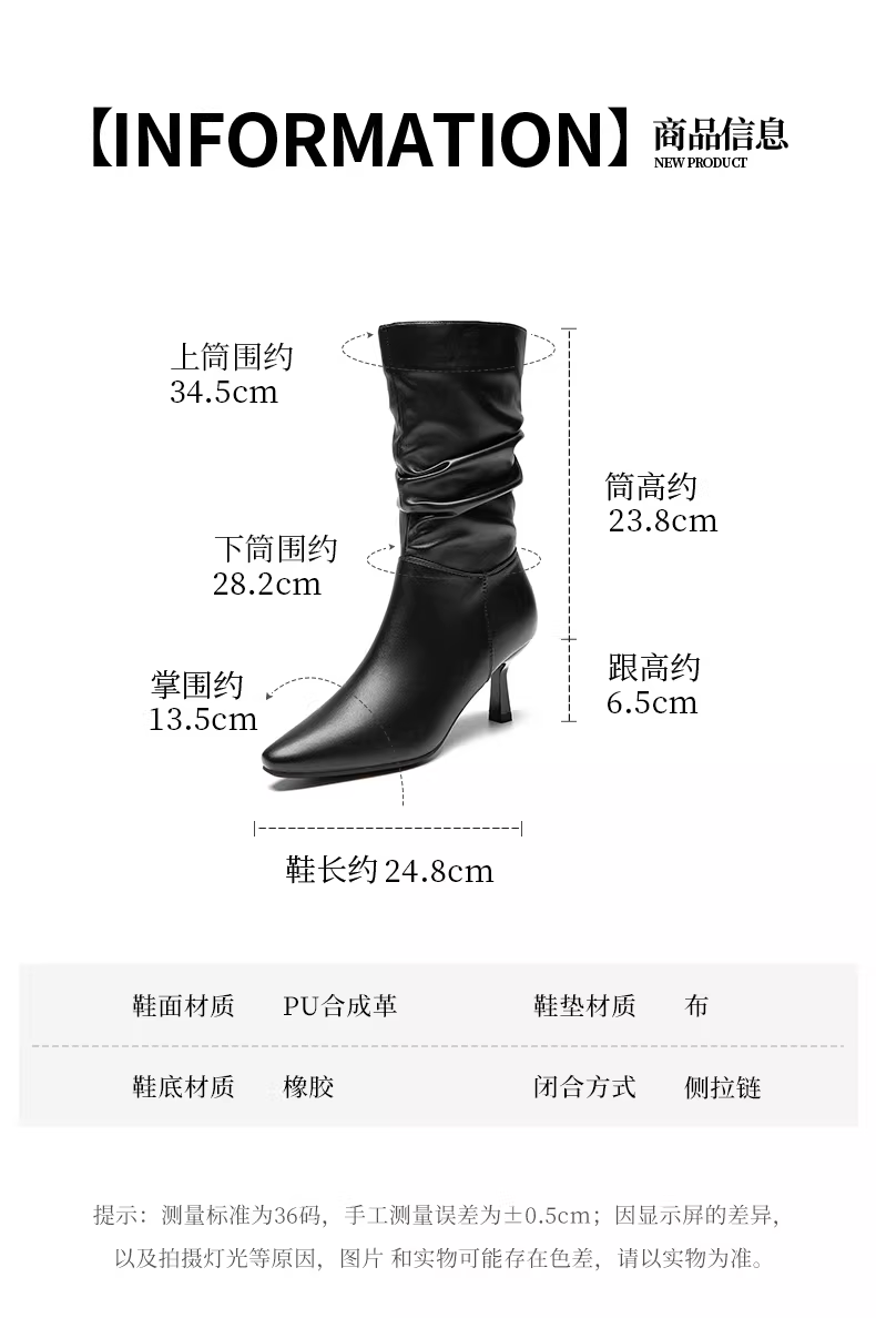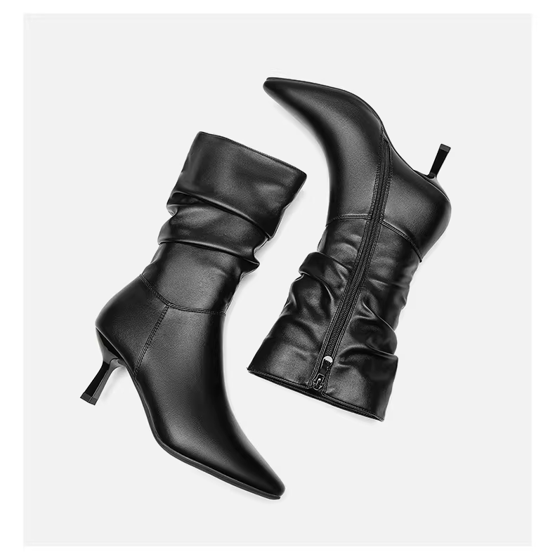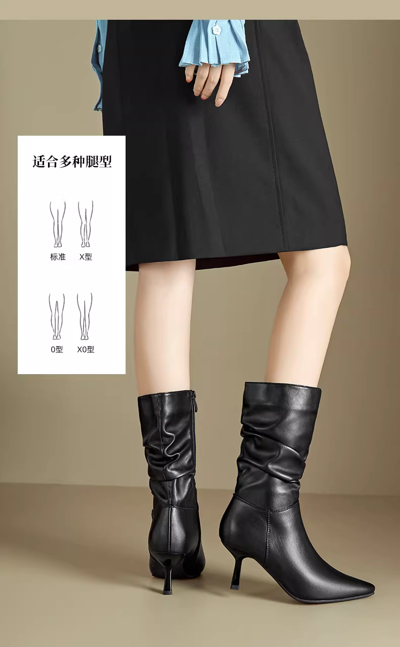 - Giày bốt mũi nhọn Dadong dành cho nữ 2025, mẫu mới thu đông, màu đen, đa năng, kiểu dáng ôm sát, kiểu xếp tầng, gót nhọn, cao đến giữa bắp chân.