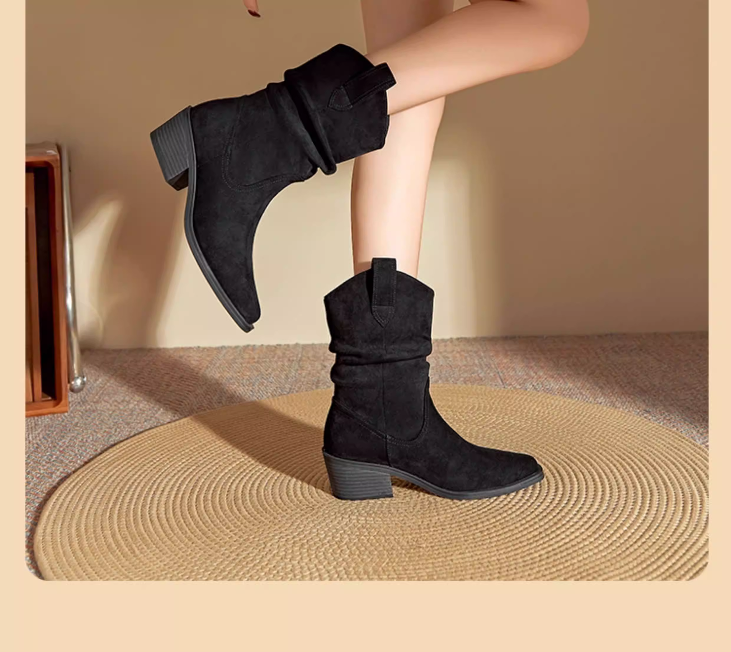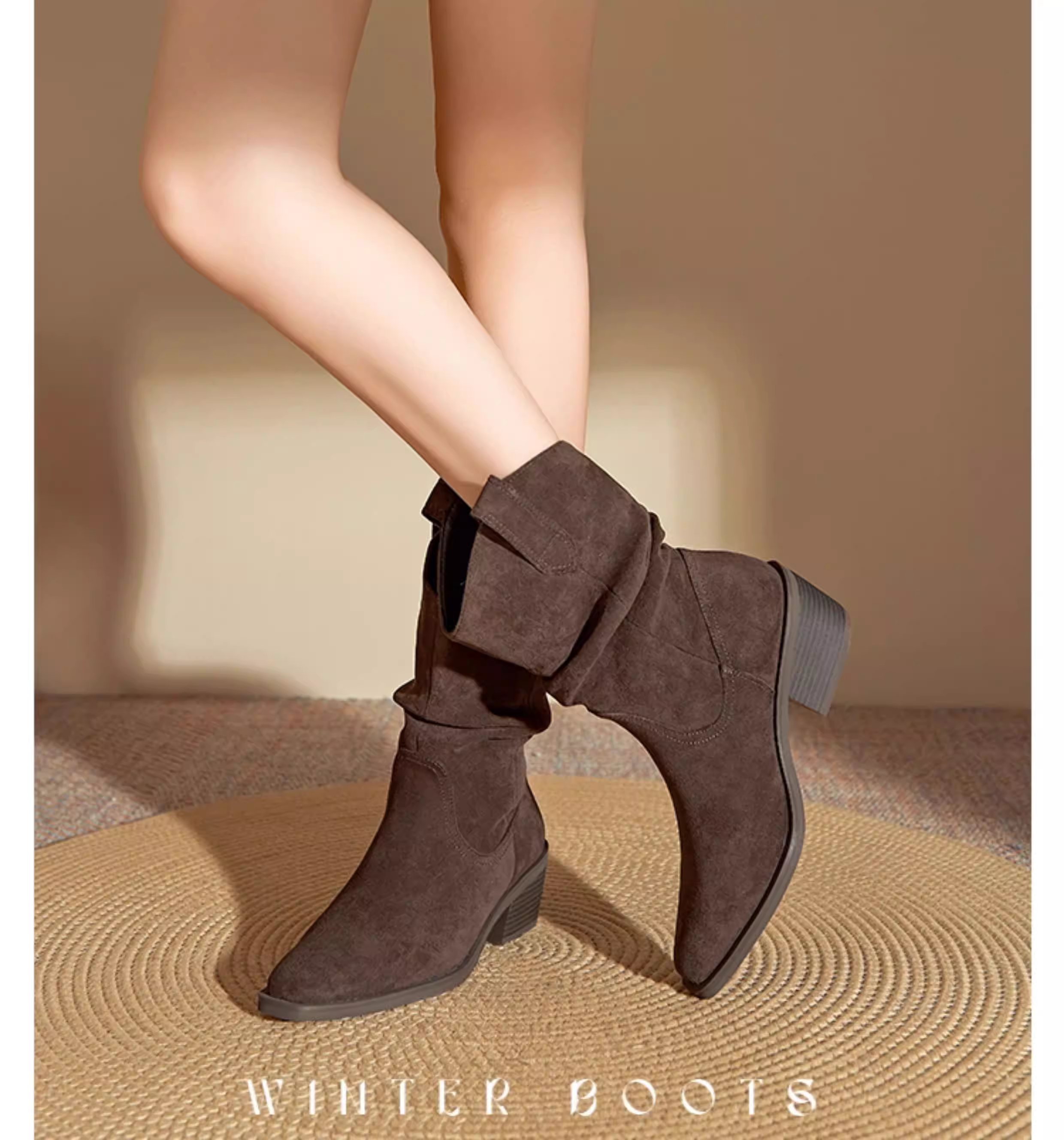- Giày bốt mũi nhọn Dadong dành cho nữ, mẫu mới thu đông 2025, kiểu dáng ôm sát, gót cao, xếp ly, kiểu cổ điển, phong cách miền Tây.