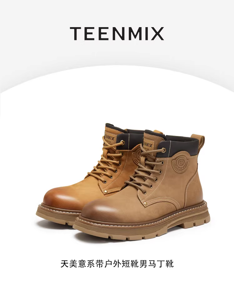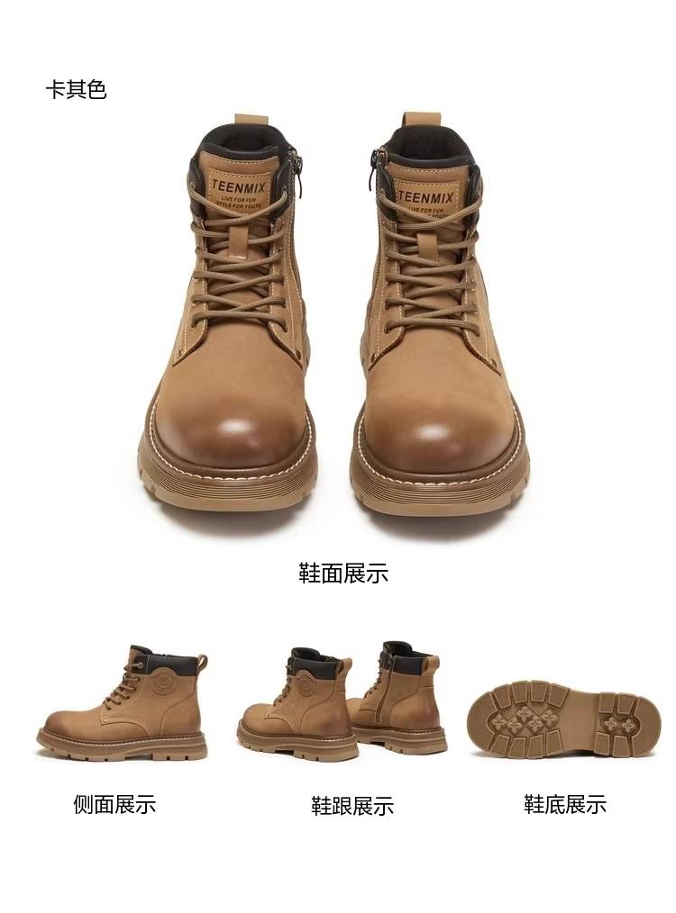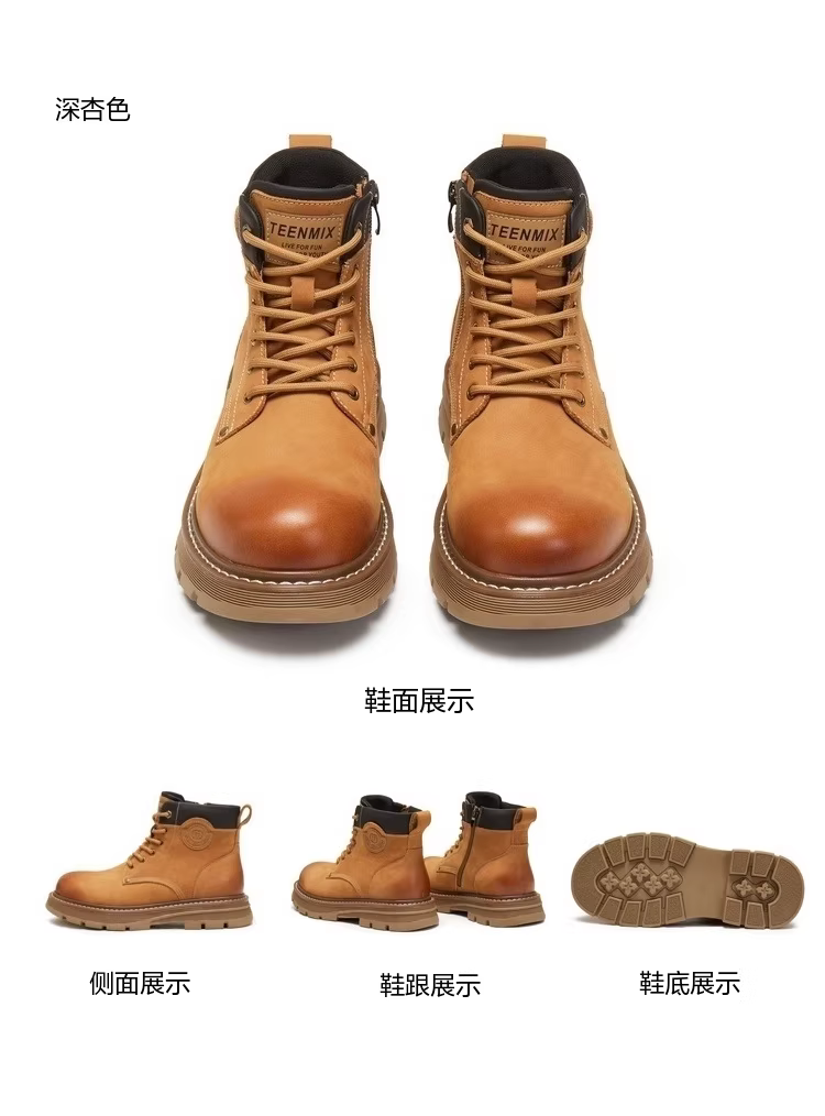 Giày bốt nam kiểu dáng mới mùa đông 2025 Tianmeiyi, cùng kiểu dáng với trung tâm thương mại, màu vàng, buộc dây, đi ngoài trời, kiểu Martin, mã WCL01DD5