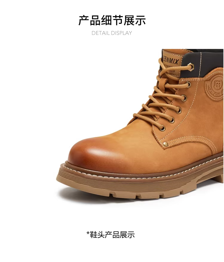 - Giày bốt nam kiểu dáng mới mùa đông 2025 Tianmeiyi, cùng kiểu dáng với trung tâm thương mại, màu vàng, buộc dây, đi ngoài trời, kiểu Martin, mã WCL01DD5