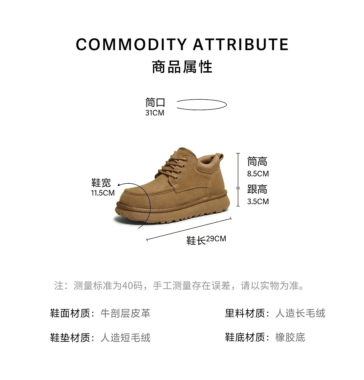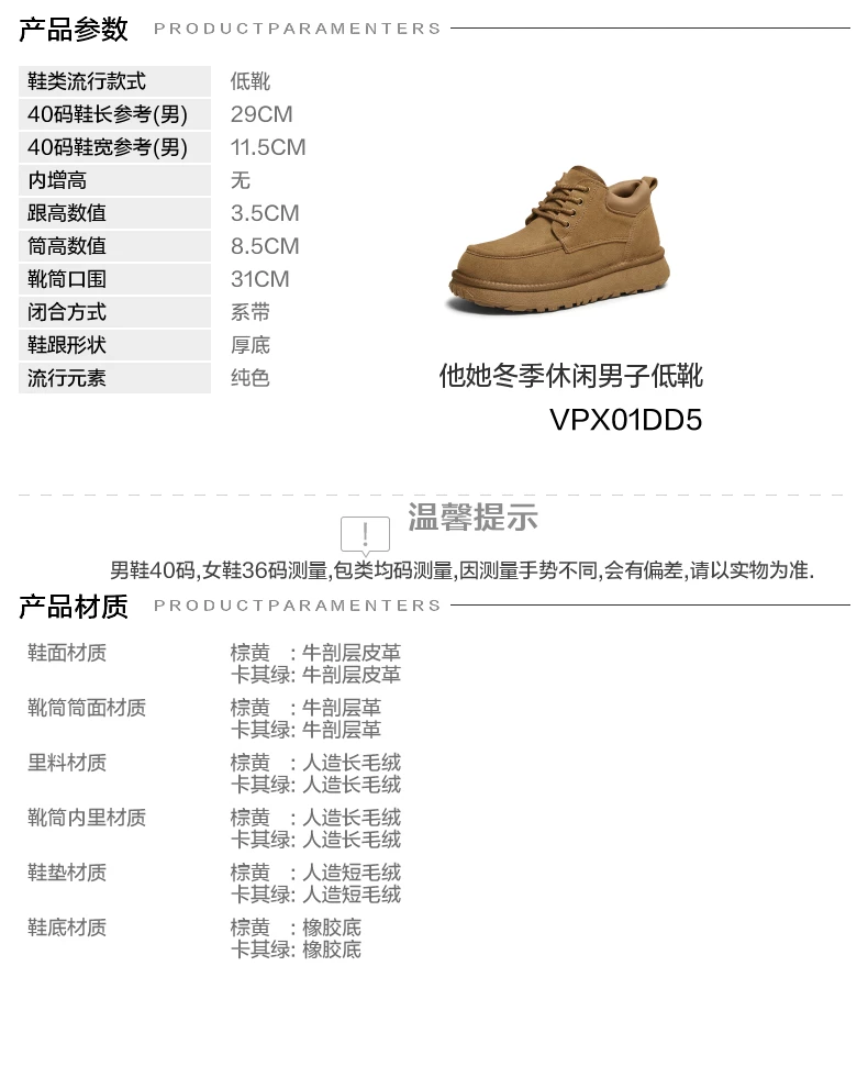 - Giày bốt nam TATA mùa đông 2025 đa năng, chống lạnh, lót lông cừu, bốt cotton chống lạnh VPX01DD5