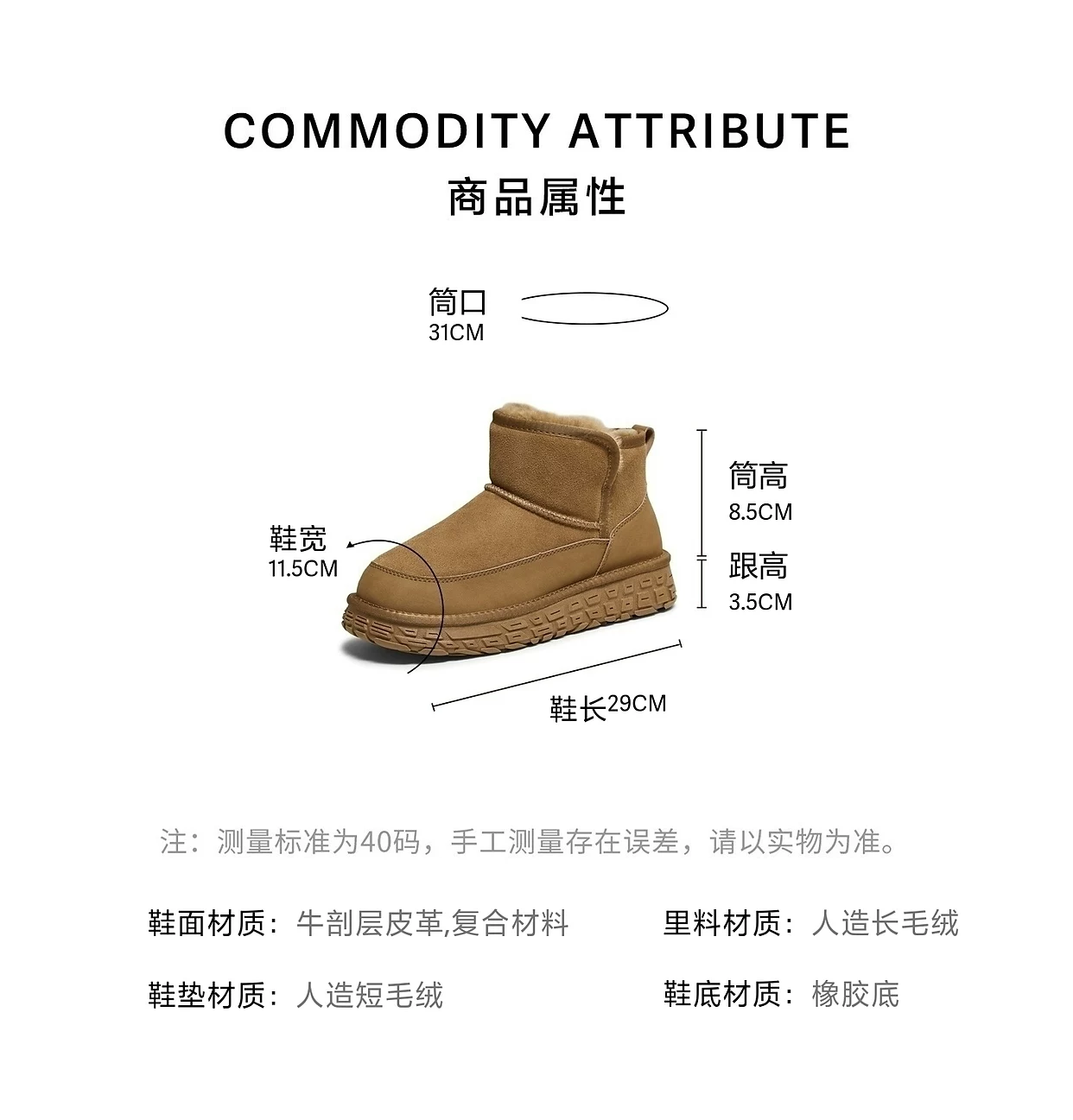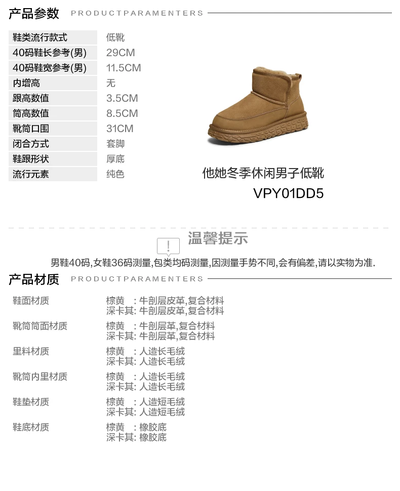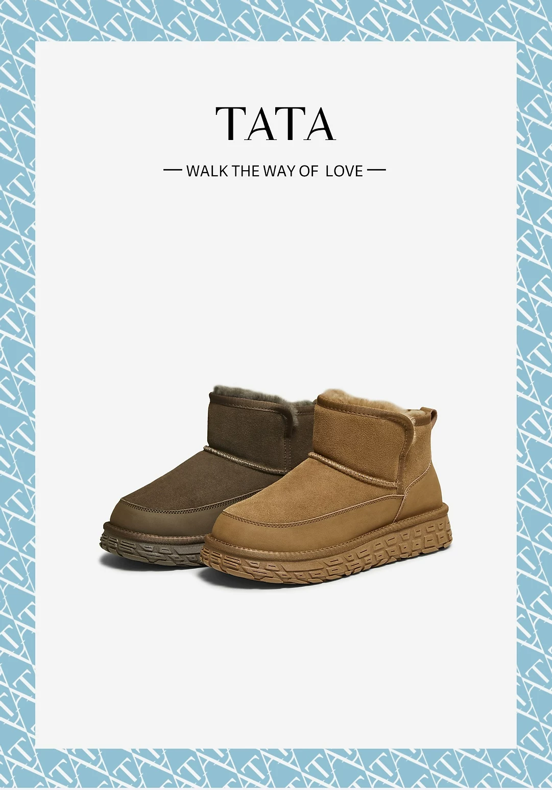 - Giày bốt nam TATA mùa đông 2025 kiểu mới chống tuyết, chống lạnh, lót lông cừu VPY01DD5