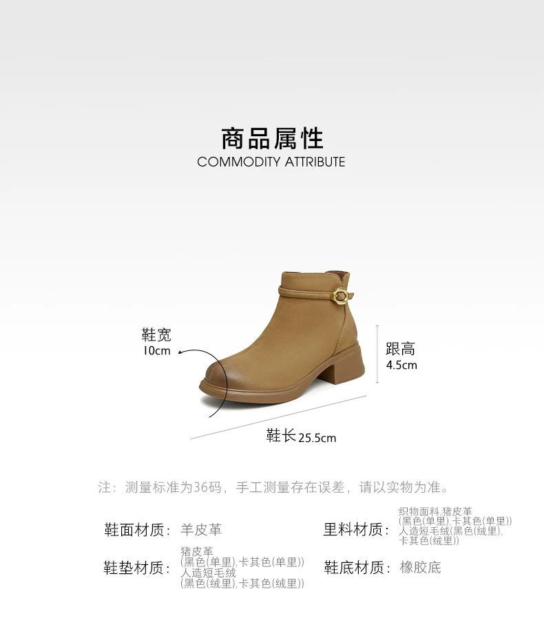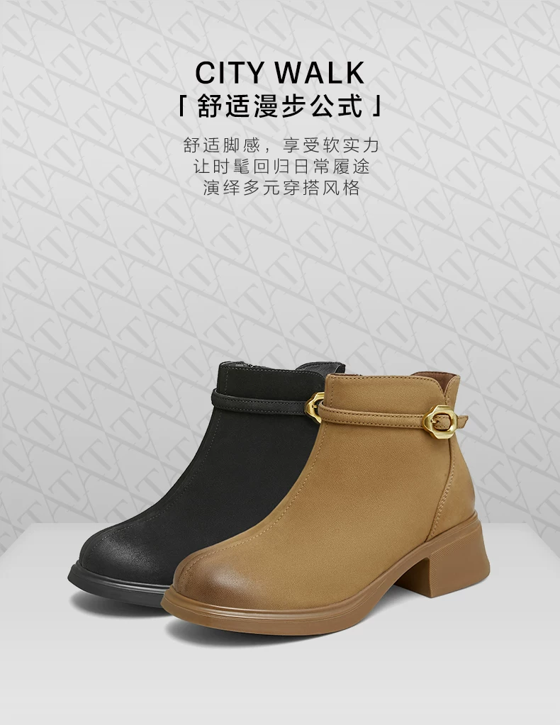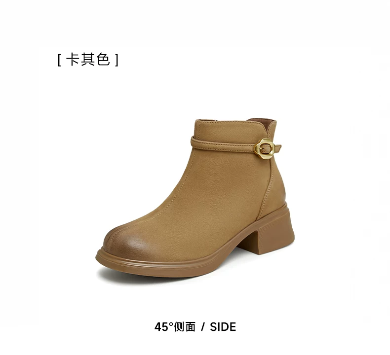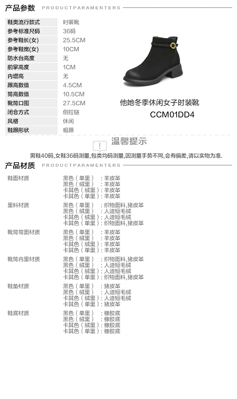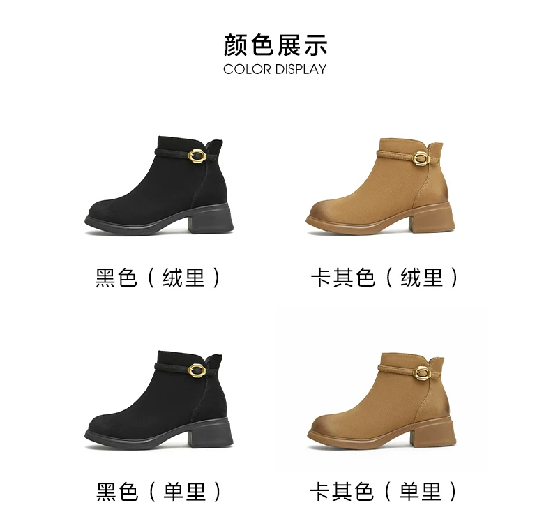 - Giày bốt ngắn da cừu gót dày của Tata dành cho nữ, giày bốt thời trang đi làm lót lông cừu, giày mùa đông mới CCM01DD4