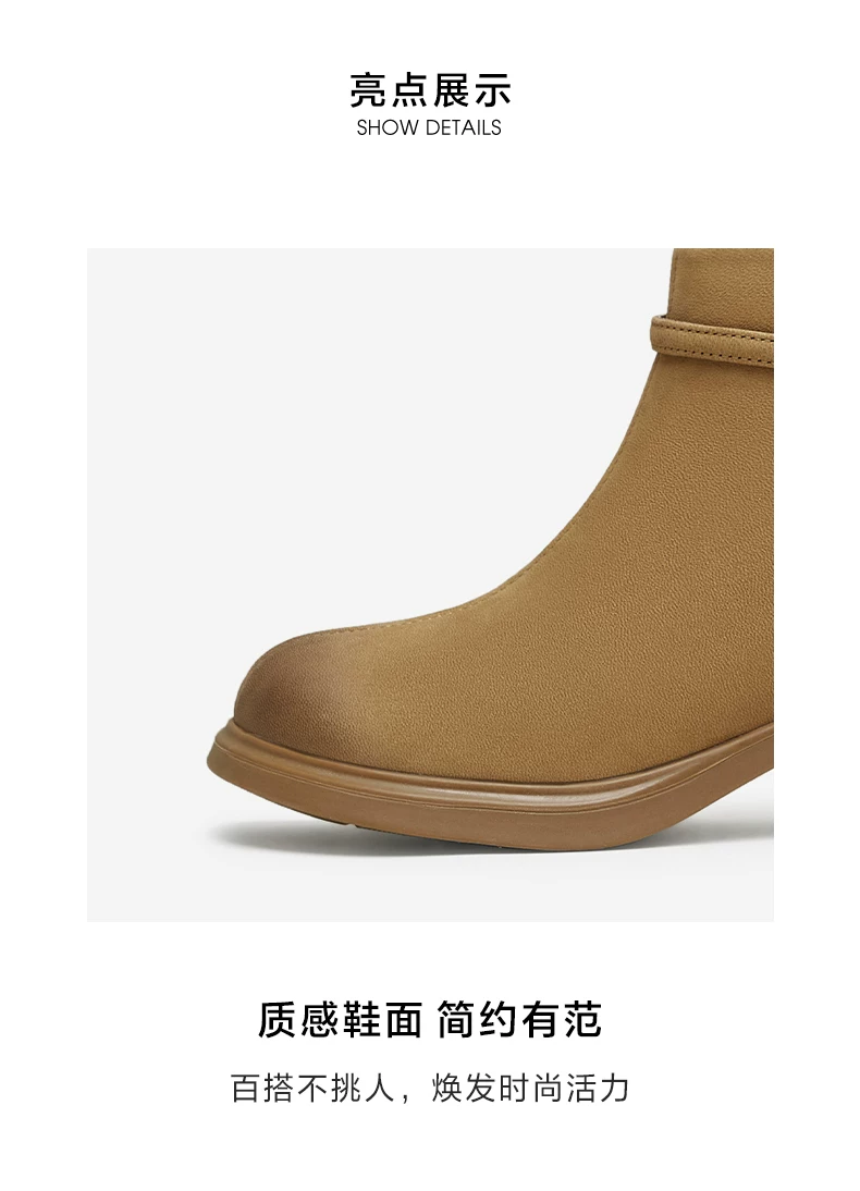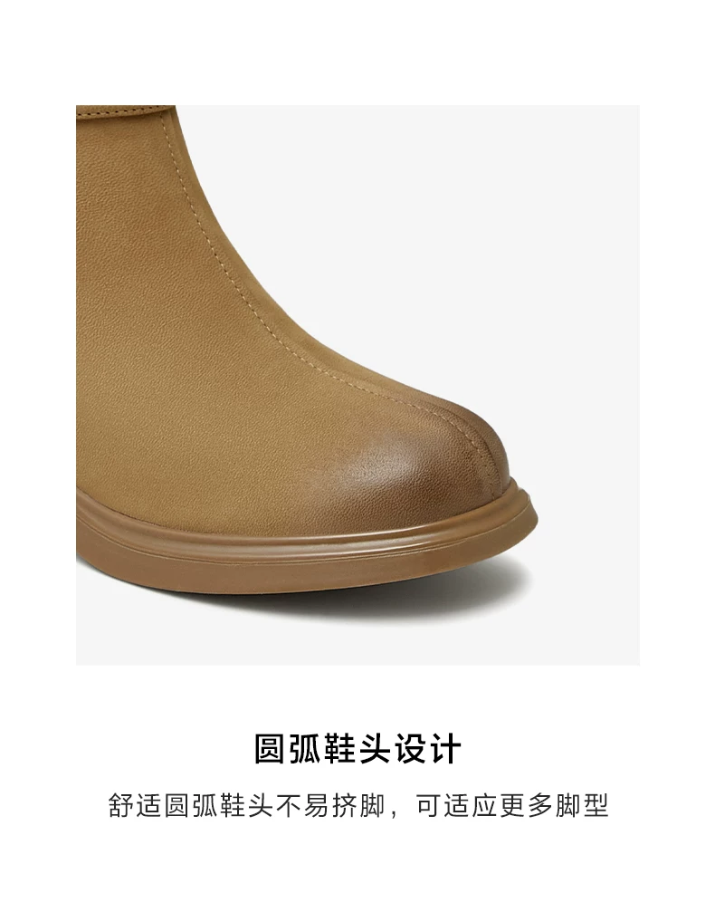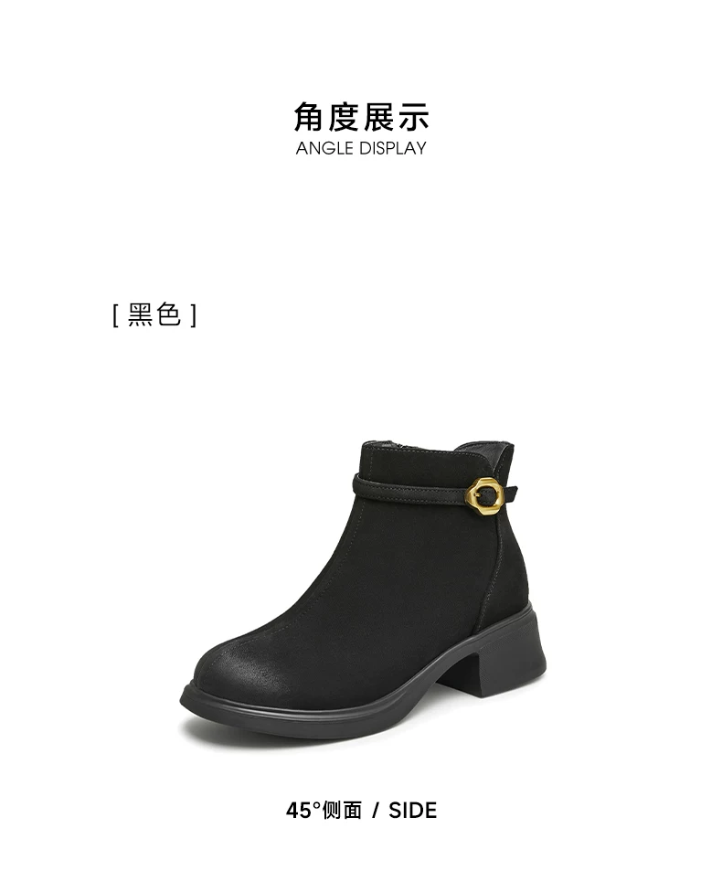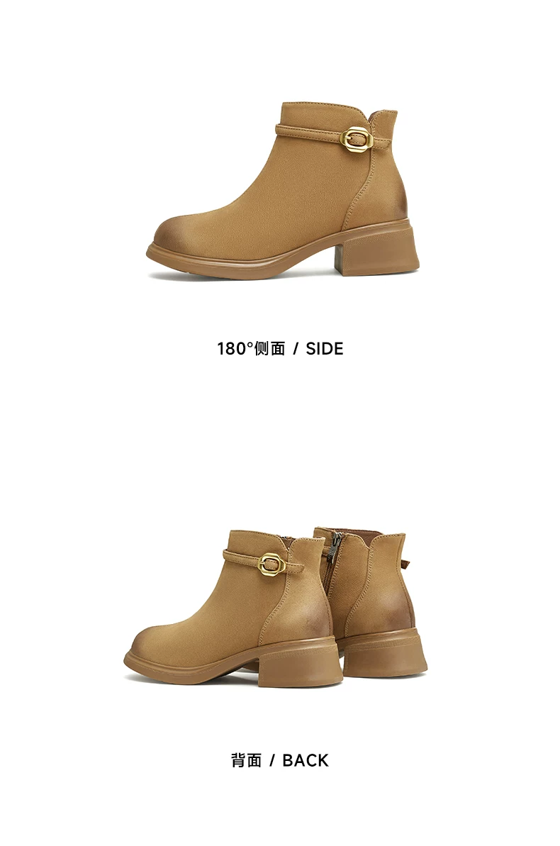 - Giày bốt ngắn da cừu gót dày của Tata dành cho nữ, giày bốt thời trang đi làm lót lông cừu, giày mùa đông mới CCM01DD4