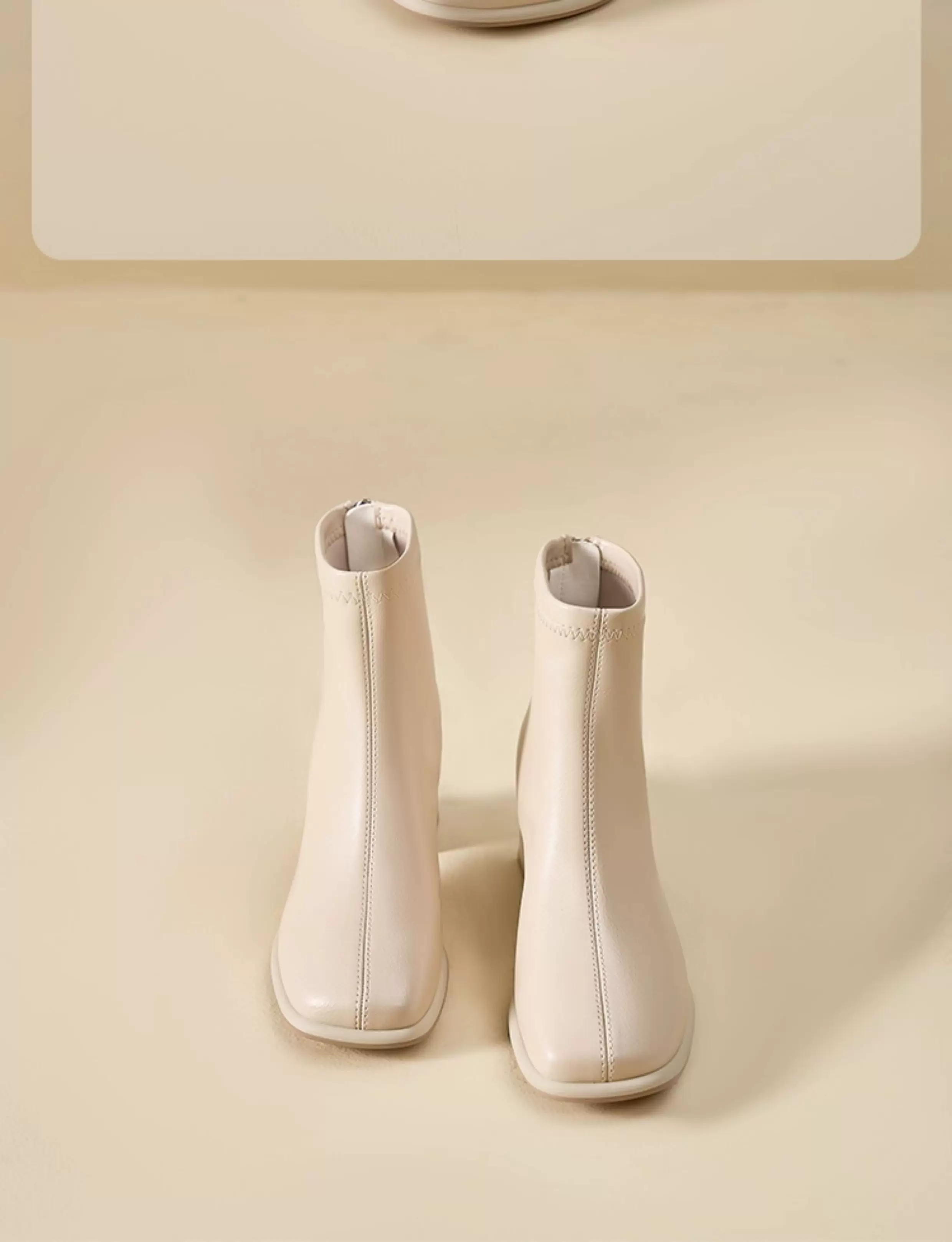 Giày bốt ngắn Dadong Chelsea nữ 2025 mới thu đông, gót dày cao, màu trắng, lót lông, kiểu Pháp, cổ ngắn