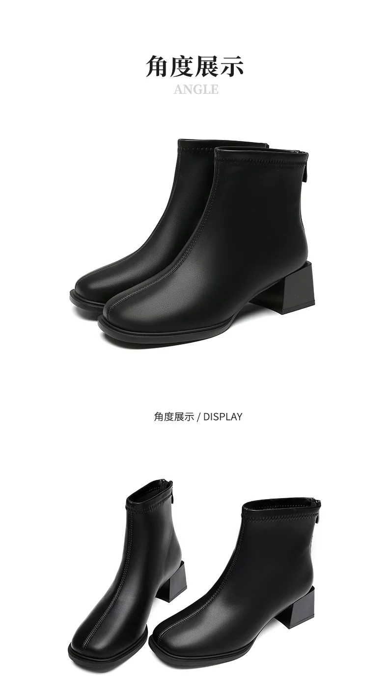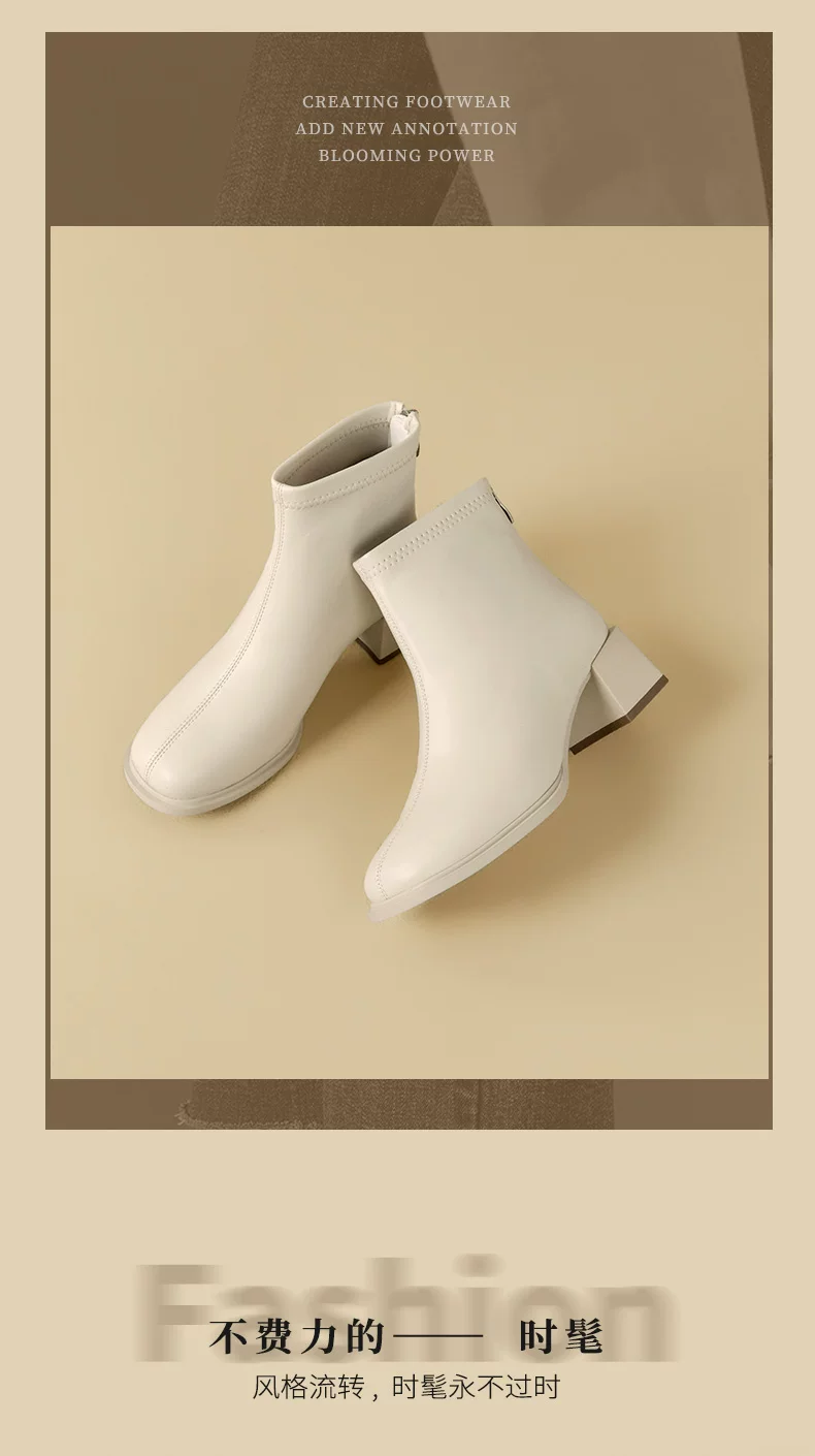 Giày bốt ngắn lót lông trắng Dadong dành cho nữ 2025, kiểu mới thu đông, gót dày, cao gót, kiểu Chelsea, thời trang, ôm dáng.