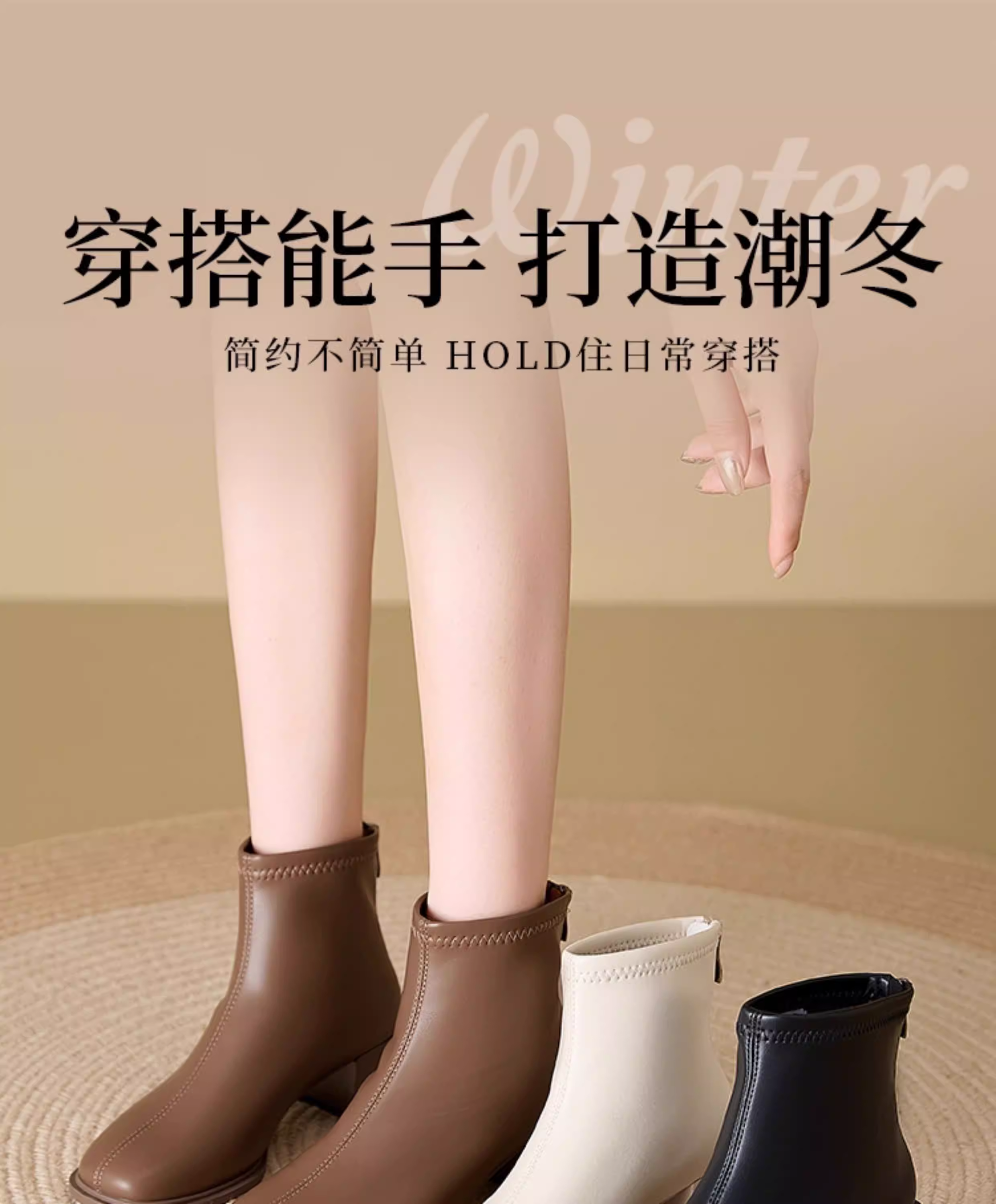 Giày bốt ngắn màu trắng Dadong dành cho nữ 2025, mẫu mới thu đông, gót dày, cao gót, có lớp nhung, có thể phối với áo khoác, kiểu Chelsea.