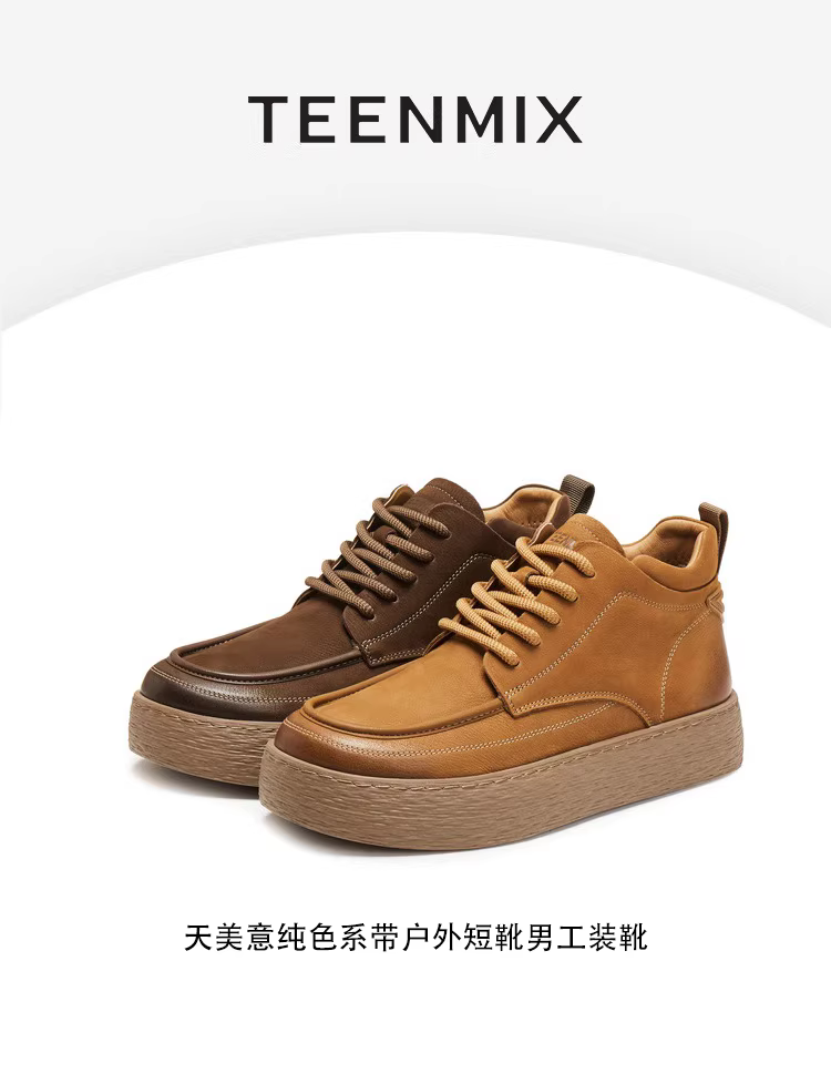 Giày bốt ngắn nam đi làm mùa đông kiểu mới 2025 Tianmeiyi, cùng kiểu dáng với trung tâm thương mại, màu trơn, dây buộc, đi ngoài trời 3XZ01DD5