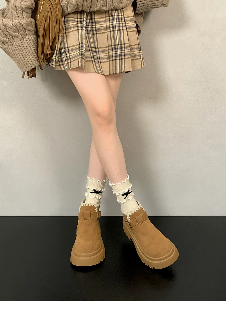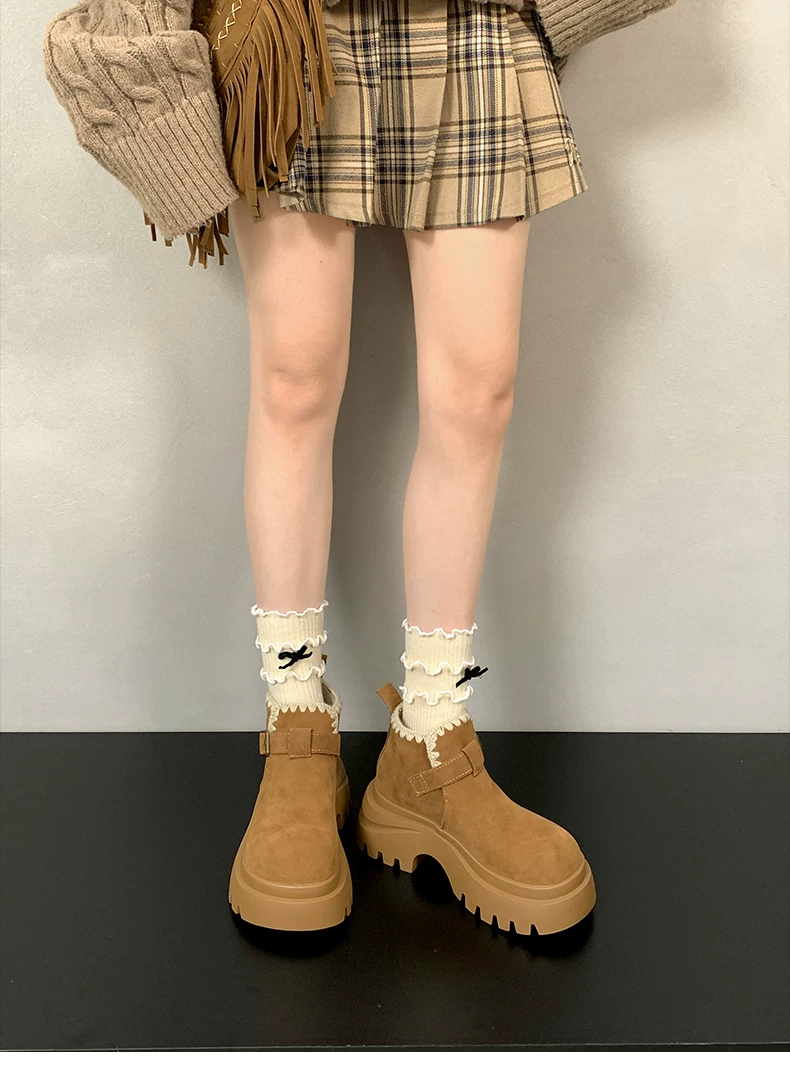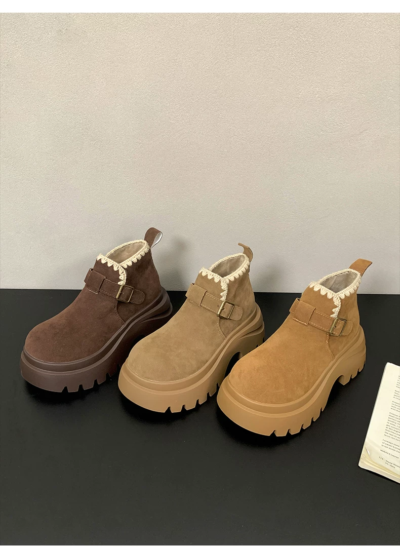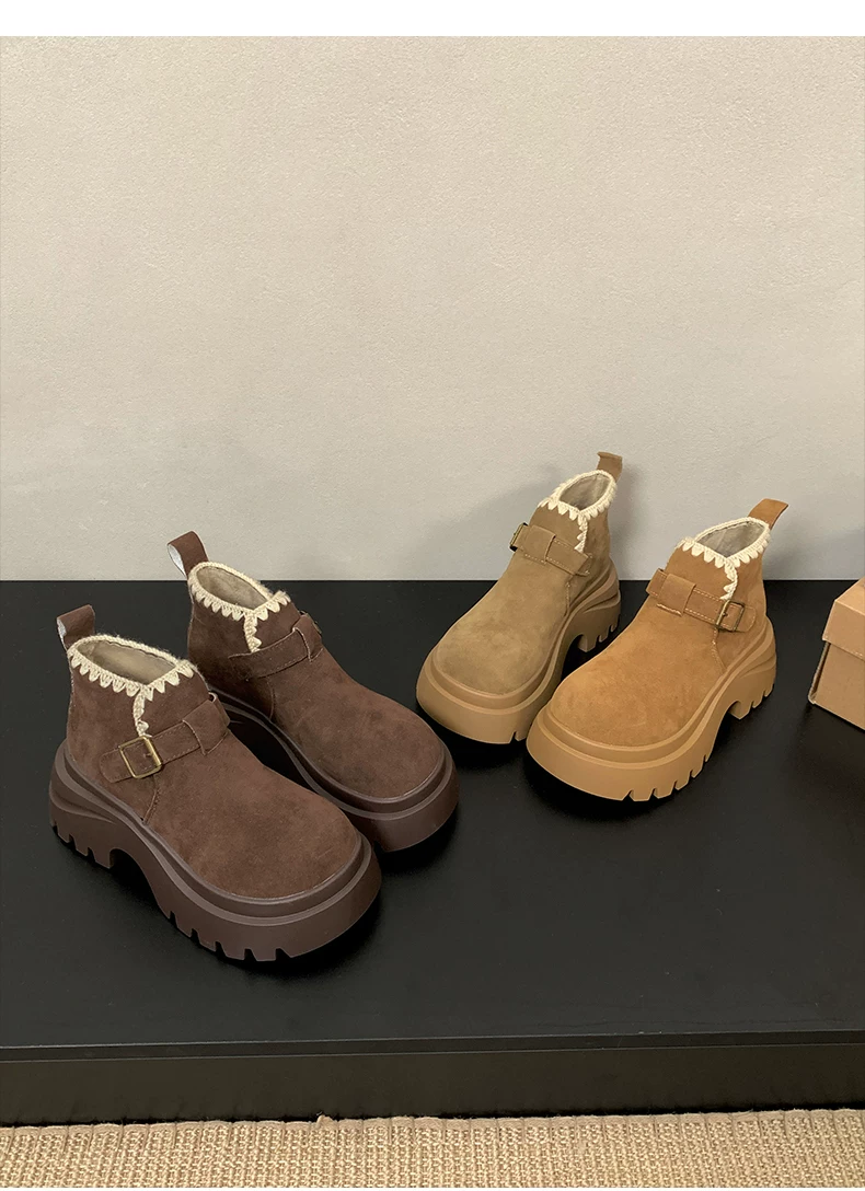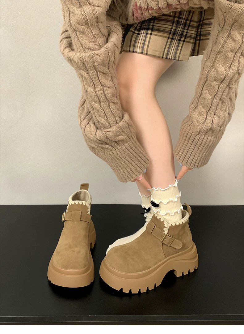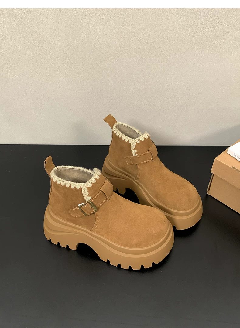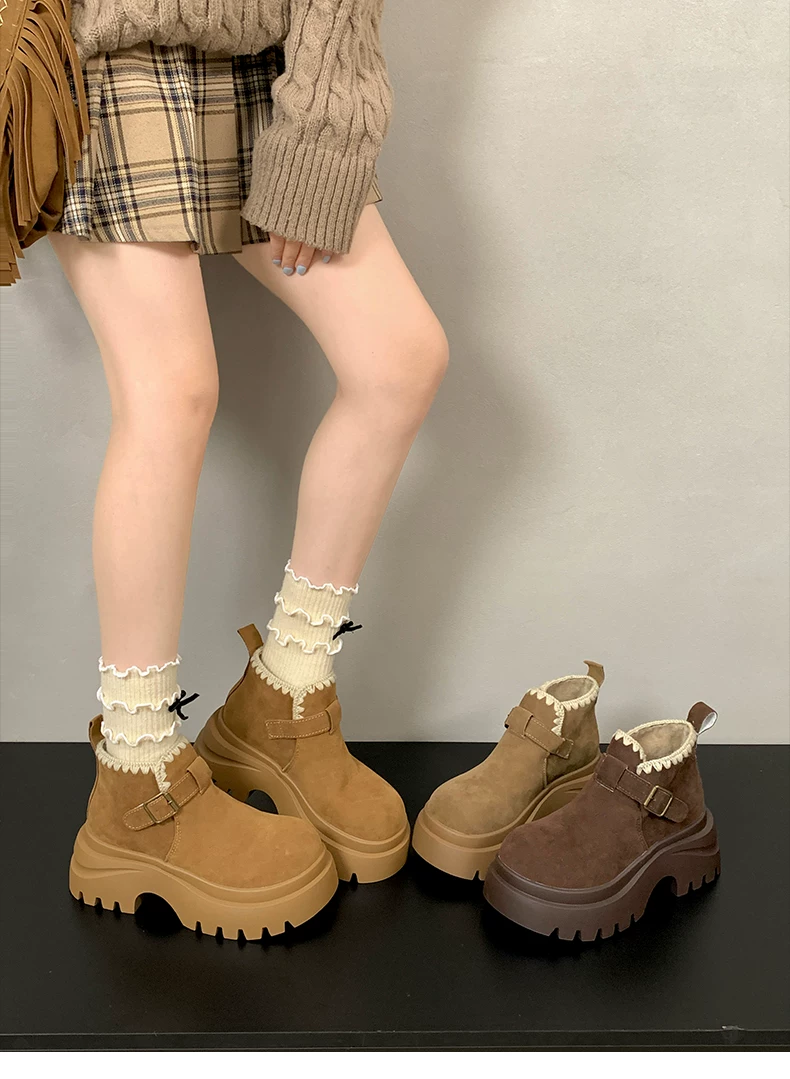 - Giày bốt nhung lót dày đế cao kiểu retro Maillard dành cho nữ, mẫu mới thu đông 2025, tăng chiều cao, kiểu Birkenstock, dành cho người nhỏ nhắn
