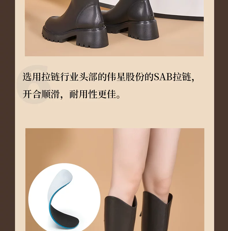 Giày bốt nữ Dadong Maillard 2025 mới mùa thu đông, đế dày, gót vuông, kiểu dáng cao cổ, rất thời trang.