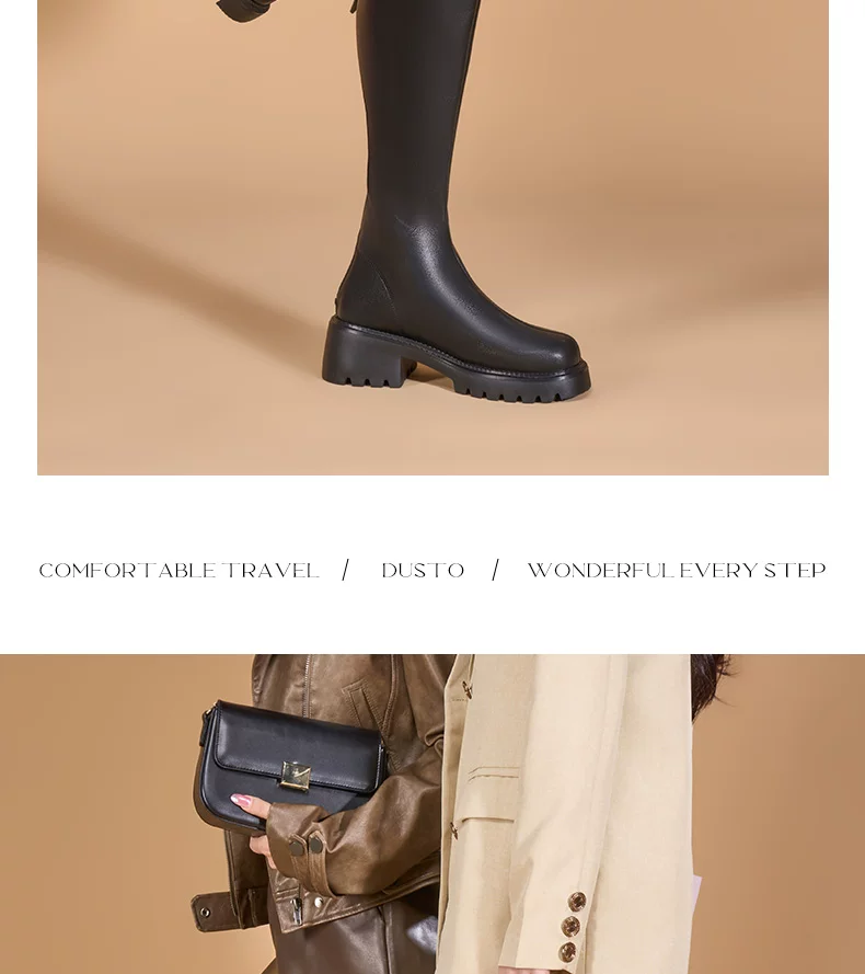 - Giày bốt nữ Dadong Maillard 2025 mới mùa thu đông, đế dày, gót vuông, kiểu dáng cao cổ, rất thời trang.