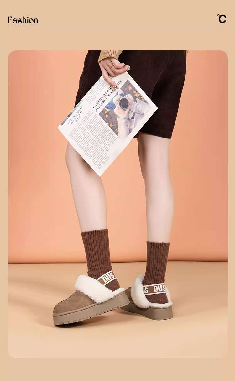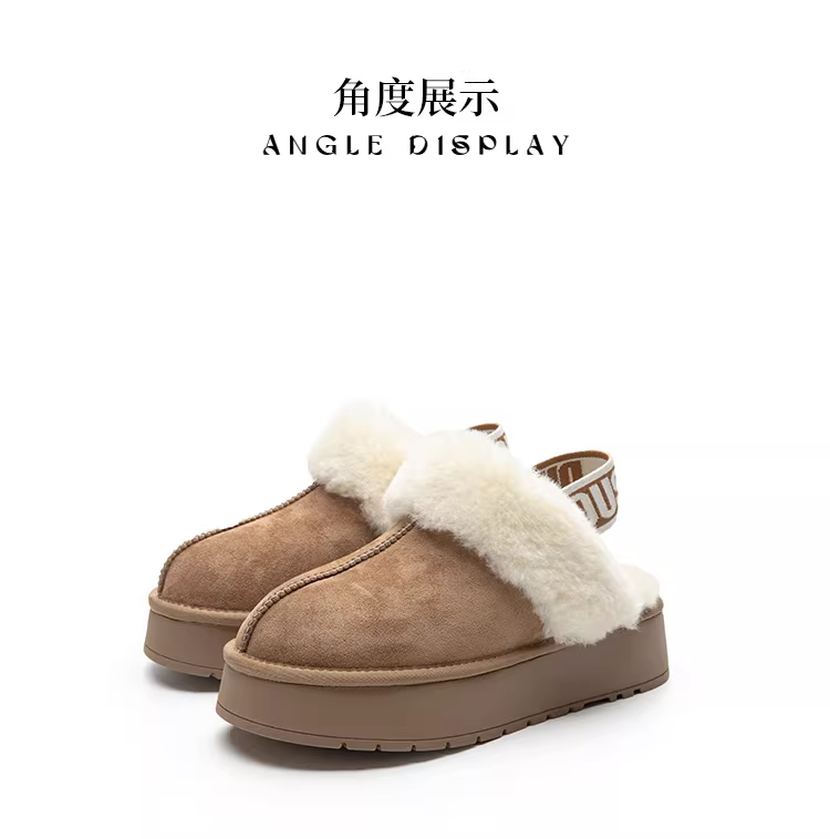 - Giày bốt nữ đế dày mùa đông 2025, giày lông ấm áp, mũi kín, kiểu nửa dép, dành cho nữ, đi ngoài trời mùa thu đông, giày bông