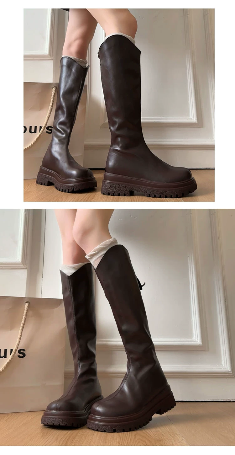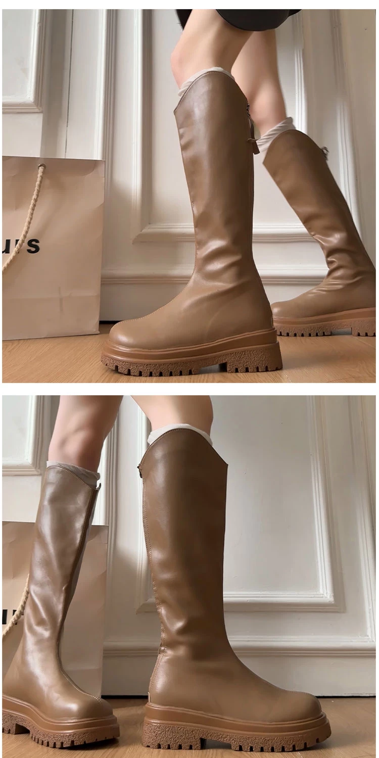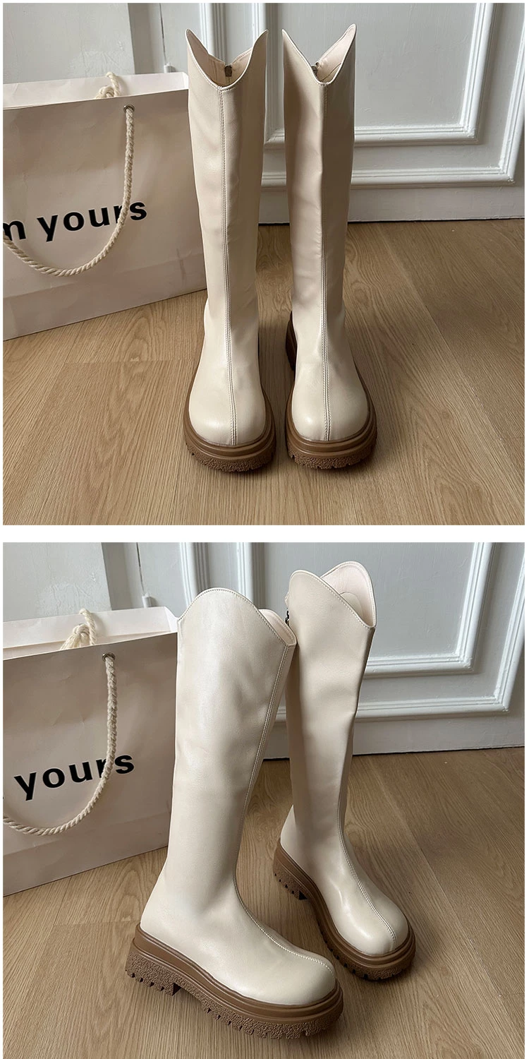 • Giày bốt nữ đế dày phong cách retro đa năng màu trắng kiểu phương Tây, bốt cao cổ mùa thu mới 2025, giúp thon gọn và tăng chiều cao, kiểu bốt hiệp sĩ