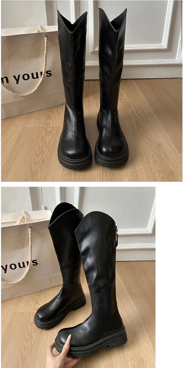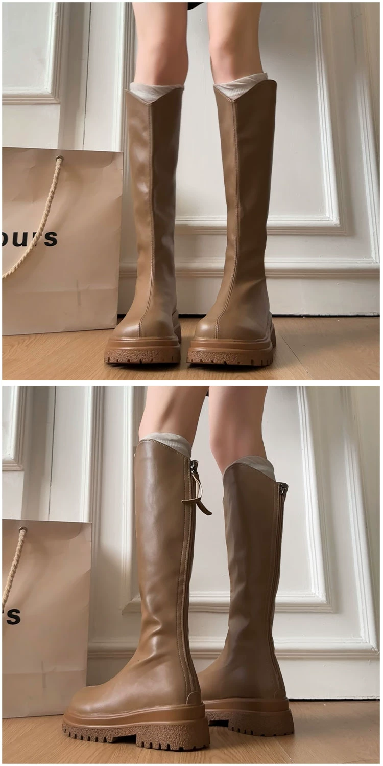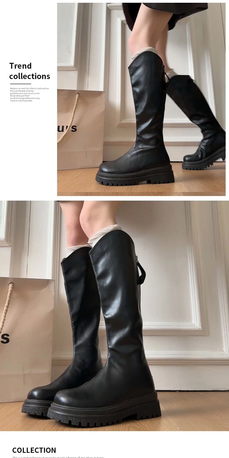 • Giày bốt nữ đế dày phong cách retro đa năng màu trắng kiểu phương Tây, bốt cao cổ mùa thu mới 2025, giúp thon gọn và tăng chiều cao, kiểu bốt hiệp sĩ