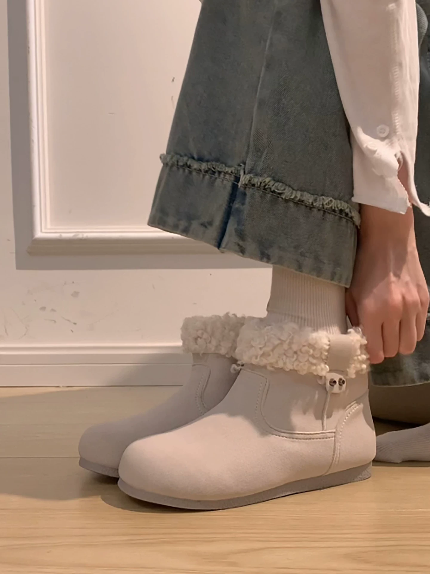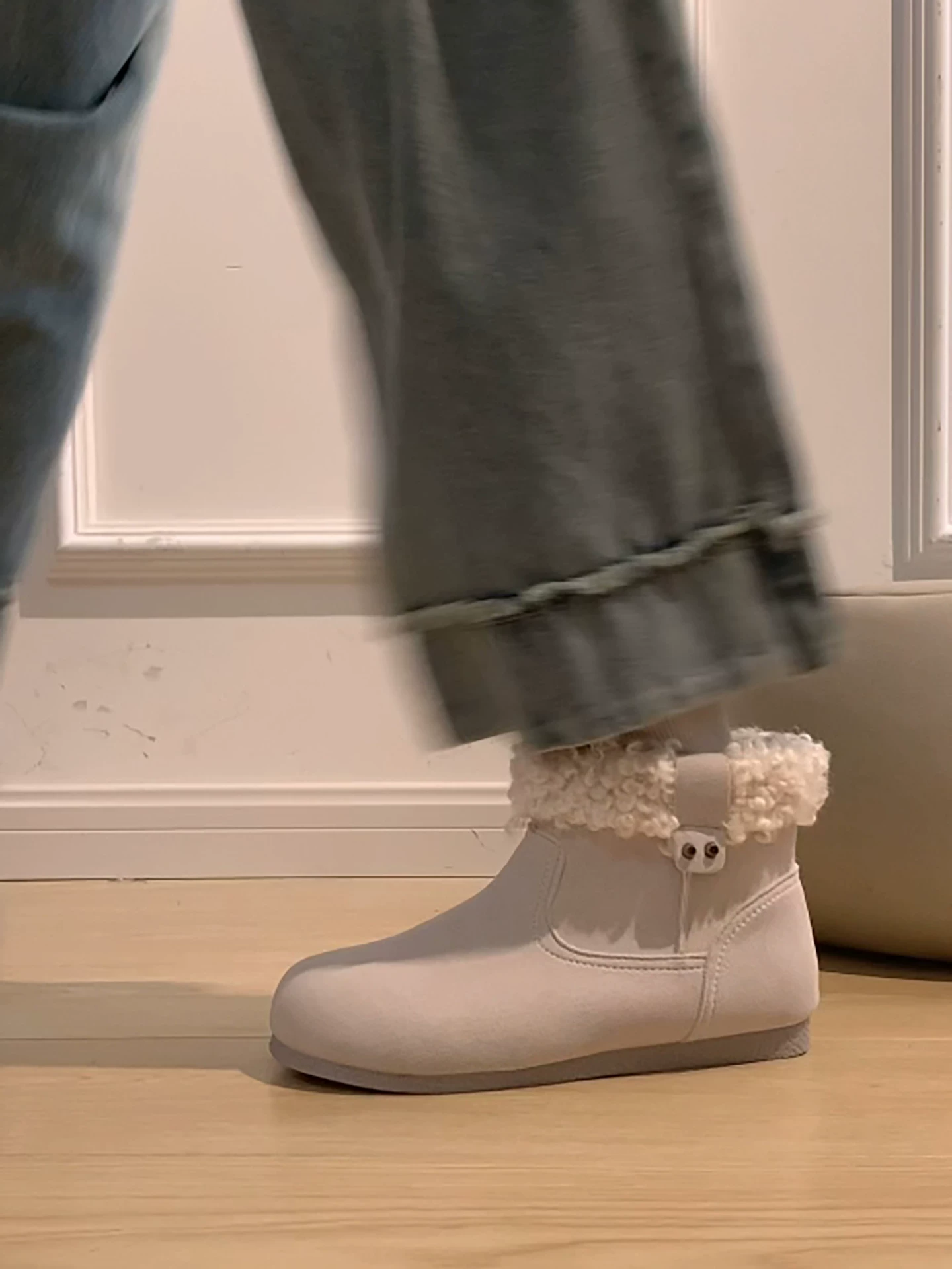 - Giày bốt nữ đế xuồng tăng chiều cao ẩn, bộ sưu tập thu đông 2025 mới, thích hợp phối cùng chân váy, chống trơn trượt, giày cotton đa năng.